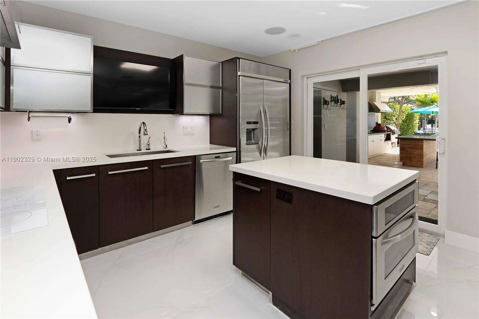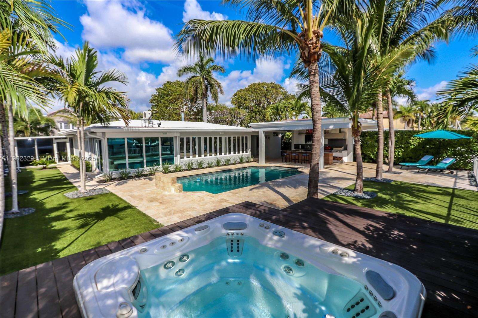 Best priced 75Ft waterfront paradise on Las Olas, in move-in condition! Fully equipped dock w/power station (220V) on 90ft canal width. Fits 65Ft boat. No fixed bridges & just minutes to the Inlet. This 3 bedroom,3 1/2 baths waterfront home is completely remodeled w/open floors, impact windows & doors, a fireplace & equipped w/ smart home system. Large master bedroom w/own seating/office area featuring electric shutters, large closet & built-in cabinetry. Spectacular summer kitchen built in 2014 overlooking the pool & water offers all amenities for outside entertainment w/gas stove, Kamado ceramic grill, infrared grill & more. Pool w/fountain & hot tub and outside cabana bath for guests. Also avail. furnished.