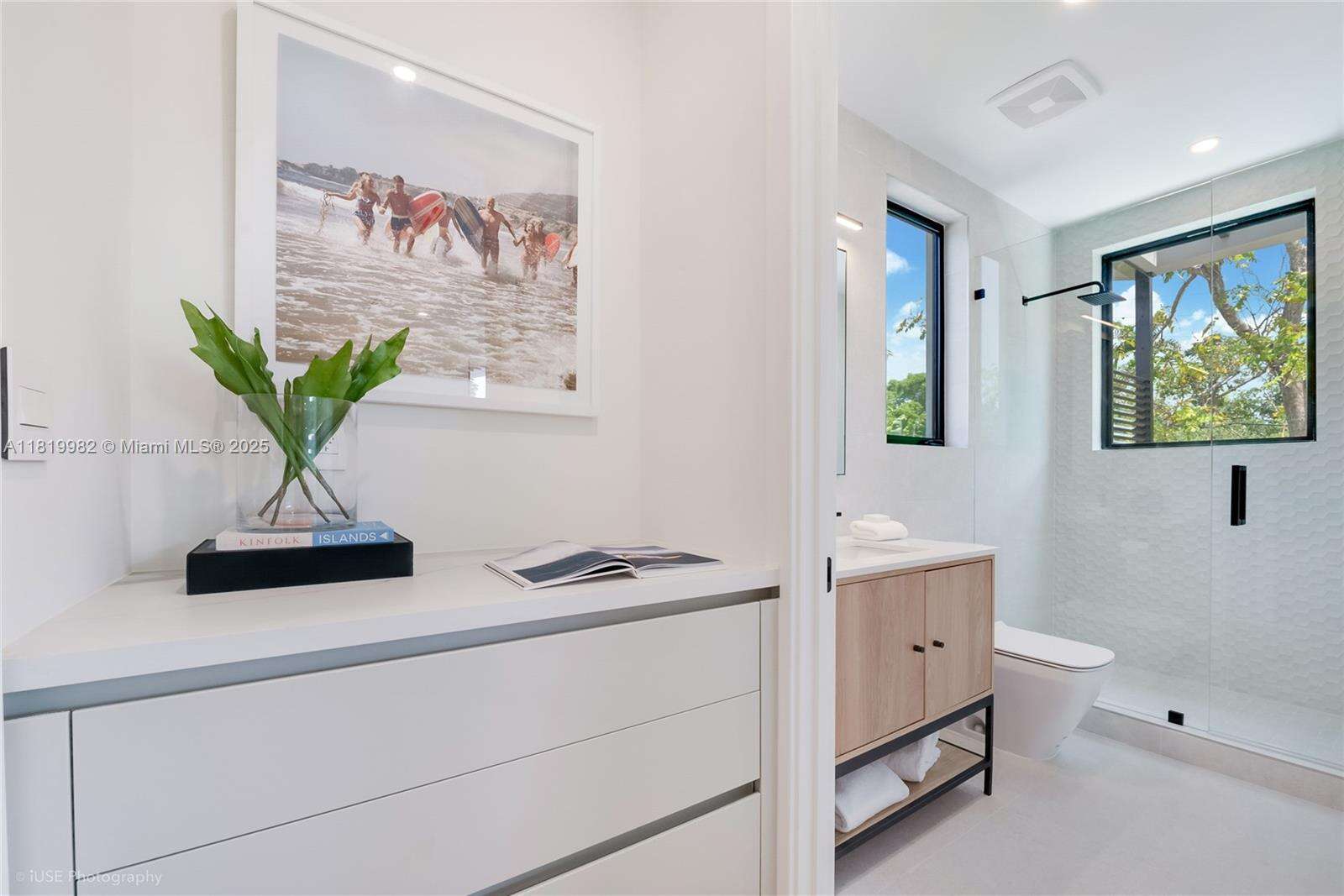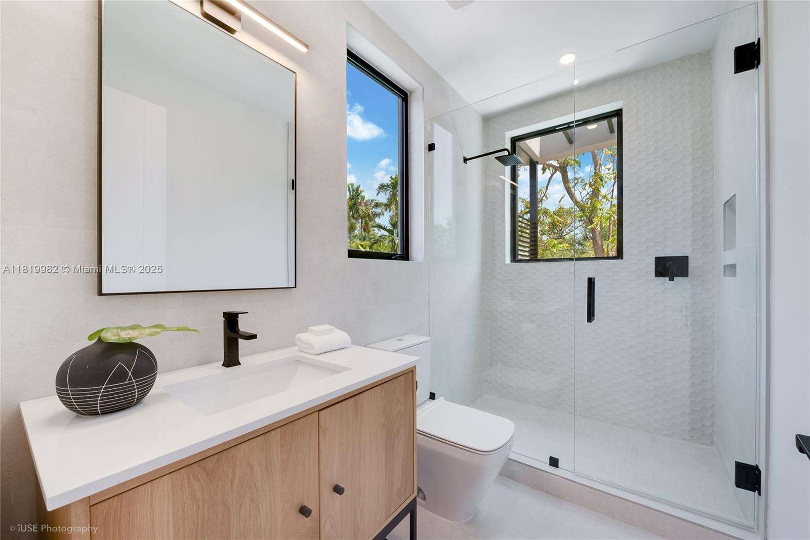 New price! VERY SPACIOUS, high ceilings, open floor plan, Move-In Ready. Brand-new modern construction in the heart of Coconut Grove on a quiet street. Enjoy expansive open spaces, clean lines, luxe textures, and natural light at every turn. Excellent layout with four en suite bedrooms upstairs, including a primary suite, and a 5th bedroom downstairs. The primary suite offers a private terrace and a spa-like bathroom with a massive walk-in closet. Covered terrace with salt pool and integrated summer kitchen elevates the living experience. Available furnished. Just bring your suitcase. Your Coconut Grove, Miami dream home!
