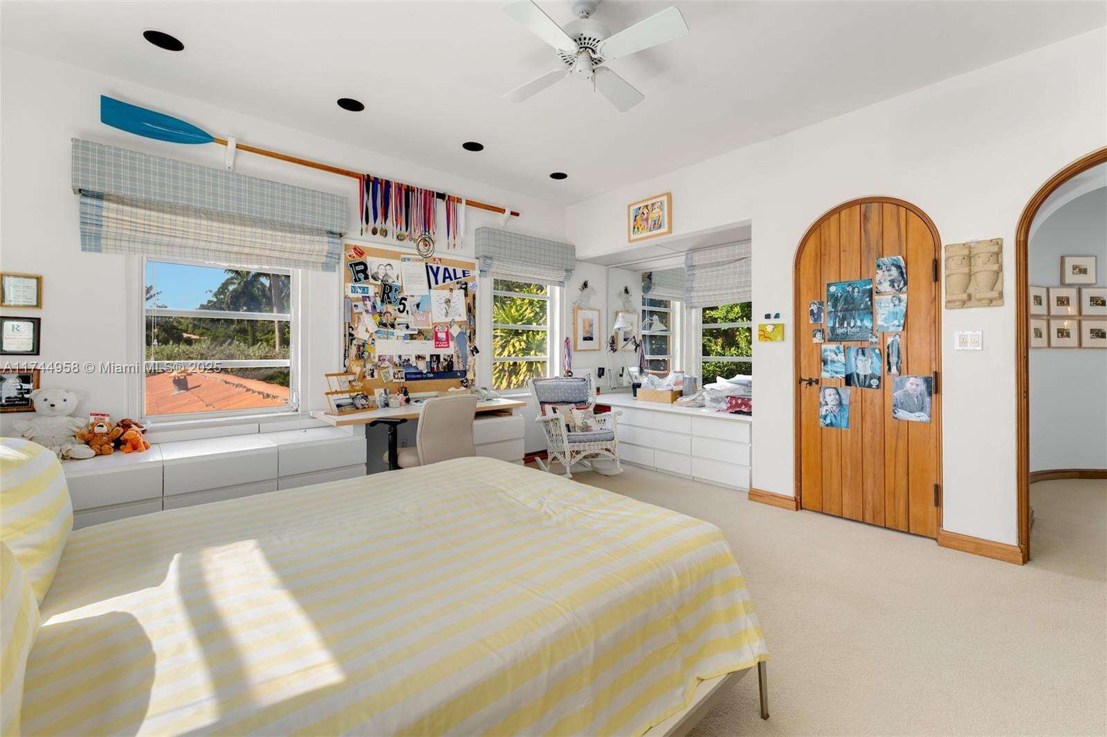 | Window Features Arched Windows Blinds Drapes |