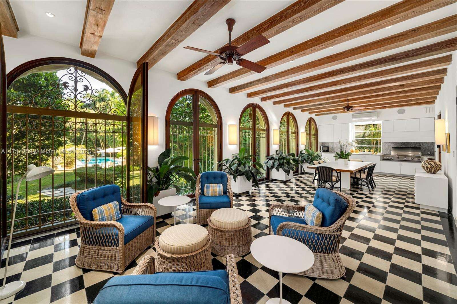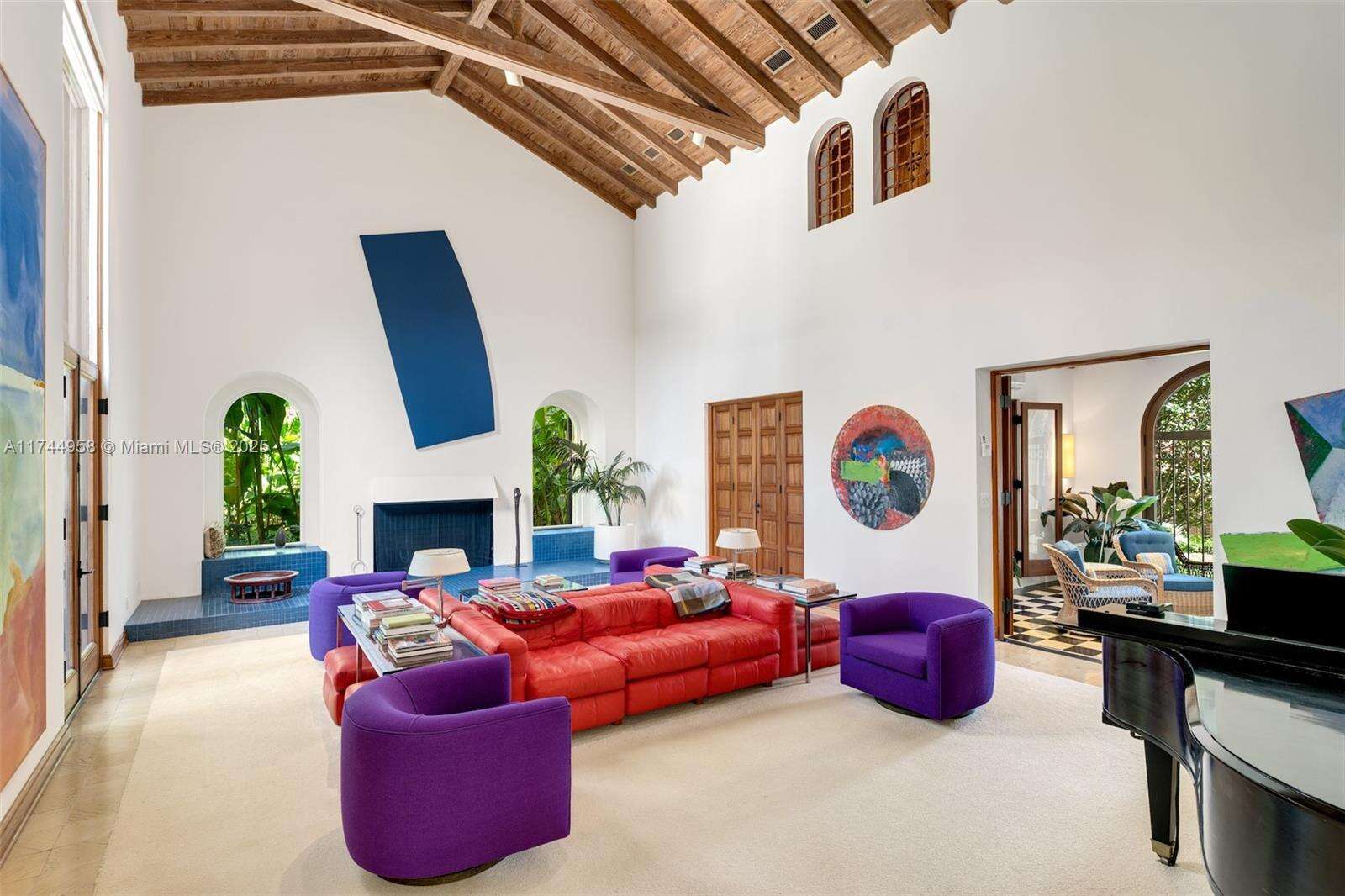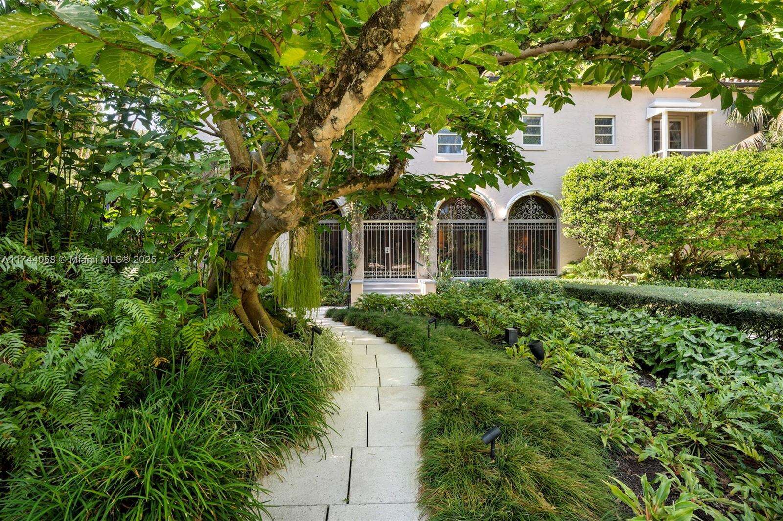 Coconut Grove De Garmo architectural masterpiece on over 2 acres of private dramatically lit botanic gardens has captivated hearts & headlines for nearly a century. Striking Spanish-style estate seamlessly blends old world charm with modern sophistication. Ground level boasts a grand entrance, distinctive indoor/outdoor veranda, stately vaulted living room, library & formal dining room. 2nd floor offers 4 spacious bedrooms each with en-suite baths and balcony overlooking living room. 3rd story includes versatile living space & terrace. Detached from primary residence: 2 large guest apts in the gatehouse, 60ft tiled pool complemented by spacious cabana. This exclusive paradise also features an orchid house, serene waterfall & areas for relaxation. This home is a sanctuary and a work of art.