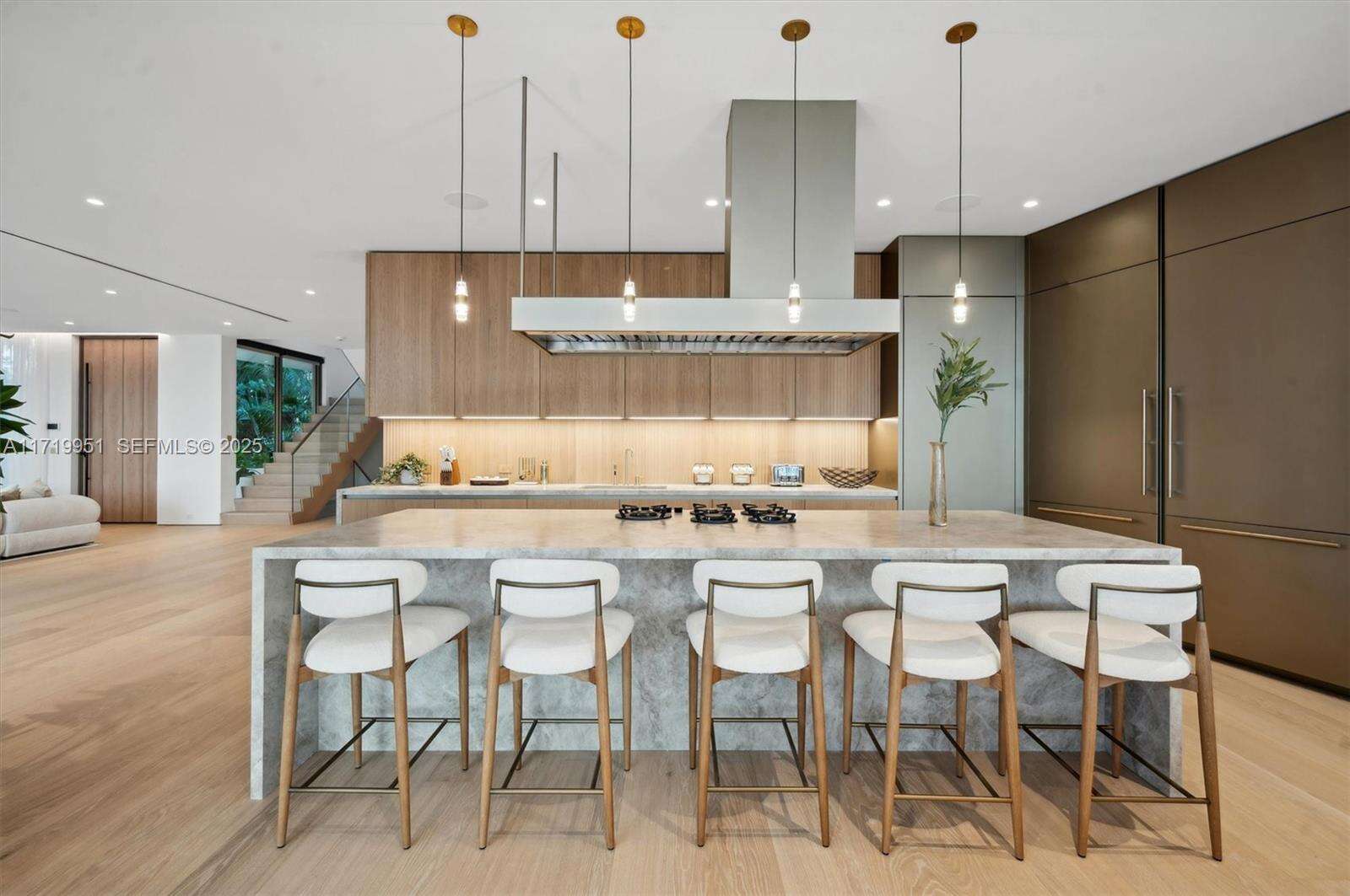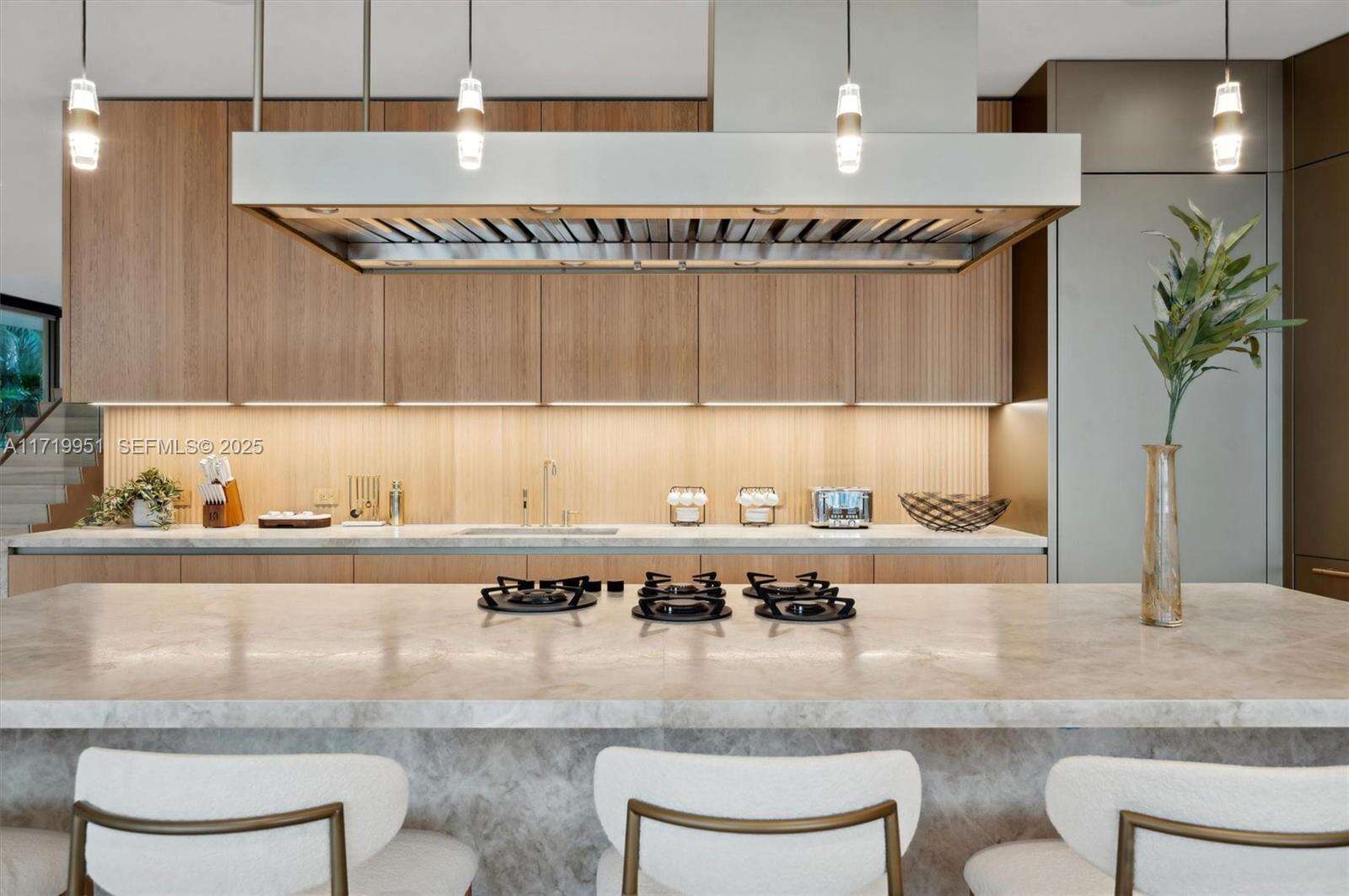 Just completed Nov 2025, this elevated home offers over 9,000 sqft of contemporary living with open water bay views and Miami skyline sunsets. 6 spacious bedrooms, 6 plus 2 half bathrooms, exquisite interior finishes include custom Italian kitchen by Ernestomeda and bathrooms by Casabath. Primary suite offers incredible water views, white oak ceiling, dreamy walk-in closet, bathroom with floor-to-ceiling glass & stone walls. The open floor plan seamlessly transitions to an outdoor oasis, complete with kitchen, dining area, pool & dock on 105 ft of water frontage. The rooftop offers stunning 360 degree views while the understory features a 3-car garage, additional covered parking and elevator access. Located on coveted Rivo Alto Island with walkability to Sunset Harbor.