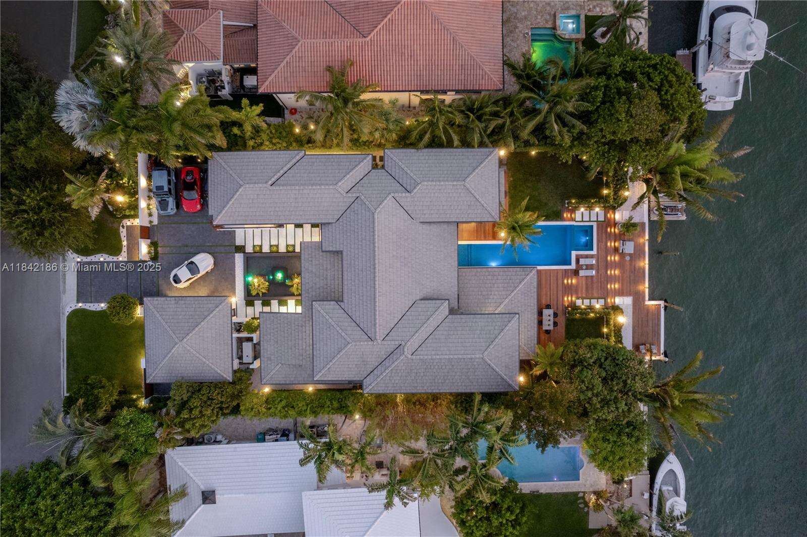 CASA EXUMAS – A Boater's Dream and a true Miami lifestyle experience. Nestled in the exclusive, gated community of Bay Point, this luxurious, modern tropical waterfront residence offers approx. 85 ft of water frontage, a private dock and direct access to Biscayne Bay. Enjoy high-end finishes, including spacious living room with 25-foot ceilings, sleek fireplace, formal dining room with wine cellar, family room, & gourmet kitchen. Six generous bedrooms feature private bathrooms and walk-in closets, including office and maid's quarters. Exteriors include a double-height, air-conditioned 3-car garage with car lift, 5-car motor court, infinity-edge pool, jacuzzi, summer kitchen, Ipe wood deck surrounded by tropical landscaping. Smart home system & generator. Private financing available.