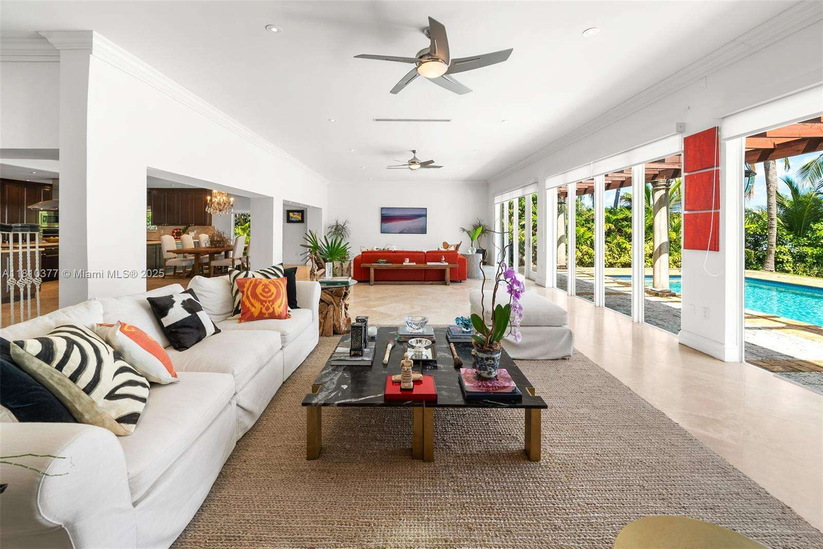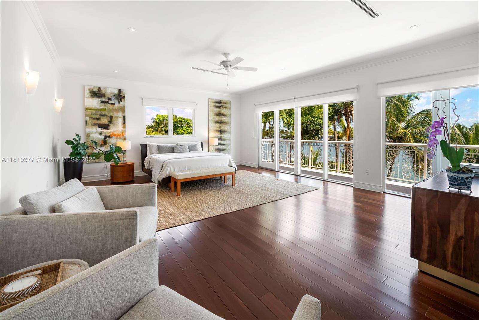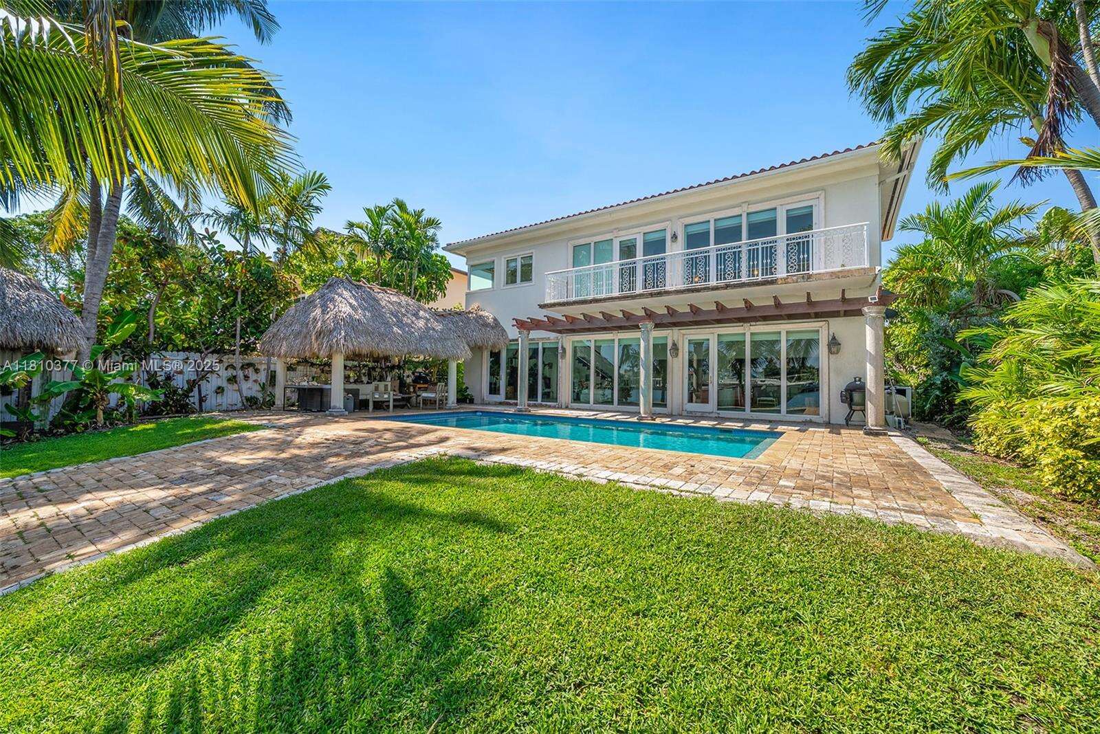 Mediterranean charm meets modern bay front living. Stunning 2-story waterfront home, rebuilt in 2010 and nestled in the exclusive, guard-gated island of Normandy Shores in Miami Beach. The grand entry foyer opens to 4,500 SF of refined living space, on a 11,000 SF lot with 65 FT of serene water frontage & unobstructed views of Biscayne Bay. The home features soaring ceilings, state-of-the-art chef kitchen, marble & Brazilian wood floors, and onyx bathrooms. The spacious, sun-filled primary suite, on the second floor, offers a private veranda and panoramic views. Step outside to your tropical resort-style pool, large dock w/ boat lift, and two tiki huts for extra island vibes. Enjoy community’s amenities: 18-hole golf, driving range, clubhouse, tennis, basketball, and children’s playground.