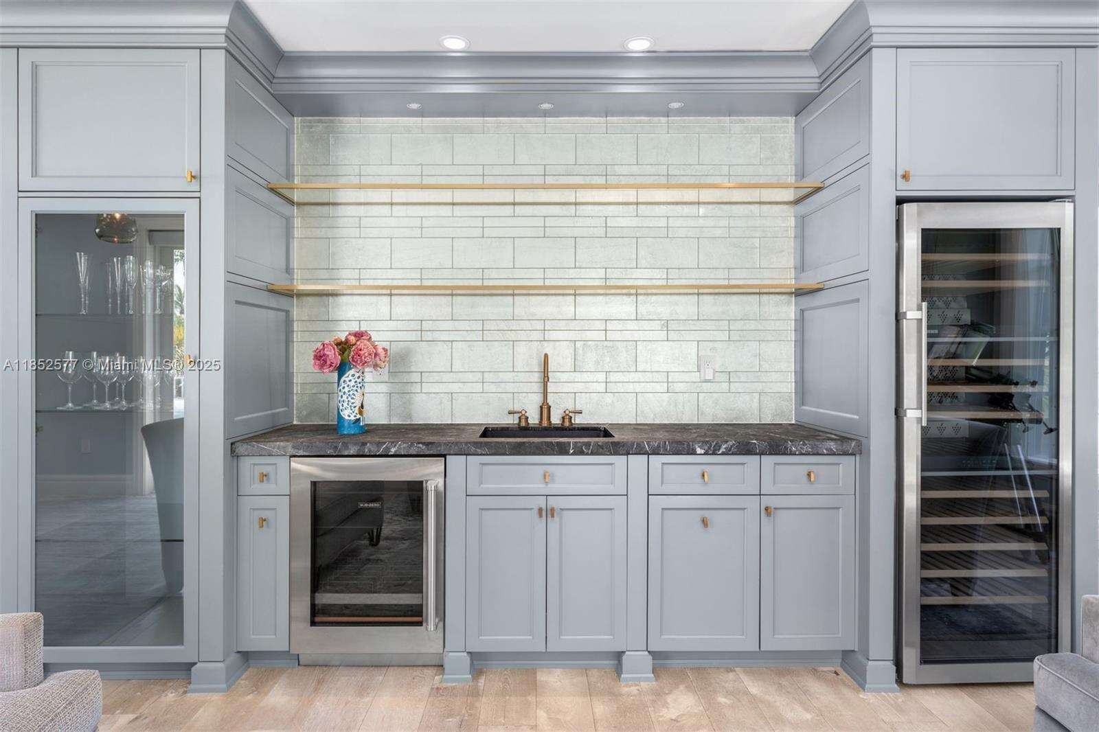 A fresh take on modern island living, this fully renovated home on coveted Rivo Alto offers turnkey luxury on the Venetian Islands. Clean lines, soaring ceilings, and expansive windows fill the space with natural light—from the grand living room to the sun-filled dining and lounge areas. The Italian kitchen features Subzero/Wolf/Cove appliances with a sleek gas range. Generously sized bedrooms, spa-like baths, and a serene primary suite with walk-in closet and dual shower-tub retreat offer total comfort. Set on a prime corner lot, the private backyard boasts a sparkling pool and lush landscaping ideal for indoor-outdoor entertaining—just minutes from Sunset Harbour and Downtown Miami.