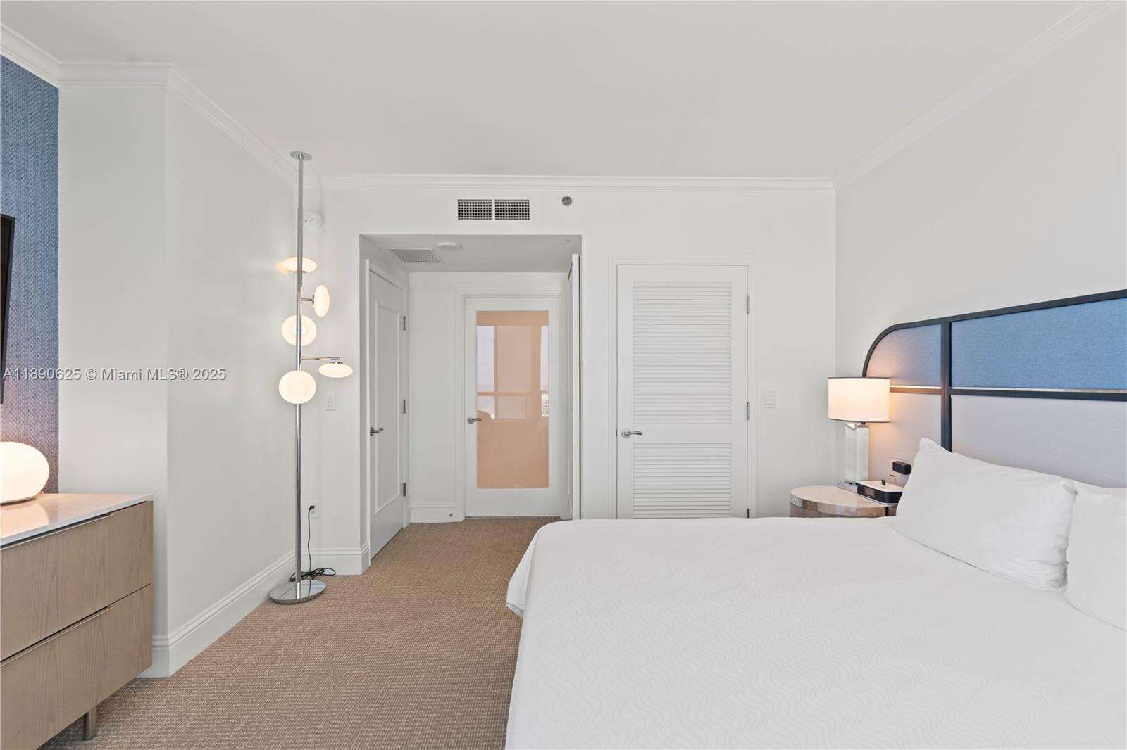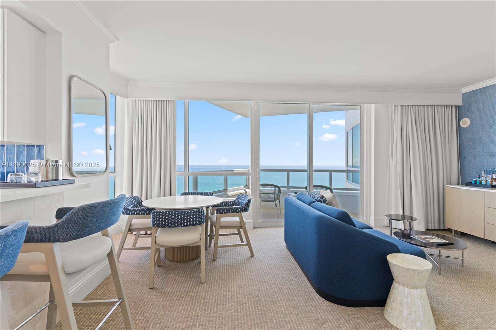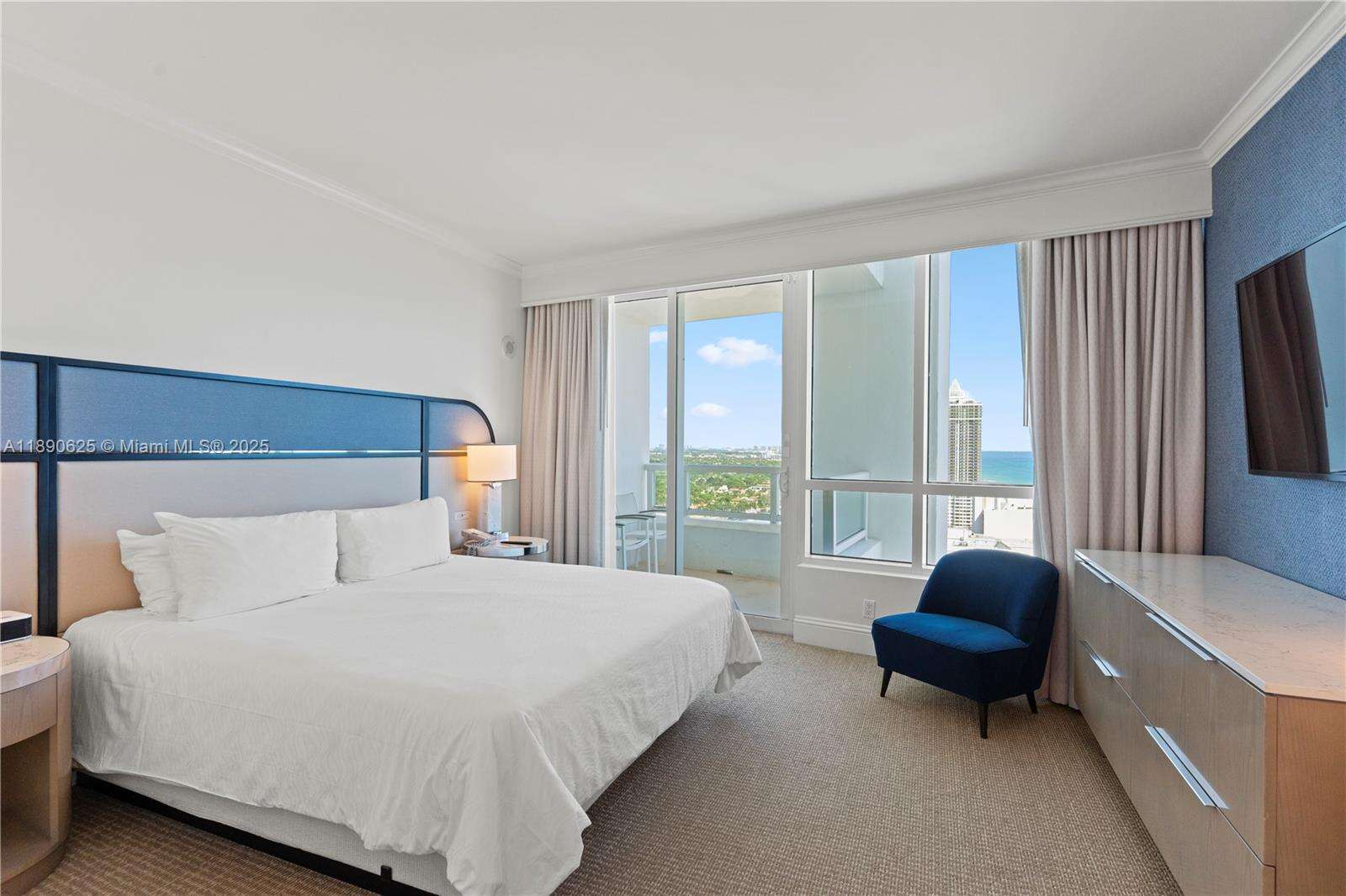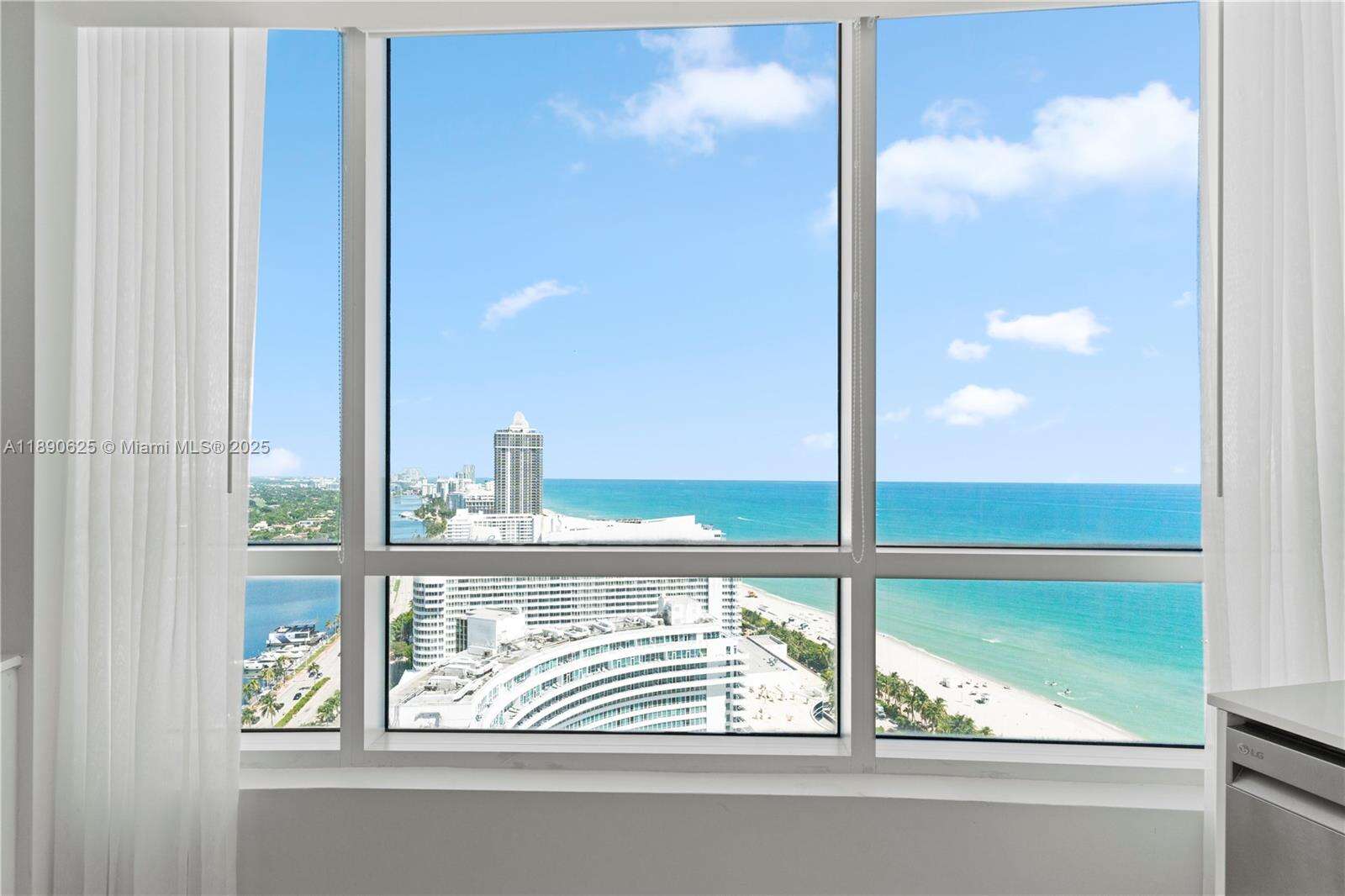 Live the resort lifestyle at the iconic Fontainebleau II (Tresor). This high-floor 1BD/2BA turnkey residence frames direct views of the turquoise ocean, intracoastal, & hotel pool grounds from every room & 2 private balconies. Coastal design features an open living area, full kitchen, king bedroom, sleeper sofa, & 2 private owners closets to secure your belongings if you choose to use the hotel rental program while away. Enjoy world-class amenities—pools, cabanas, beach service, Lapis Spa, fitness center, LIV nightclub, award-winning dining, shops, concierge. Maintenance includes everything: AC, electricity, cable/internet, valet & free daily owner-lounge breakfast. Place in hotel rental program for effortless income. Why pay to stay at Fontainebleau when you can get paid to own there!?
