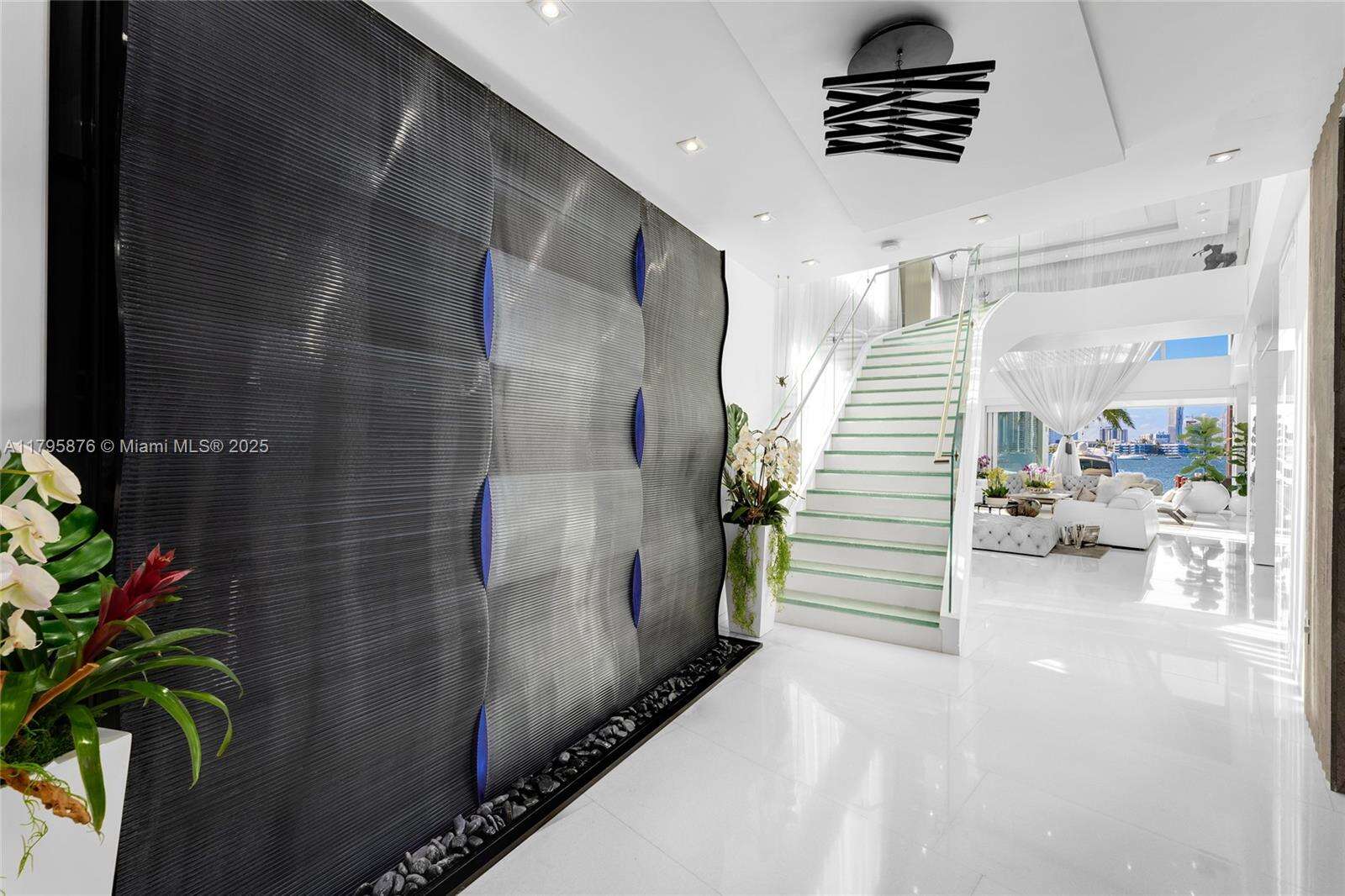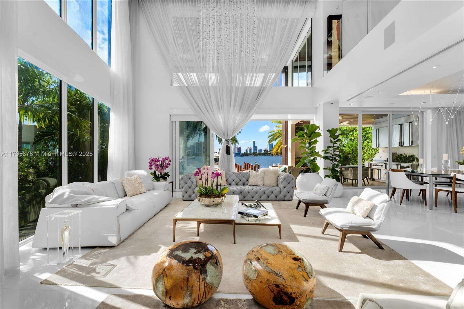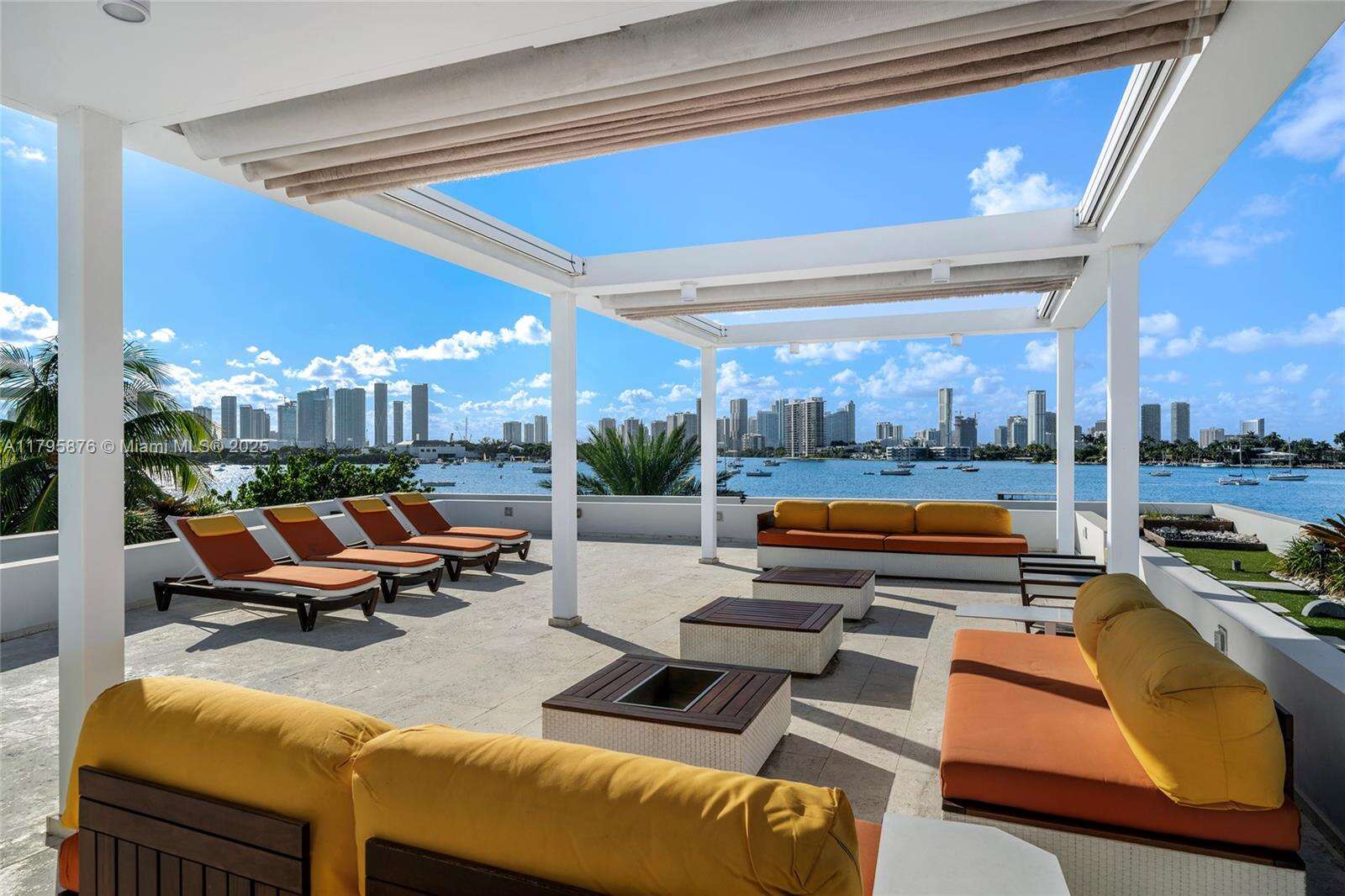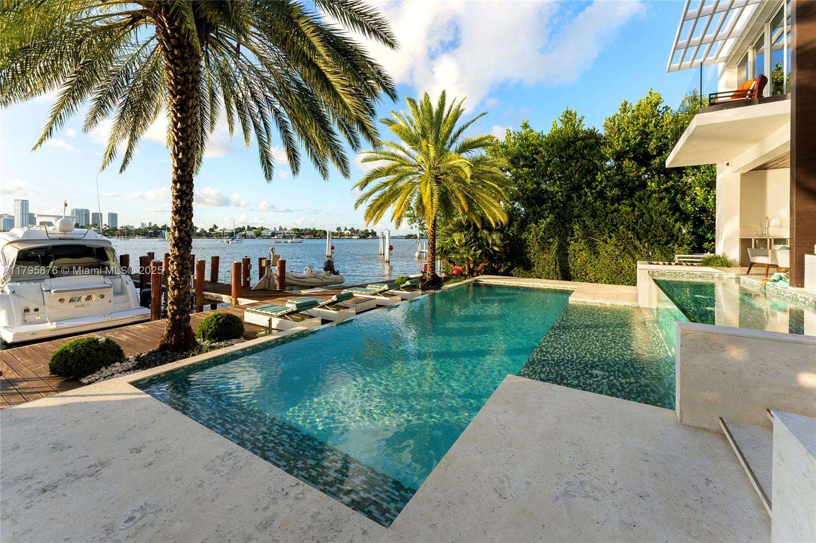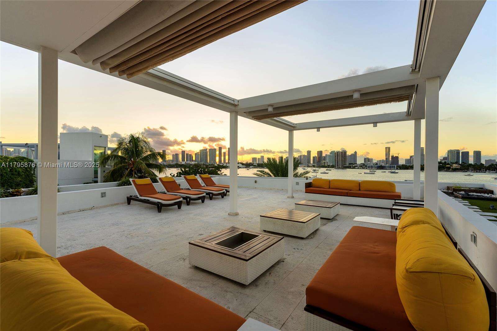 This spectacular contemporary tri-level waterfront home is located on the tip of guard-gated Hibiscus Island featuring a rooftop entertainment lounge & the best open bay & Miami skyline views on Miami Beach. The 5BR/6+1BA home boasts marble & hardwood floors, soaring ceilings, fine designer finishes, floor to-ceiling windows, sleek chef’s kitchen w/top-of-the line appliances, & expansive living/entertainment areas w/amazing water views. 2nd level principal suite w/private terrace facing the bay, & spa-inspired marble bathroom & large walk-in closet. 3rd level rooftop lounge made to relax & enjoy sunsets over the bay & Miami skyline. The outdoor spaces offer covered seating areas, summer kitchen, pool w/waterfall, cabana bath, large dock & Ocean access.