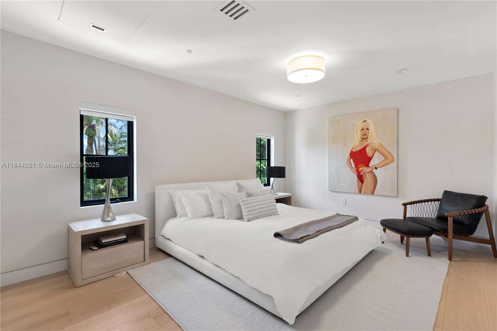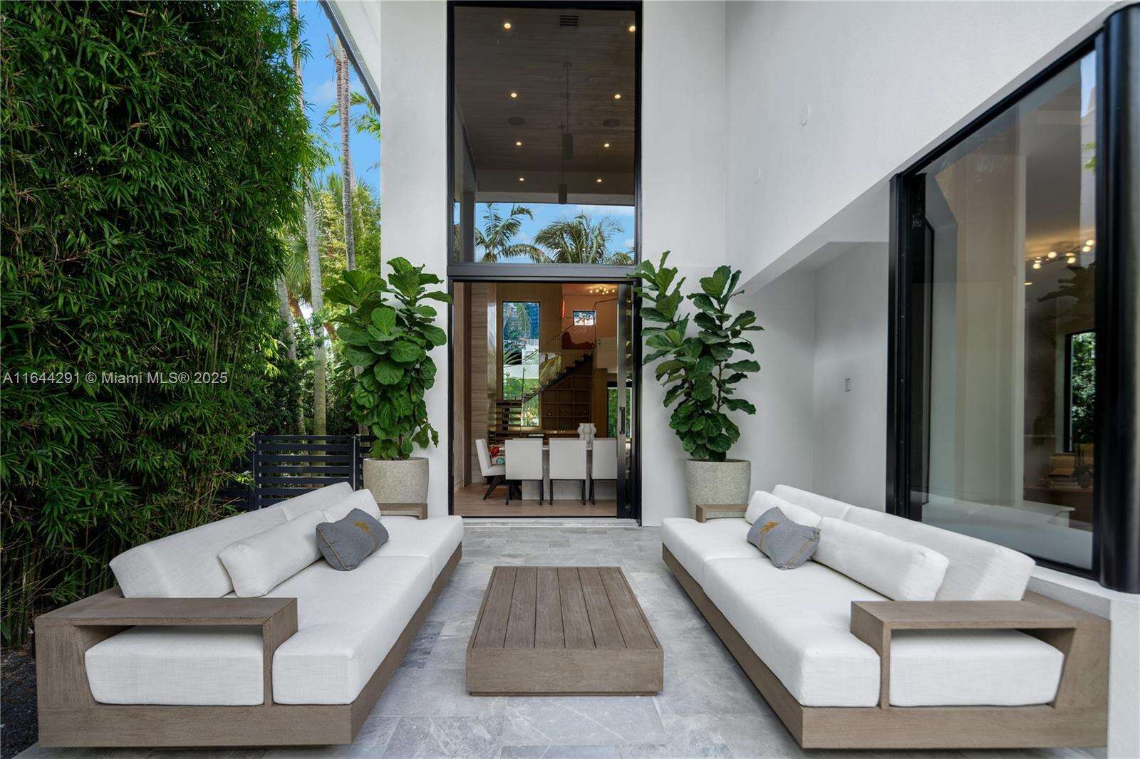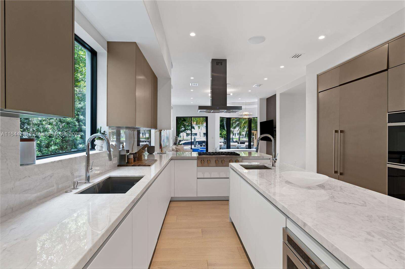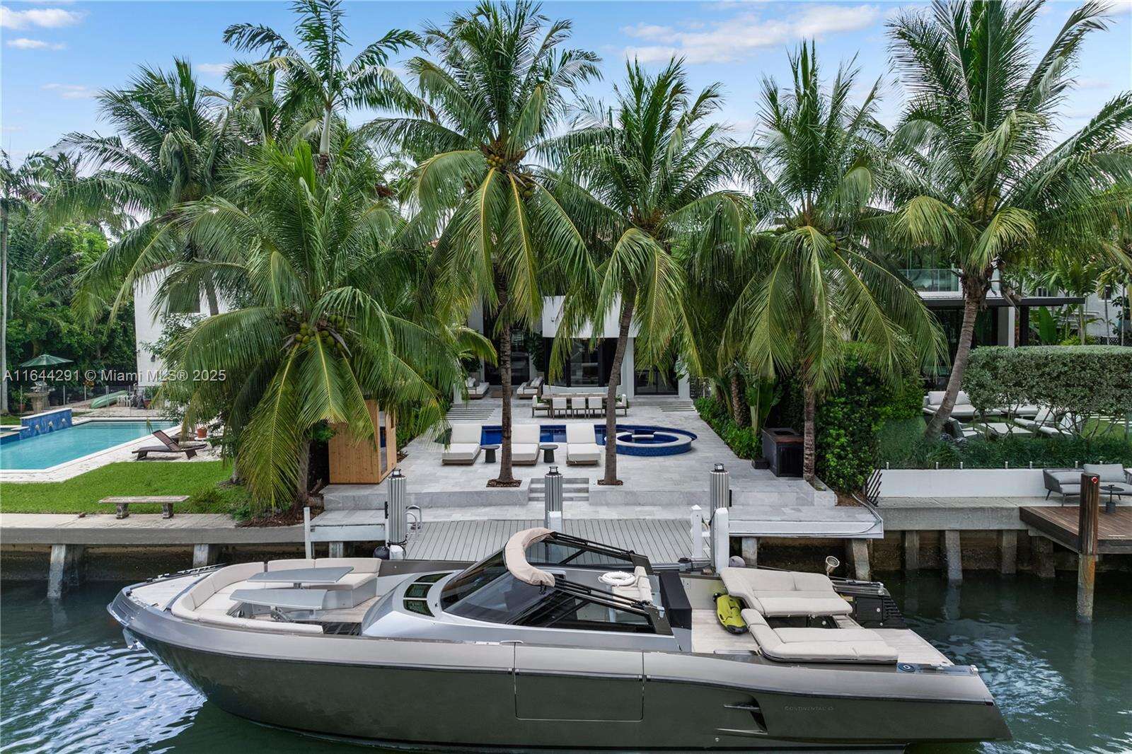 Dive into the tropical fully-renovated turnkey waterfront Modern Mediterranean villa boasts 6 beds/7 baths w/ white oak wood floors, arched doorways, floor to ceiling glass windows unveil natural light & water views. Gather by the fireplace & entertain in the living room w/ 20 ft high ceilings, a built-in bar and a kitchen with high end appliances, fridge & sink with marble countertops. Primary suite brand new custom master closets, outdoor balcony, views of the water, dual vanities & oversized soaking tub. Brand new floor to ceiling new glass doors blur the lines between interior & exterior spaces. 2 car garage. Auto-blinds offer privacy & light control as well. In the backyard there is an outdoor BBQ, pizza oven, pool & spa, sauna & cold plunge, covered terrace, new dock w/ shore power.