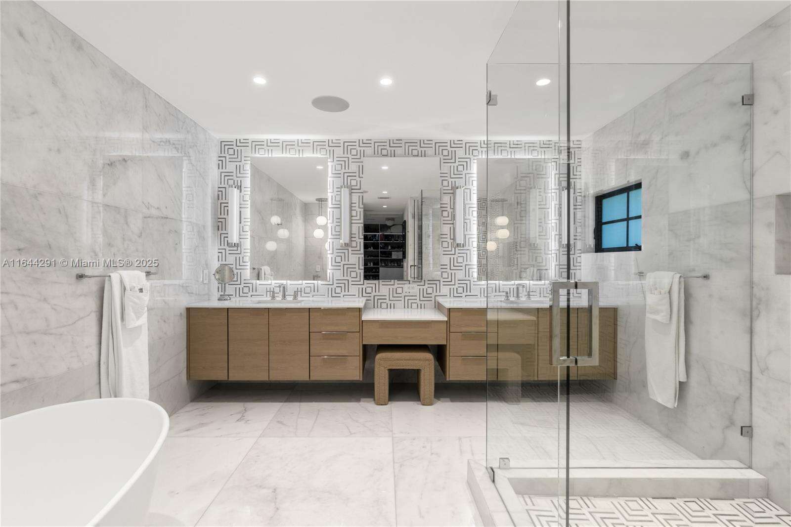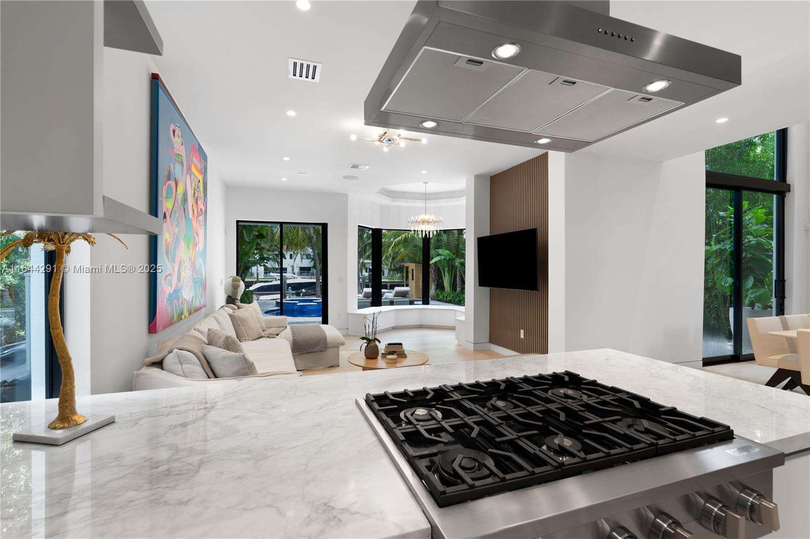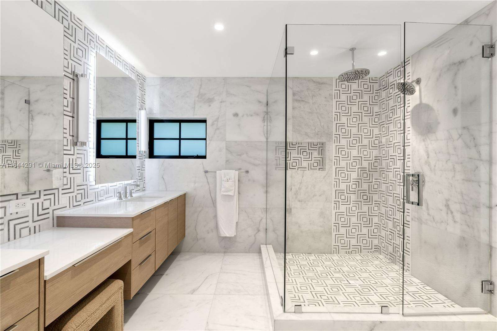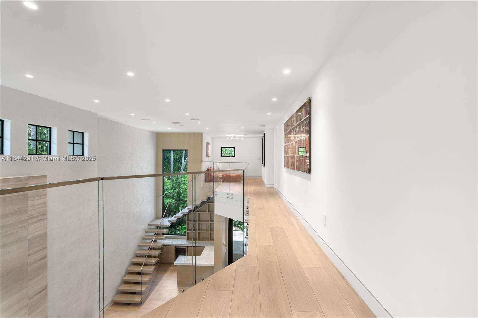 Dive into the tropical fully-renovated turnkey waterfront Modern Mediterranean villa boasts 6 beds/7 baths w/ white oak wood floors, arched doorways, floor to ceiling glass windows unveil natural light & water views. Gather by the fireplace & entertain in the living room w/ 20 ft high ceilings, a built-in bar and a kitchen with high end appliances, fridge & sink with marble countertops. Primary suite brand new custom master closets, outdoor balcony, views of the water, dual vanities & oversized soaking tub. Brand new floor to ceiling new glass doors blur the lines between interior & exterior spaces. 2 car garage. Auto-blinds offer privacy & light control as well. In the backyard there is an outdoor BBQ, pizza oven, pool & spa, sauna & cold plunge, covered terrace, new dock w/ shore power.