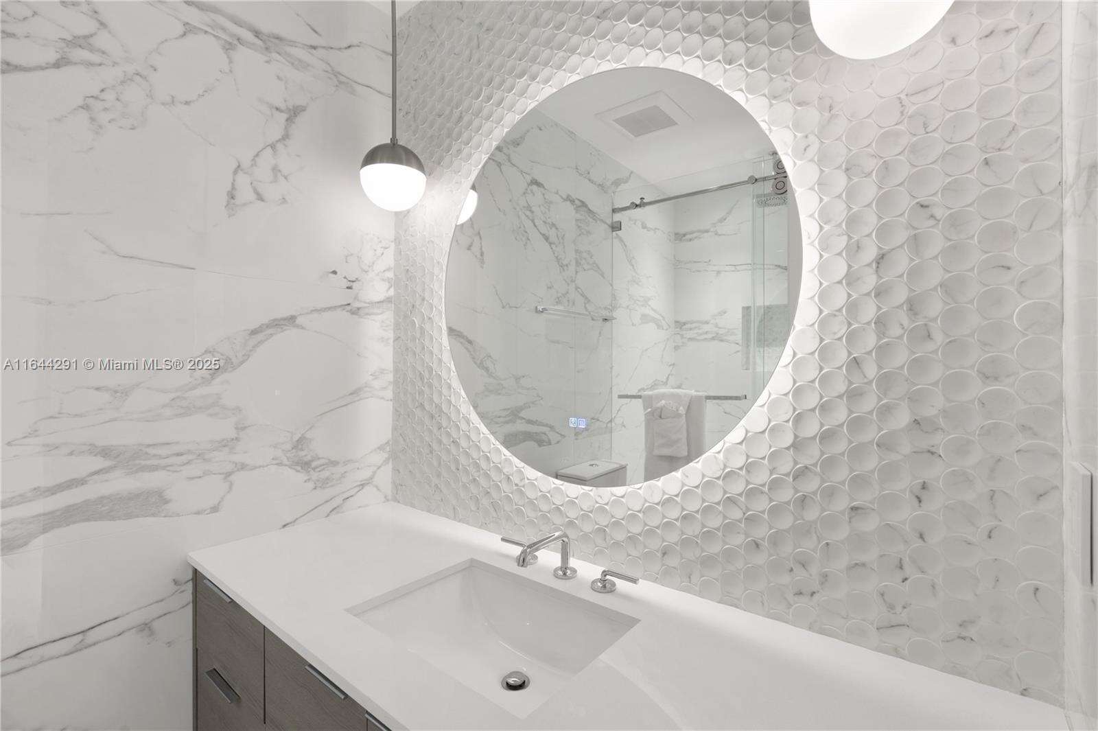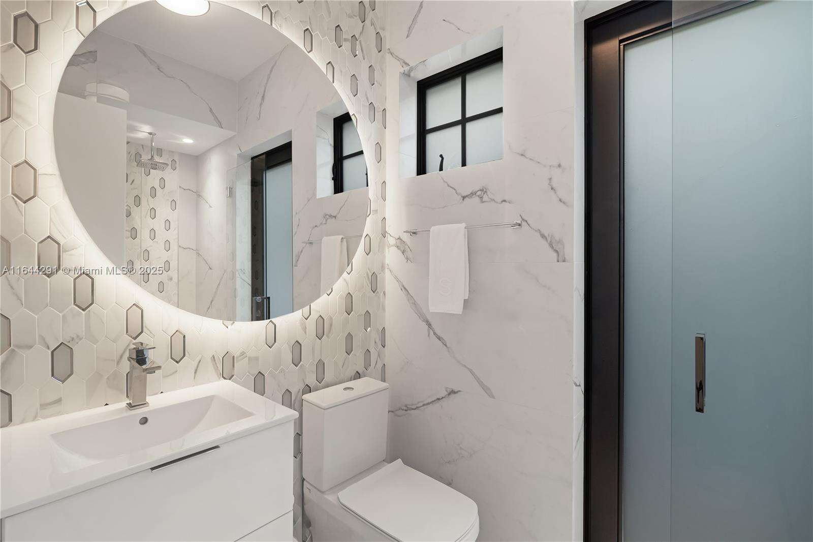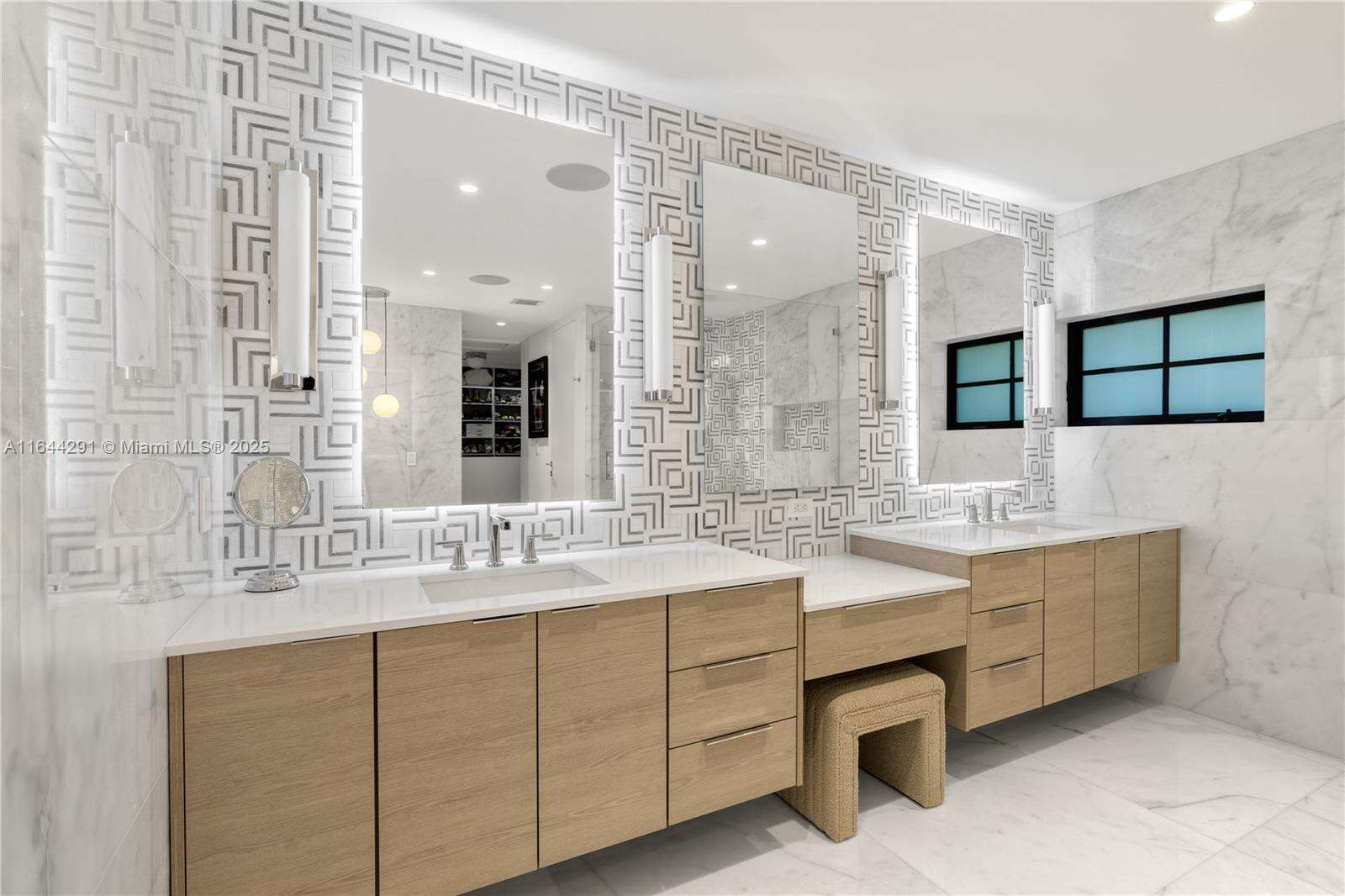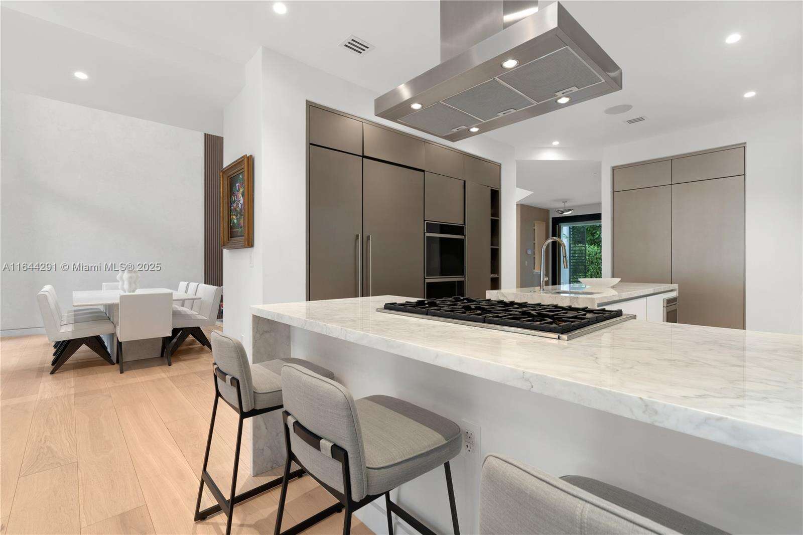 Dive into the tropical fully-renovated turnkey waterfront Modern Mediterranean villa boasts 6 beds/7 baths w/ white oak wood floors, arched doorways, floor to ceiling glass windows unveil natural light & water views. Gather by the fireplace & entertain in the living room w/ 20 ft high ceilings, a built-in bar and a kitchen with high end appliances, fridge & sink with marble countertops. Primary suite brand new custom master closets, outdoor balcony, views of the water, dual vanities & oversized soaking tub. Brand new floor to ceiling new glass doors blur the lines between interior & exterior spaces. 2 car garage. Auto-blinds offer privacy & light control as well. In the backyard there is an outdoor BBQ, pizza oven, pool & spa, sauna & cold plunge, covered terrace, new dock w/ shore power.
