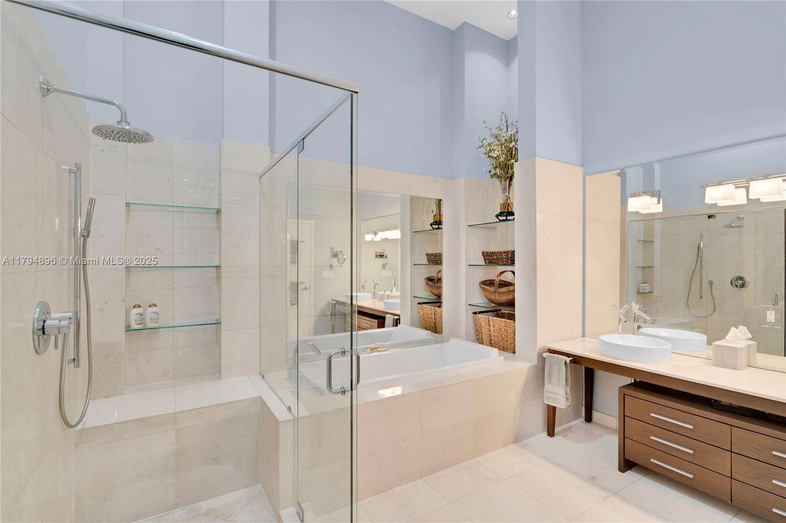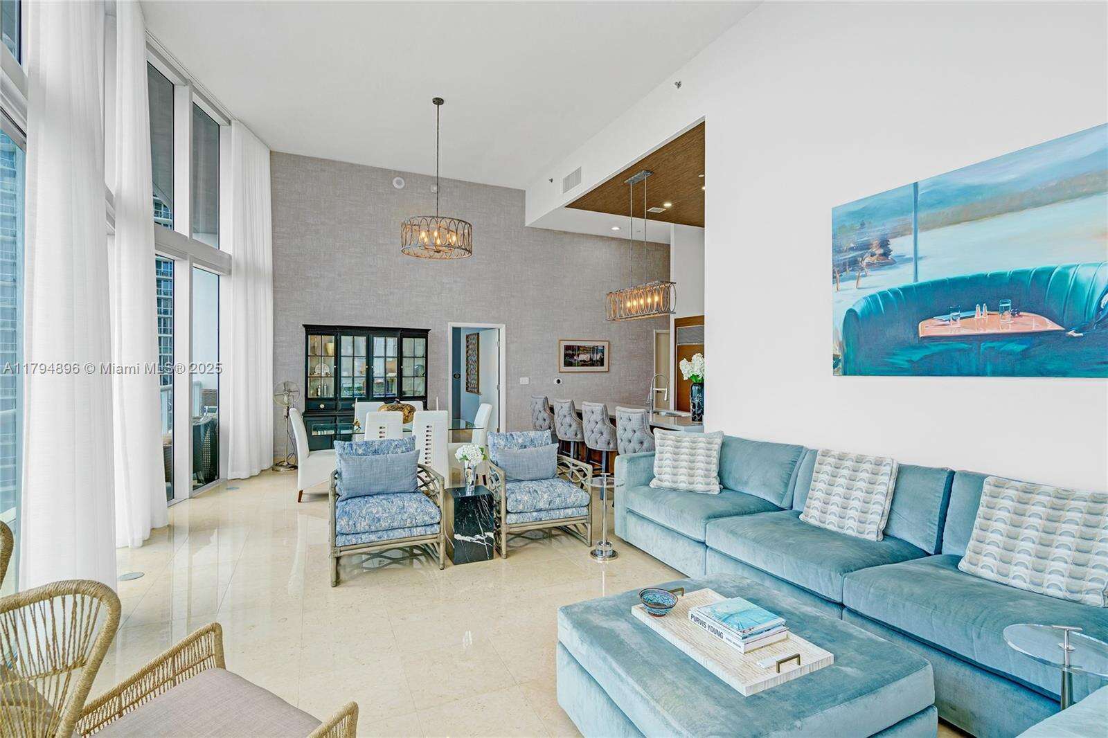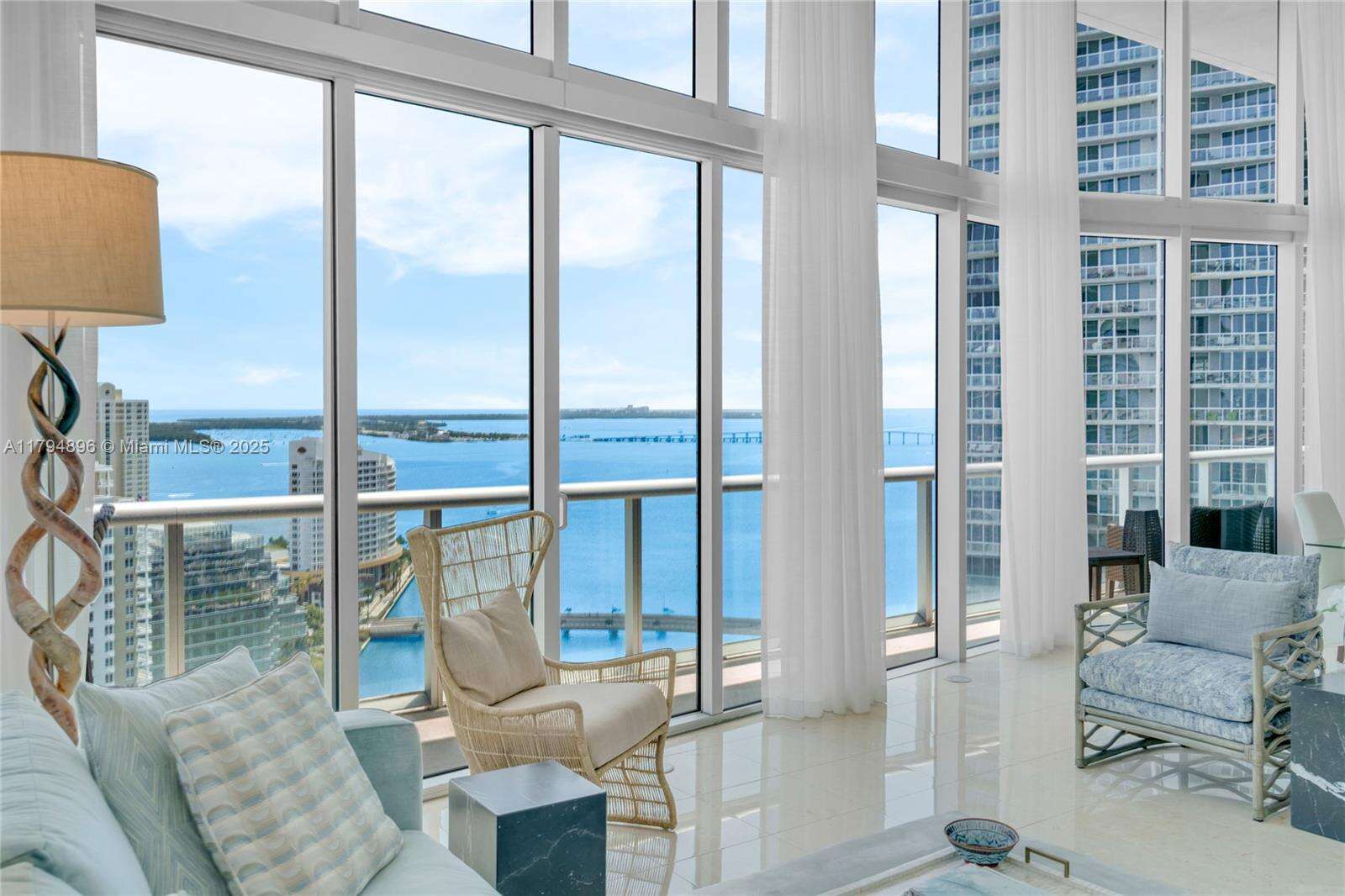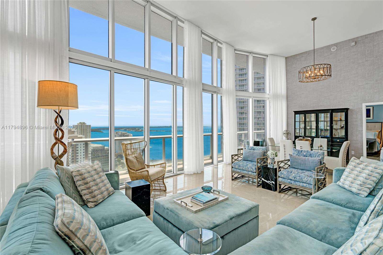 Experience breathtaking panoramic views of the ocean and Biscayne Bay from almost every room in this sophisticated '01 line residence at Icon Brickell, Tower I. This elegant 3-bed, 2.5-bath home offers 2,044 sq ft of refined living space, complemented by a spacious 250 sq ft balcony ideal for outdoor enjoyment. Total stylish interior area measures 2,294 sq ft, featuring a double-height ceiling that enhances a sense of openness and luxury. Custom dual air conditioning ensures maximum comfort, while two adjacent parking spaces provide convenience. Furnished w/ modern designer pieces and bespoke decor, this upscale urban residence offers sophisticated living— artwork and personal belongings excluded.