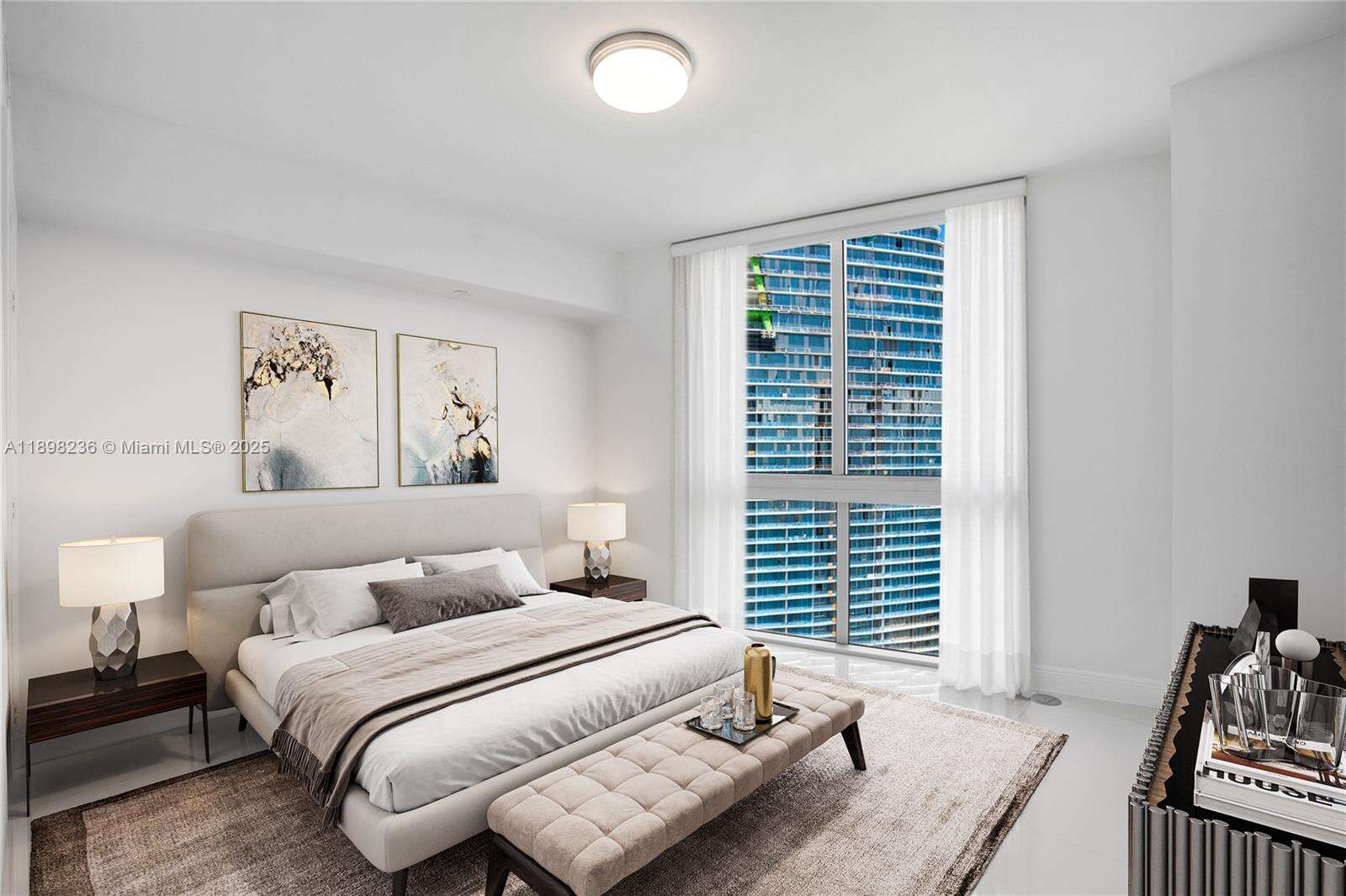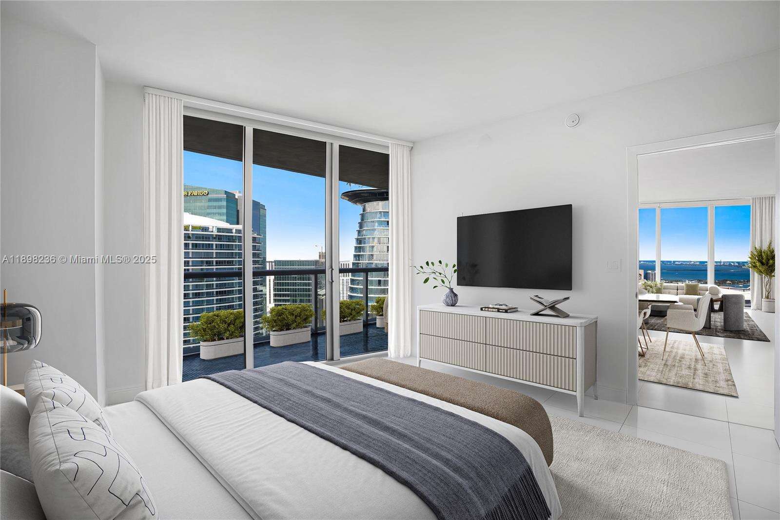 Stunning high-floor 2-bed / 2-bath corner unit in Icon Tower 1 with sweeping, unobstructed views of Biscayne Bay and the Miami skyline. This beautifully finished residence features Italian white porcelain tile, an open kitchen with stainless steel appliances, built-in closets, electric shades, and floor-to-ceiling impact windows. The spacious master suite includes two walk-in closets and a spa-like bath. Enjoy world-class amenities including two 5-star restaurants (Cipriani), a full-service spa, infinity pool, fitness center, theater, valet, and 24/7 security—all in the heart of Brickell.