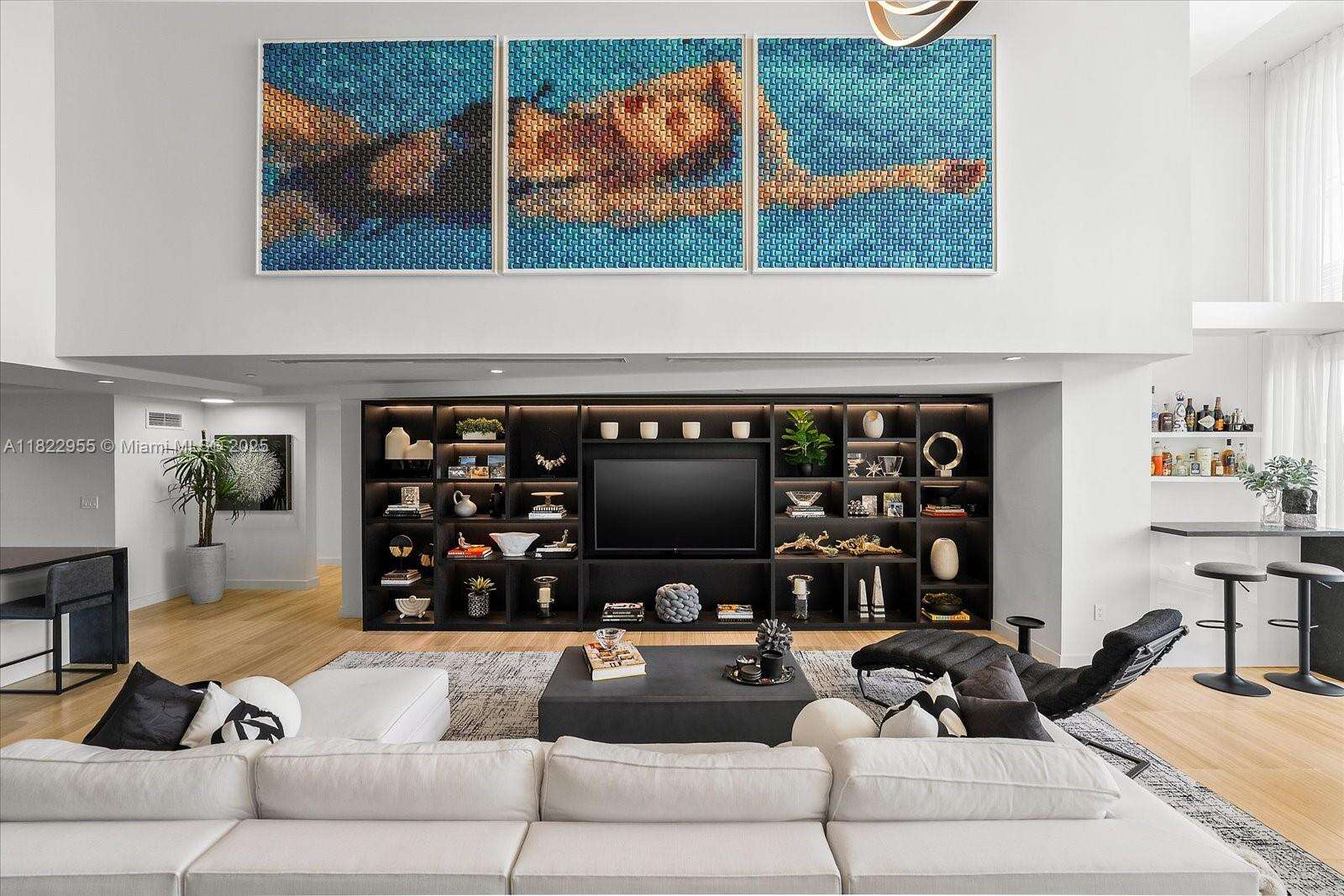 Residence 217 at The Ritz-Carlton Residences, Miami Beach offers the space of a private home with the convenience of condo living—a rare two-story masterpiece of dramatic scale and refined design. Spanning over 4,000 sq ft, the light-filled layout is anchored by 16-ft ceilings in the great room & features a sculptural glass-railed staircase & a minimalist bar. The European kitchen boasts Gaggenau appliances & seamless cabinetry, opening to a shaded wrap-around terrace for indoor-outdoor living. Upstairs, two primary suites each offer spa-inspired baths with marble walls, dual vanities, soaking tubs, oversized showers & private balconies, complemented by a lofted office overlooking the main living space. Enjoy elevated privacy & legendary Ritz-Carlton services in an architectural residence