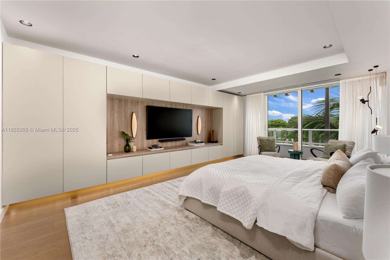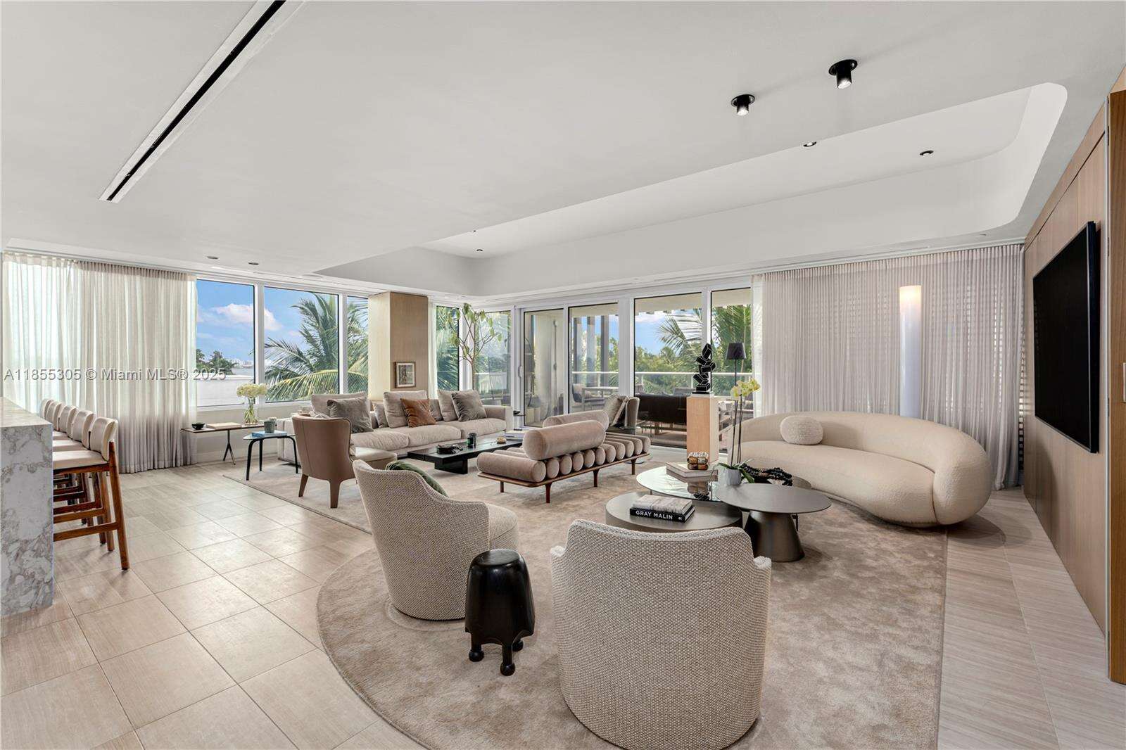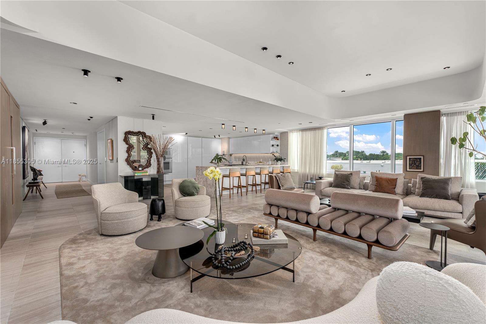 Discover refined waterfront living at The Ritz Carlton Residences Miami Beach, designed by acclaimed Italian architect Piero Lissoni. This 3-bedroom, 3.5-bath, 2,896 SF corner residence captures sweeping views from Surprise Lake to Biscayne Bay, enjoyed best from the private jacuzzi on its expansive terrace. The home features automated shades, a custom-built bar with wine storage, & interiors by Decor Adore Design. The open Boffi kitchen with Gaggenau appliances flows seamlessly into spacious living areas, while the primary suite offers a spa-like bath with a rain shower & jetted soaking tub. Exclusive Ritz Carlton amenities include a half-acre rooftop pool, private art studio, theater, children’s playroom, and full-service waterfront restaurant, complemented by Ritz Carlton service.