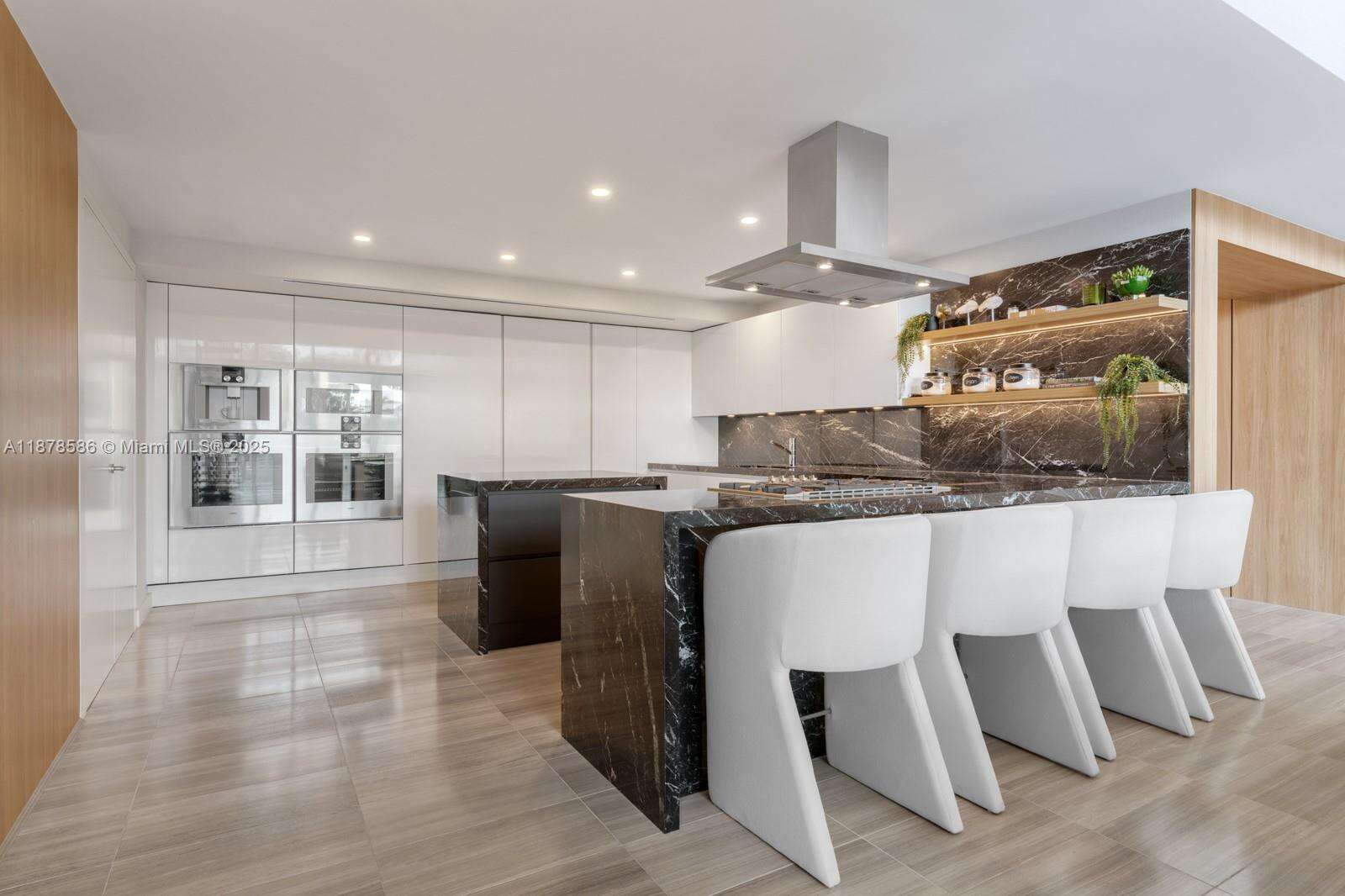 Bring your boat & live in luxury at The Ritz-Carlton Miami Beach with your own private 40’ boat slip just outside your residence. This 2BD/2.5BA waterfront home features soaring 16’ ceilings & walls of glass that flood the open floor plan. A sleek black marble kitchen & wine cellar makes entertaining seamless. Over 1,400 SF of outdoor living includes a balcony, terrace, summer kitchen, jetted jacuzzi, & spacious lounge/dining areas—perfect after a day on the water. The entry-level primary suite offers a spa-like retreat, while the upstairs guest suite includes a workspace. Elegant finishes include emerald herringbone tile, custom millwork, & designer lighting. Residents enjoy world-class Ritz-Carlton amenities: resort-style pools, fitness center, entertainment lounges & concierge service.