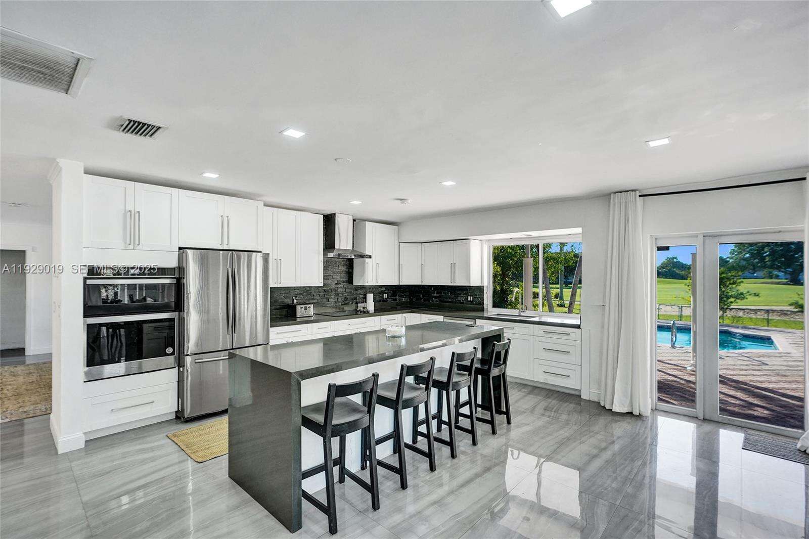 Over $120,000 in recent upgrades elevate this exceptional turnkey residence in Grandview at Emerald Hills, offering direct panoramic views of The Club at Emerald Hills golf course. Situated on an oversized lot in one of Emerald Hills’ most exclusive enclaves, this fully renovated 6 bedroom, 3 bathroom home blends space, style, and privacy. Improvements include large format tile throughout with wood look tile in the bedrooms, a beautifully updated kitchen with thick quartz countertops, and fresh interior paint. The roof and electrical panel are approximately 10 months old with architectural shingles and permitted upgrades. AC is approximately 3 to 4 years old. The serene backyard showcases stunning golf course views framed by a beautifully designed golf course wall, along with a heated chlorine pool, creating an ideal setting for entertaining guests and hosting social events. Full renovation permits across all trades have been completed and passed, including rear structural improvements with new beams and wood. Ideally located minutes from the beach, houses of worship, shopping, dining, top schools, and the Hard Rock Casino
