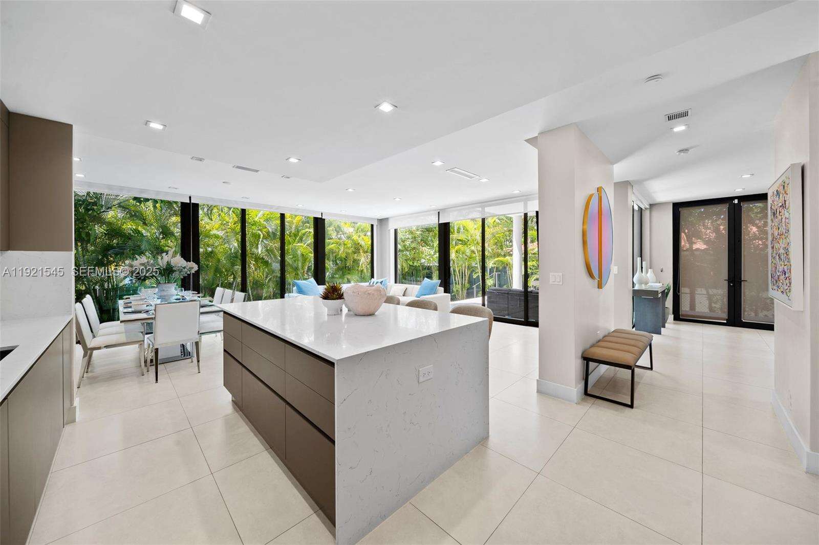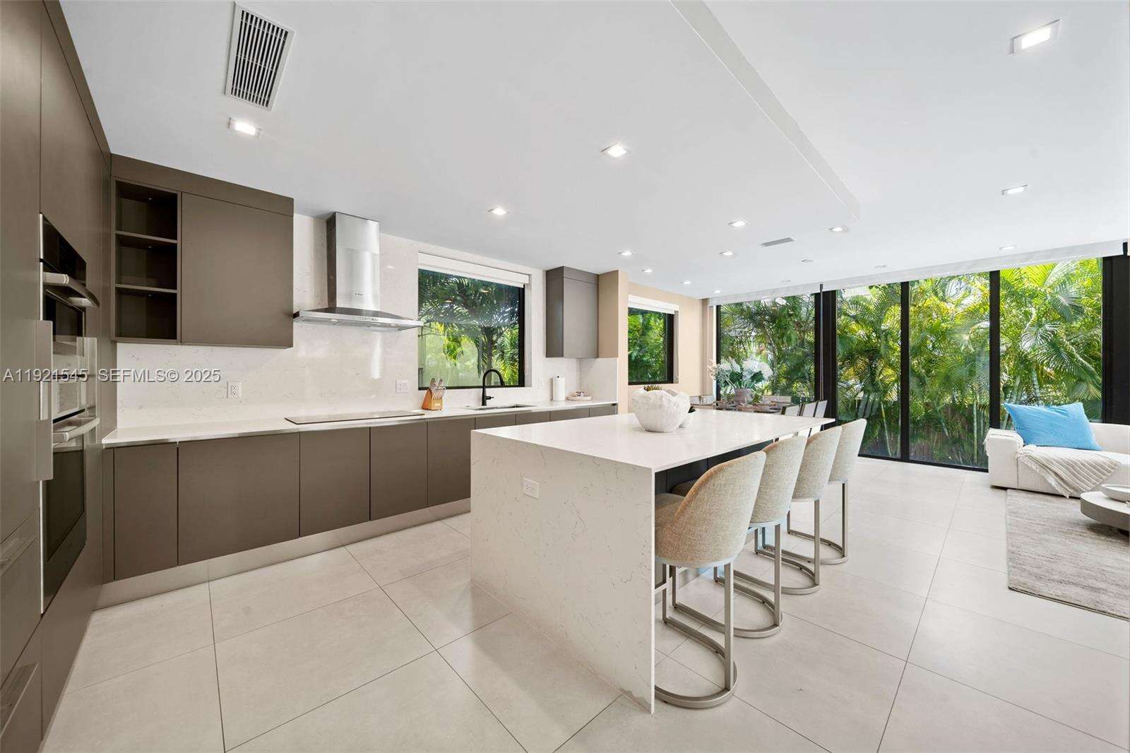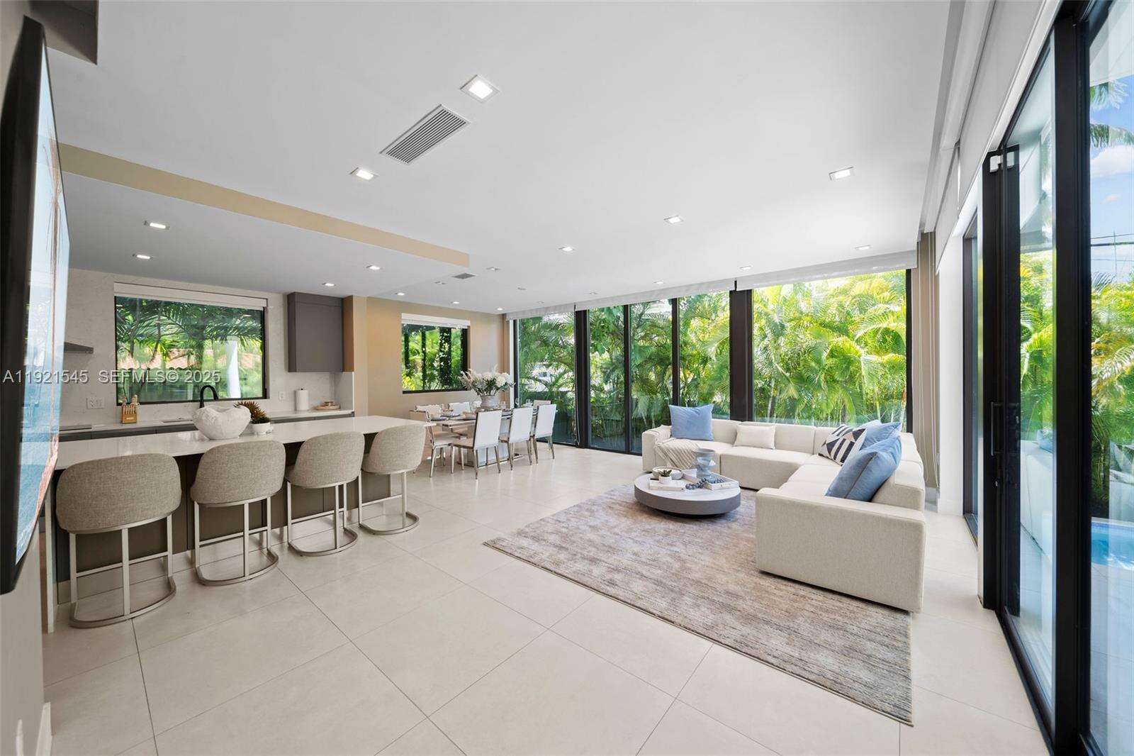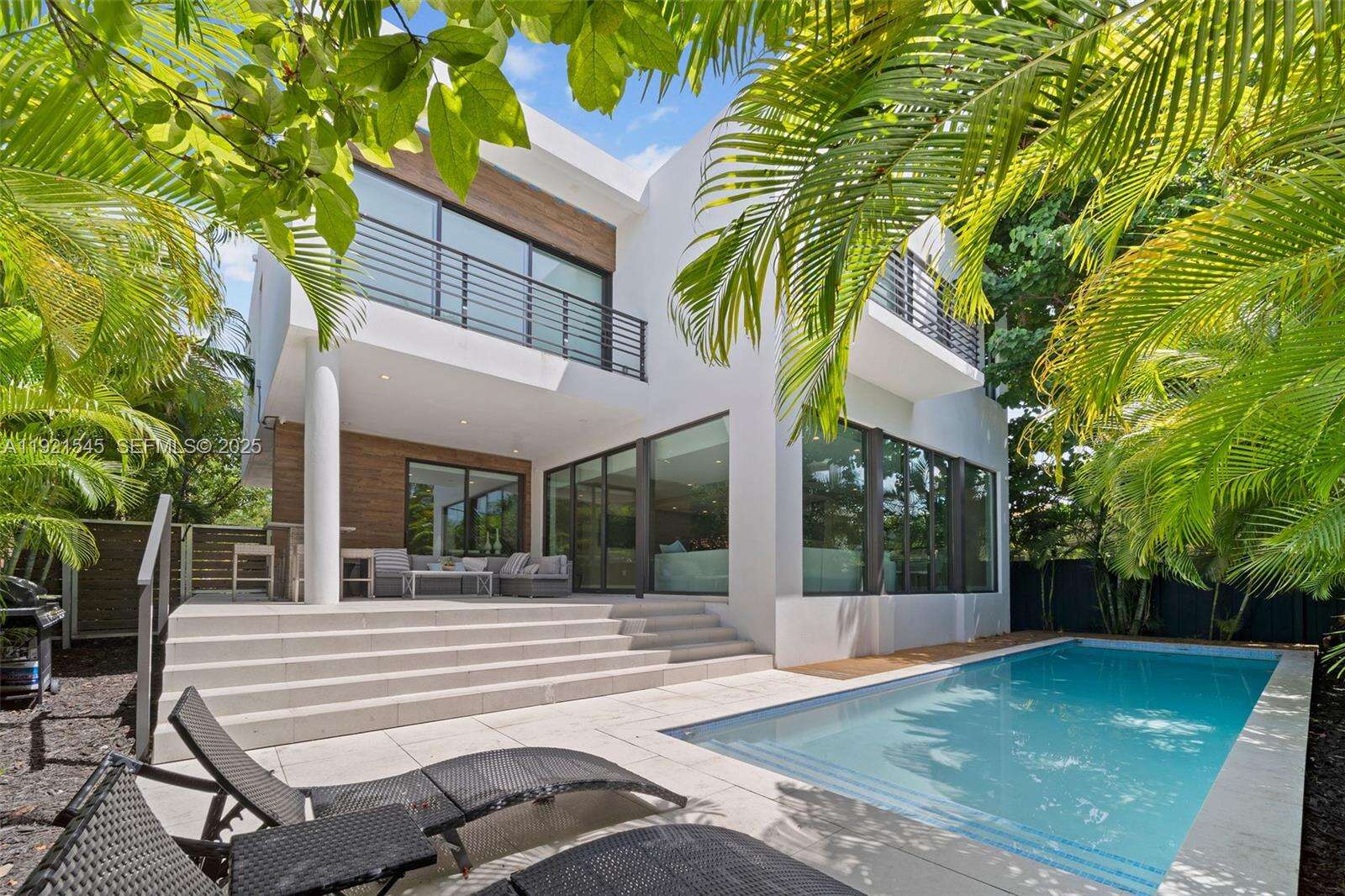 Experience contemporary elegance at its finest in this extraordinary two-story Miami Beach residence, thoughtfully designed to blend luxury living with the tranquility of lush tropical surroundings. Meticulously maintained, this 5-bedroom, 5.5-bath home offers over 3,200 SF of sophisticated interior living space. In one of Miami Beach's most desirable residential neighborhoods, backing prestigious North Bay Road. Bright, open-concept floor plan with oversized floor-to-ceiling windows that frame the beautifully landscaped greenery and flood the entire home with natural light. The main level features spacious living and dining areas, and seamless indoor-outdoor flow ideal for hosting. The gourmet chef's kitchen is fully equipped with premium appliances, including new cooktop, modern hood, double wall ovens, expansive quartz countertops, and custom cabinetry. An oversized island with seating creates the perfect gathering space for family and friends. Upstairs, four generously sized bedrooms each include en-suite bathrooms for ultimate privacy and convenience, while a fifth bedroom on the main level is ideal for guests or a home office. Retreat to your private backyard sanctuary an entertainer's dream. Enjoy a pool, sun deck, covered terrace, outdoor dining, and beautifully curated landscaping that creates complete privacy.