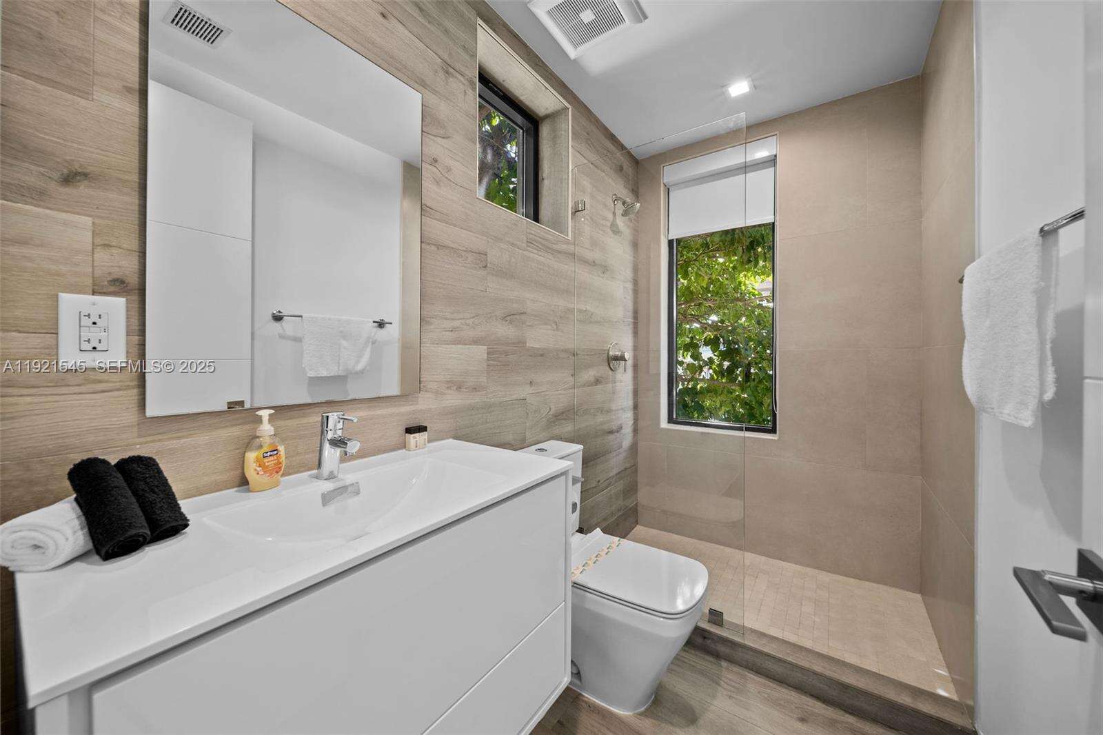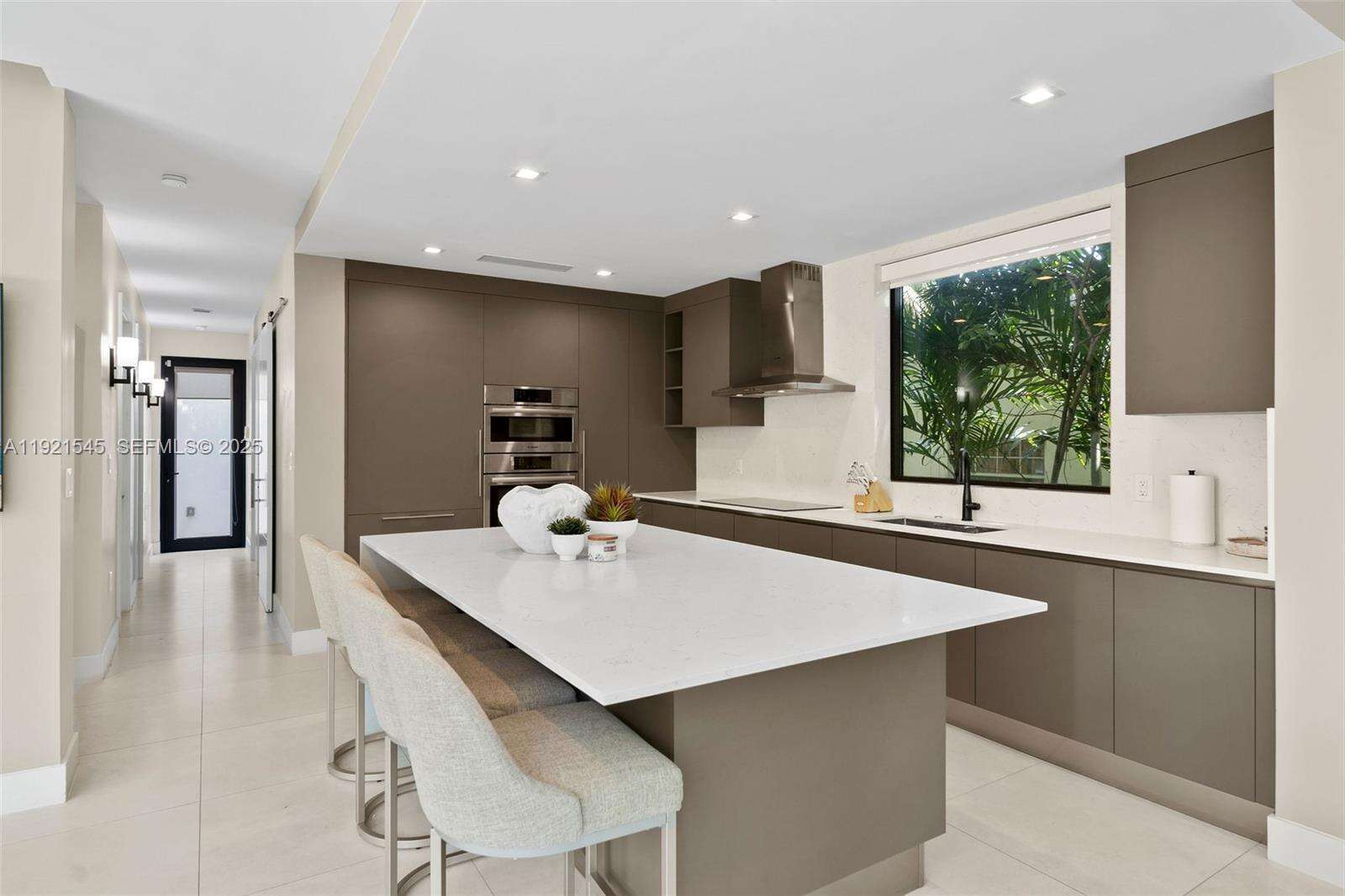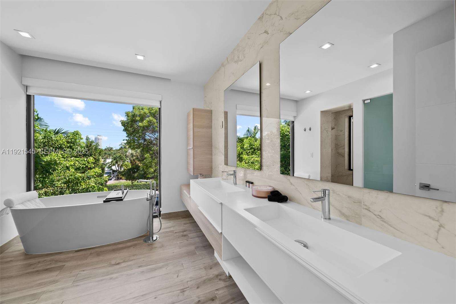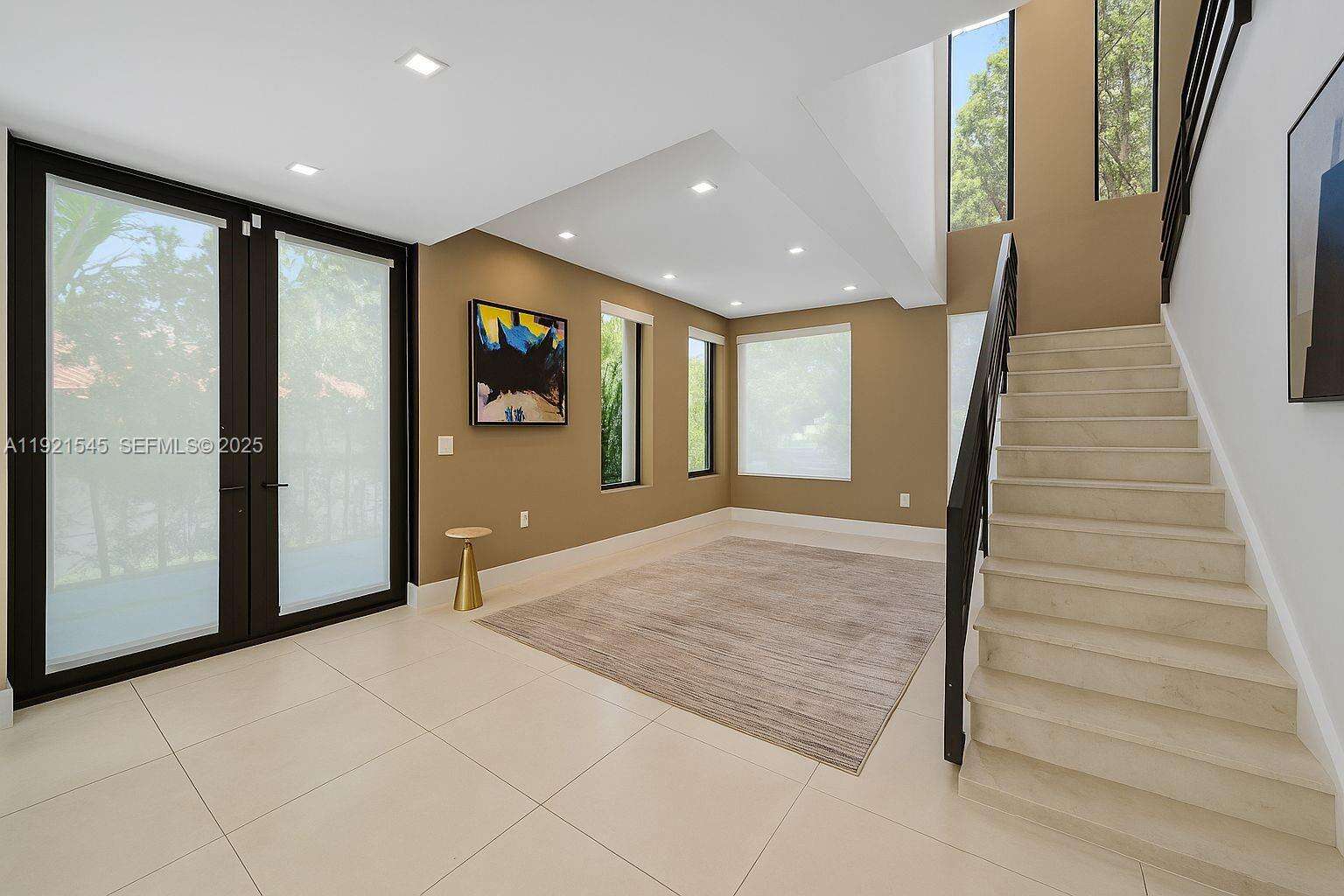 Experience contemporary elegance at its finest in this extraordinary two-story Miami Beach residence, thoughtfully designed to blend luxury living with the tranquility of lush tropical surroundings. Meticulously maintained, this 5-bedroom, 5.5-bath home offers over 3,200 SF of sophisticated interior living space. In one of Miami Beach's most desirable residential neighborhoods, backing prestigious North Bay Road. Bright, open-concept floor plan with oversized floor-to-ceiling windows that frame the beautifully landscaped greenery and flood the entire home with natural light. The main level features spacious living and dining areas, and seamless indoor-outdoor flow ideal for hosting. The gourmet chef's kitchen is fully equipped with premium appliances, including new cooktop, modern hood, double wall ovens, expansive quartz countertops, and custom cabinetry. An oversized island with seating creates the perfect gathering space for family and friends. Upstairs, four generously sized bedrooms each include en-suite bathrooms for ultimate privacy and convenience, while a fifth bedroom on the main level is ideal for guests or a home office. Retreat to your private backyard sanctuary an entertainer's dream. Enjoy a pool, sun deck, covered terrace, outdoor dining, and beautifully curated landscaping that creates complete privacy.
