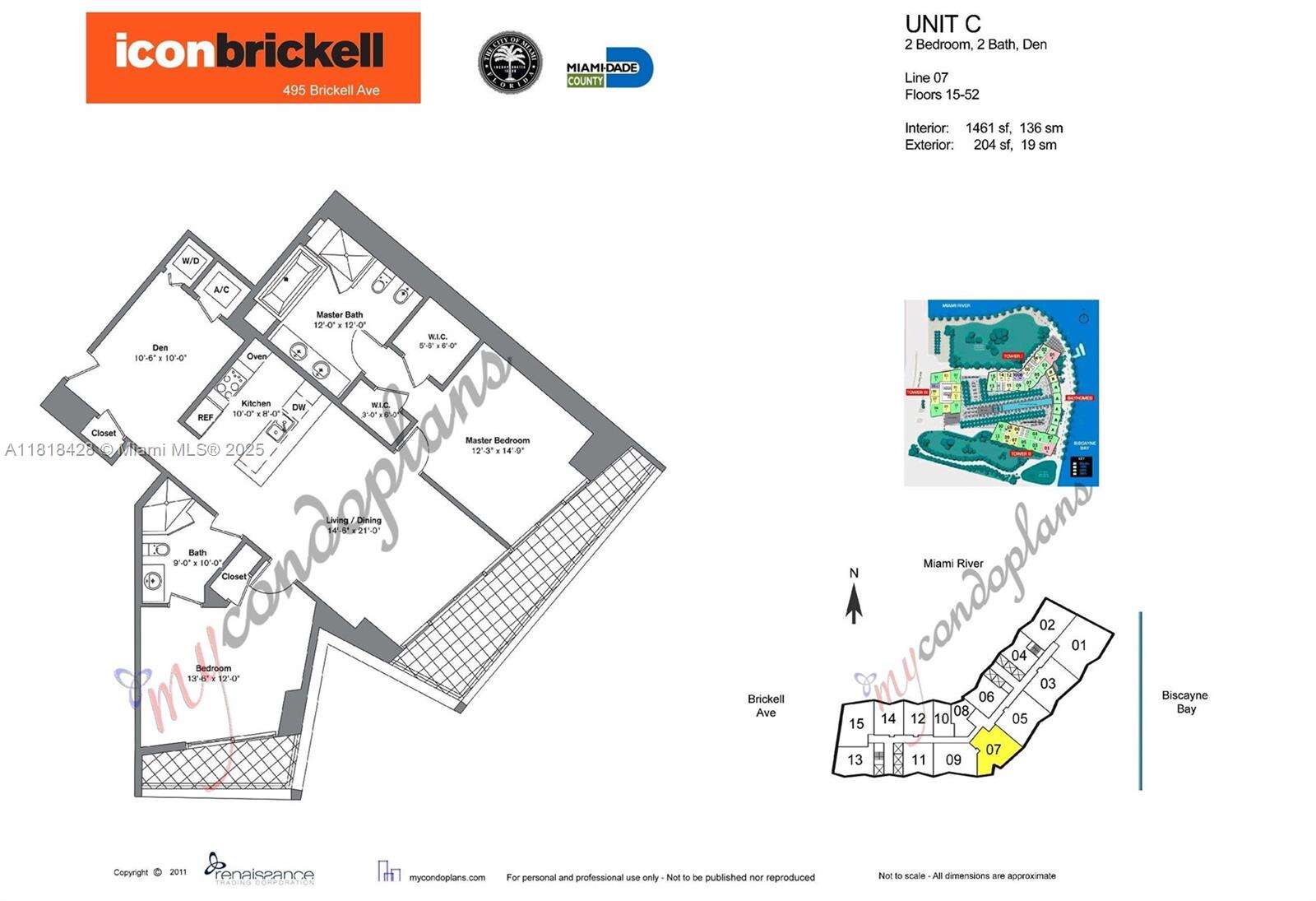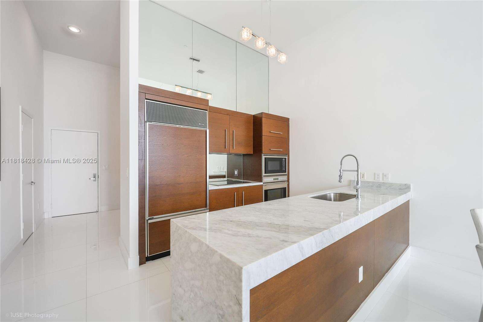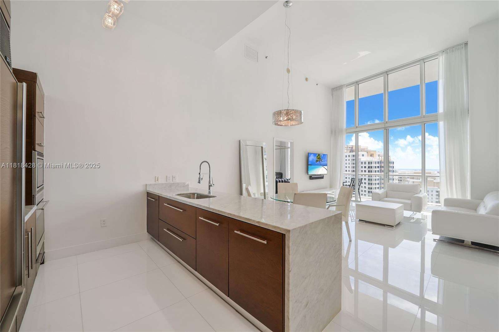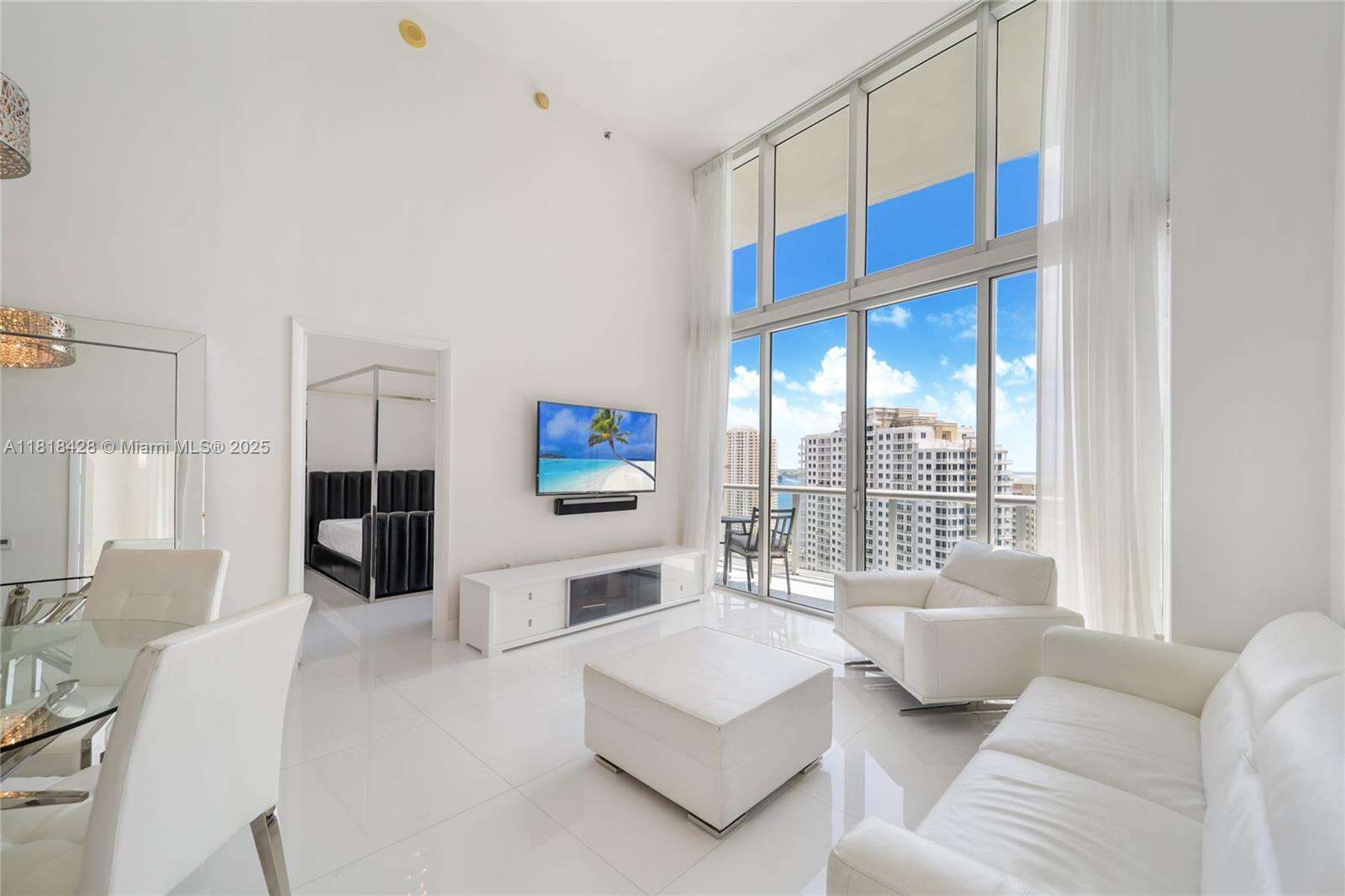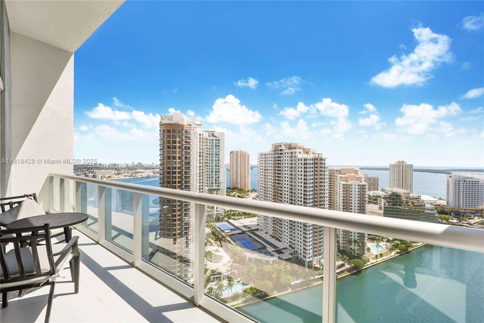 16' Ceilings! 2-Bedroom + DEN, 2-Bathroom unit in Tower 1 at Icon Brickell featuring a spacious balcony with direct-water views of Biscayne Bay and Brickell Key. 1,461 square feet of interior living space offering double-height ceilings, floor-to-ceiling impact-resistant windows, white glass floors and an open-concept kitchen with Italian cabinetry, stone countertops and SubZero/Wolf/Bosch appliances. Resort-style amenities include full-service spa & fitness center, 300-foot-long pool, swimming pool, hot tub, concierge services and 24 hour valet. Situated within easy access of Brickell City Centre and Mary Brickell Village, and just minutes from Wynwood, the Design District, and Miami Beach