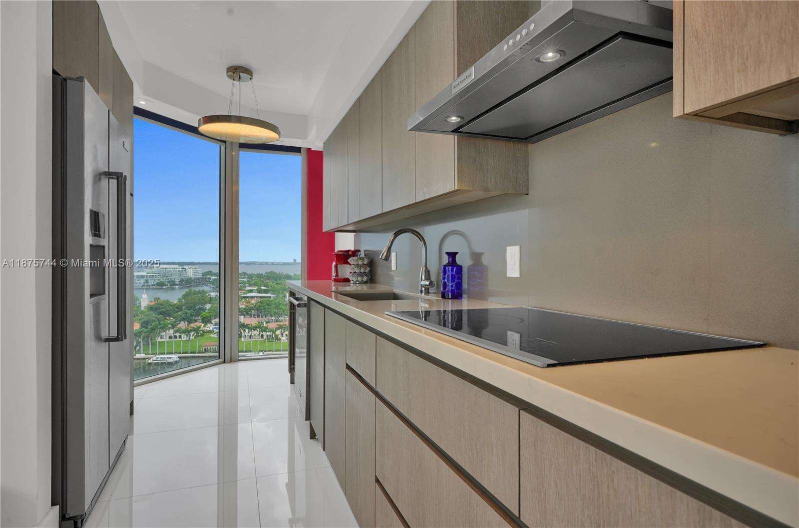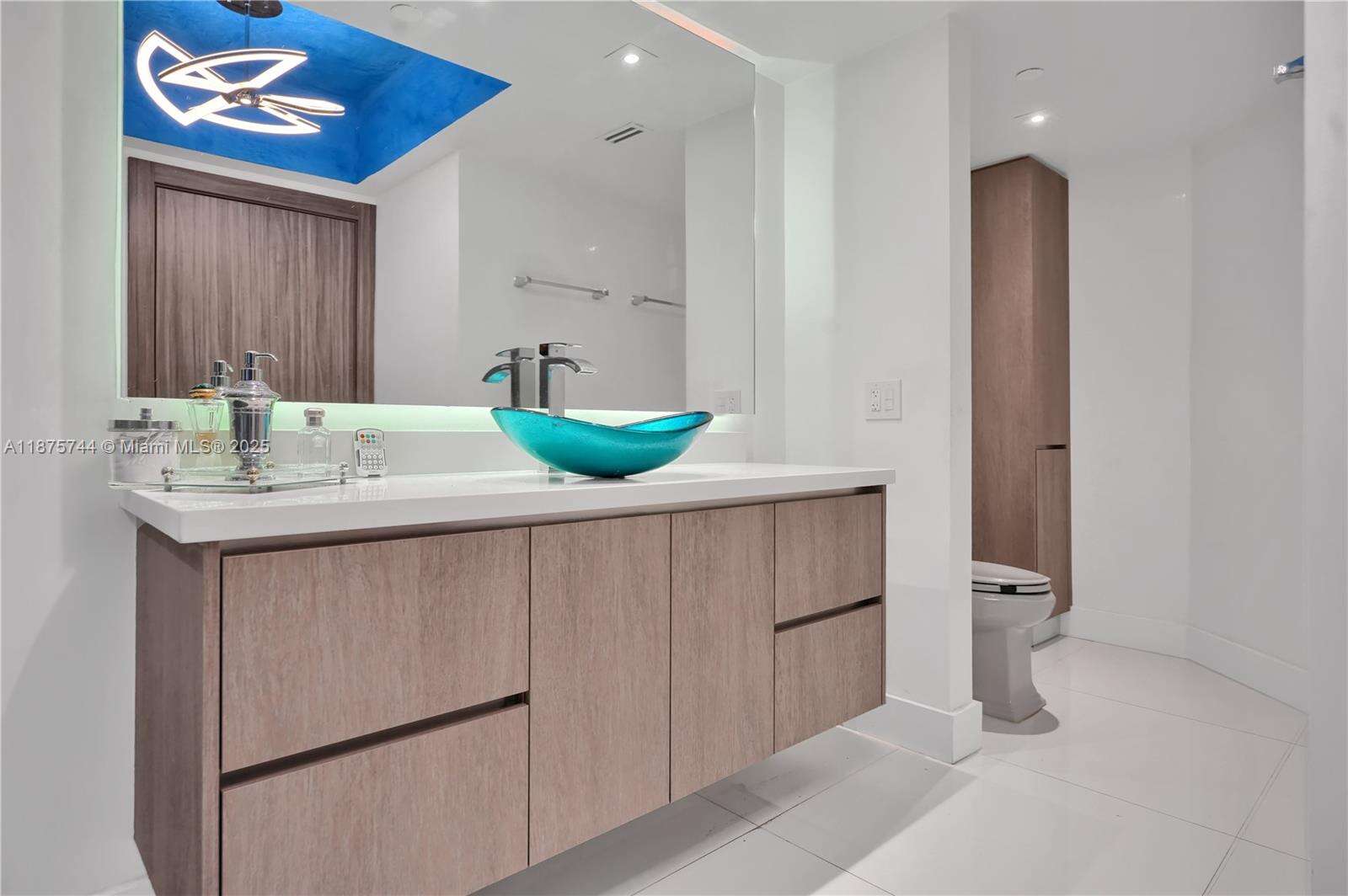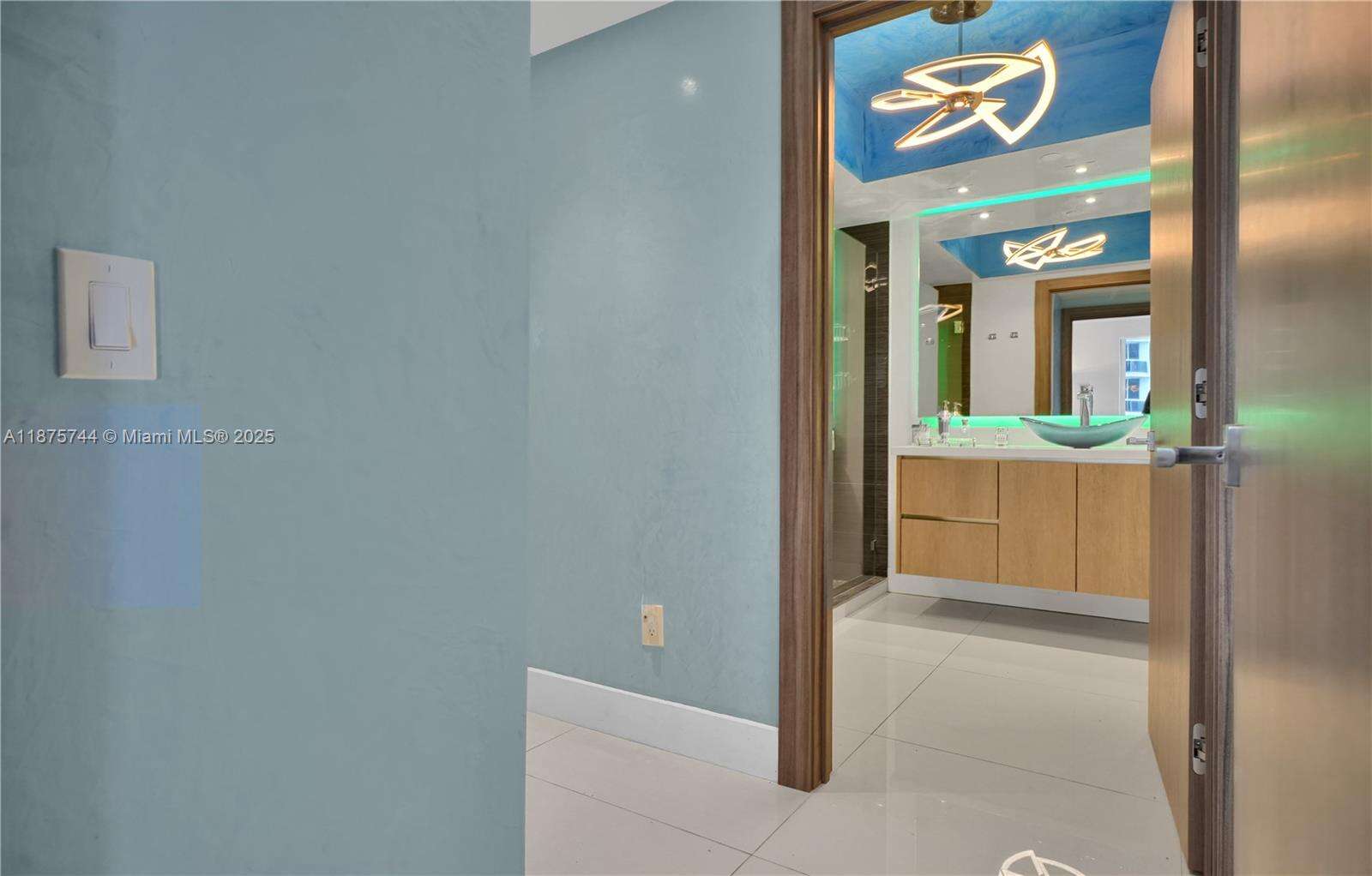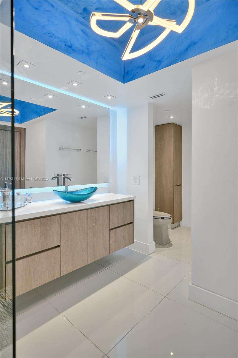 STOP. YOU’VE ARRIVED. ONE OF THE MOST SOUGHT-AFTER RESIDENCES IN THE BLUE DIAMOND — THE ICONIC 05 LINE. This 2-bedroom, 2-bath corner residence (1,380 sq. ft.) showcases a large wraparound terrace, full southern exposure, and walls of floor-to-ceiling glass framing the downtown Miami skyline, Atlantic Ocean, and Intracoastal. From sunrise to sunset, the views are mesmerizing. The owner spared no expense: Venetian plaster throughout (including ceilings), marble flooring, LED lighting, custom built-ins, electric shades in the primary suite, Porcelanosa finishes, and a state-of-the-art open kitchen with designer backsplash and top-of-the-line appliances. The primary bath offers spa-inspired elegance, and every inch of the home has been custom-built to perfection. East to show!