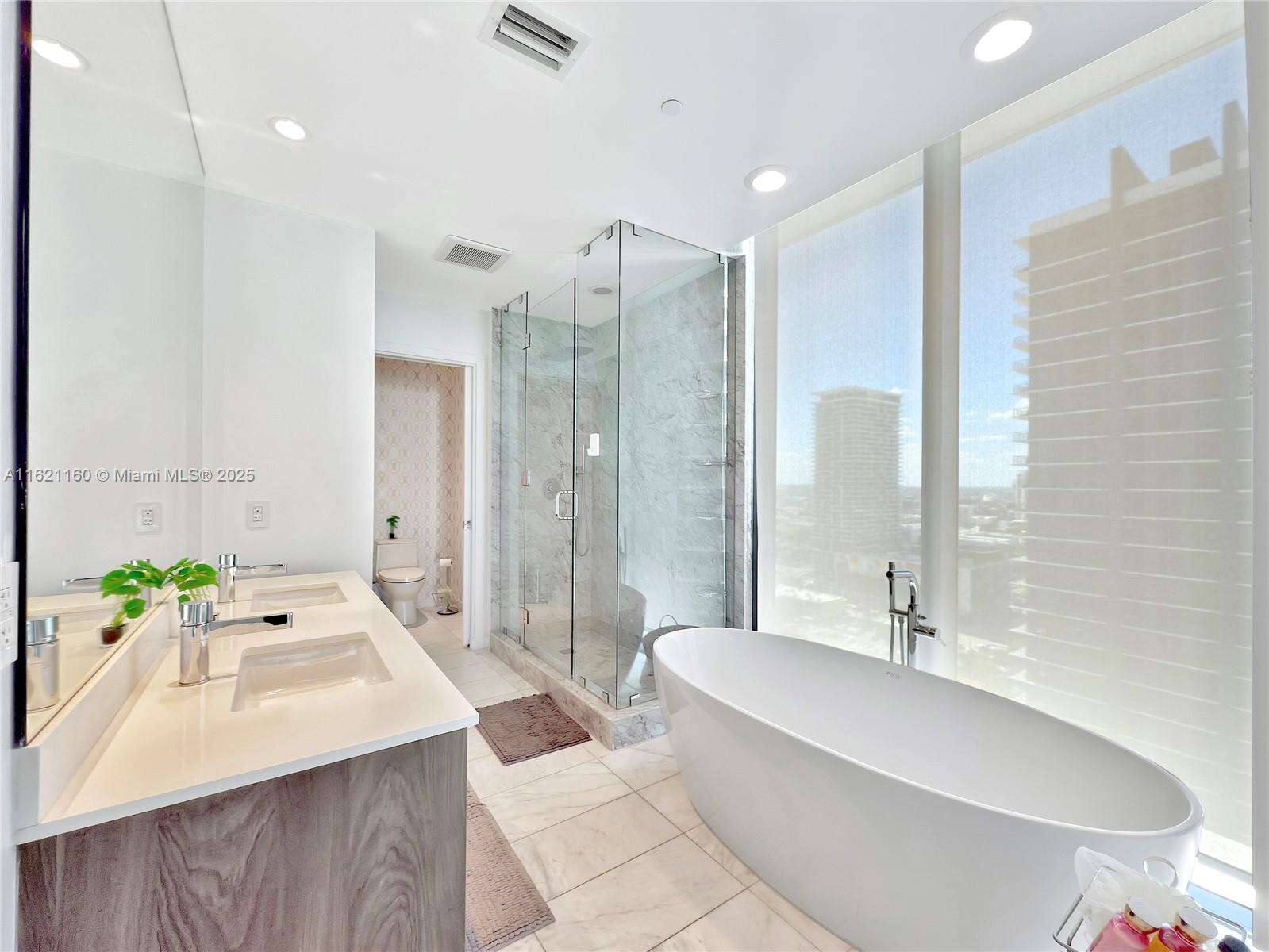 STUNNING VIEWS! Turn-key, ready-to-move in gem. This 3 bed/3 bath+ Den, Corner unit, 800SqFt wrap-around terrace featuring unobstructed Bay & Skyline Views, Sunrise and Sunset views offers unparalleled luxury and comfort with floor-to-ceiling windows with electric shades, private elevator & foyer; Gourmet Kitchen with Italian custom cabinetry, open-concept master. GRAN PARAISO is the most sought-after building in Edgewater, 5-star amenities, resort style circular heated pool, poolside cabanas, state of the art spa and fitness center, yoga and pilates room, business center, tennis courts, theatre, wine cellar and cigar lounge, teen's game room, arcade and bowling, 24hrs security + valet.