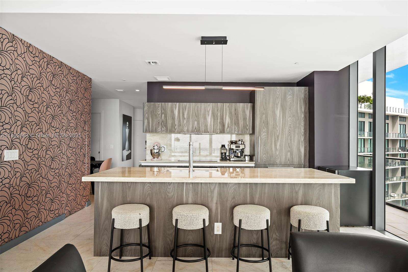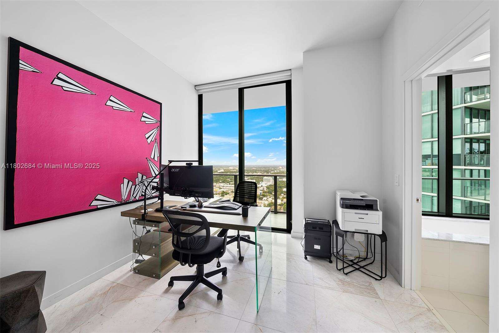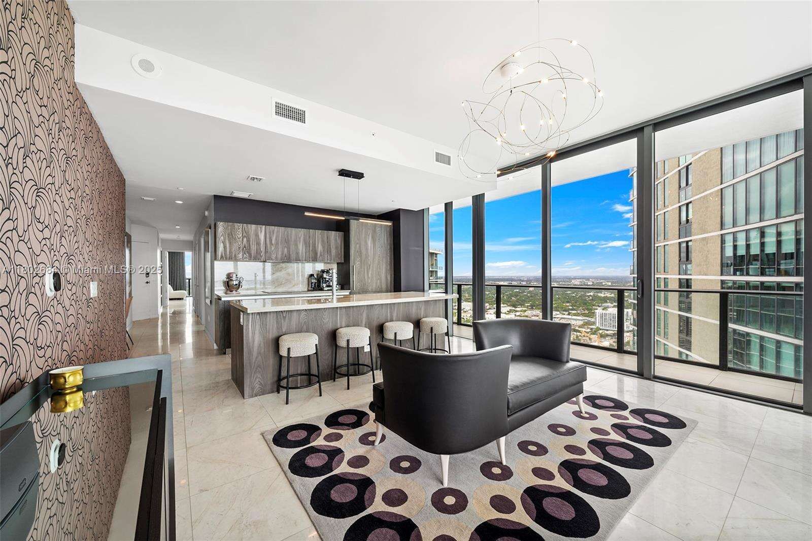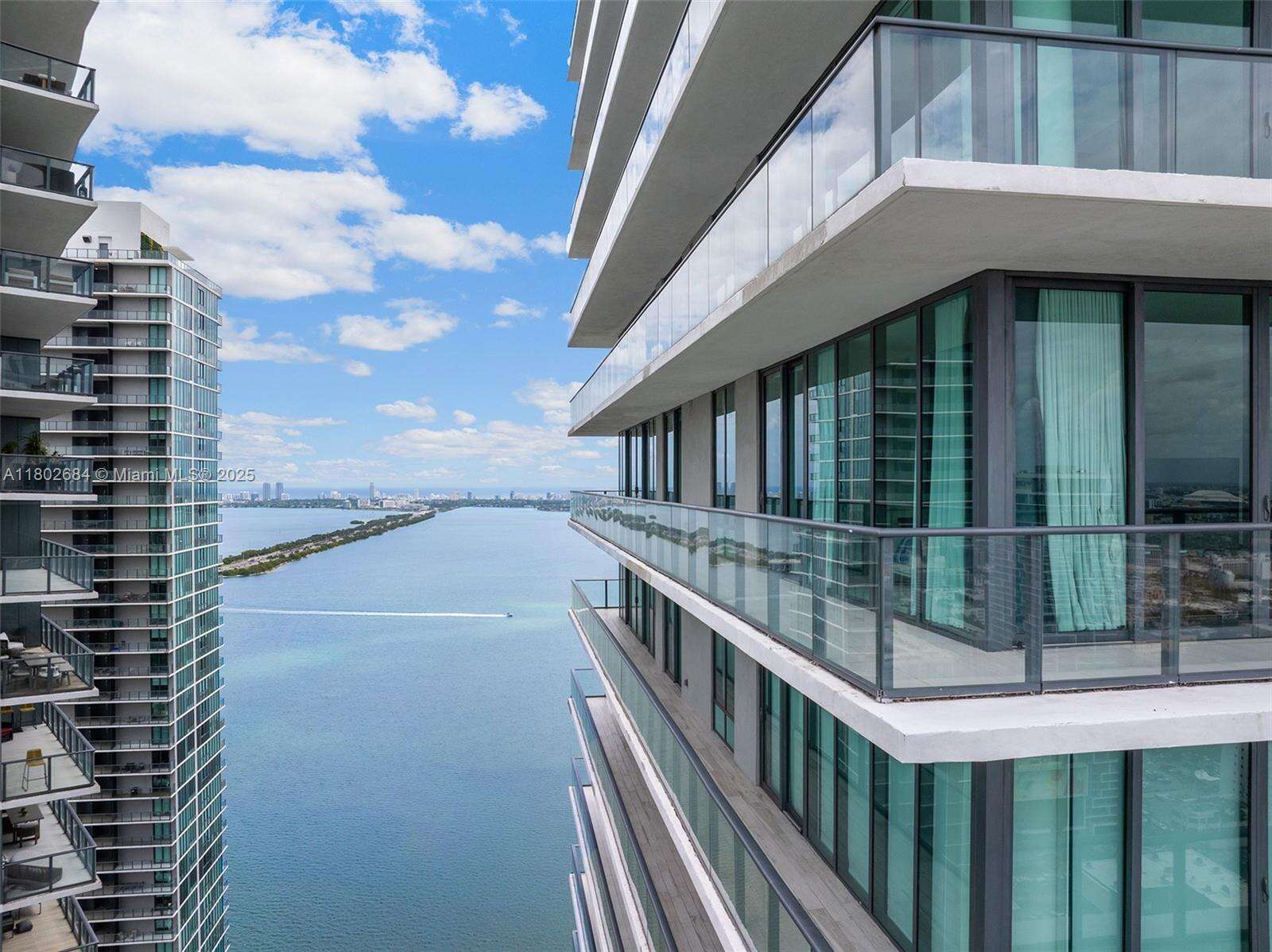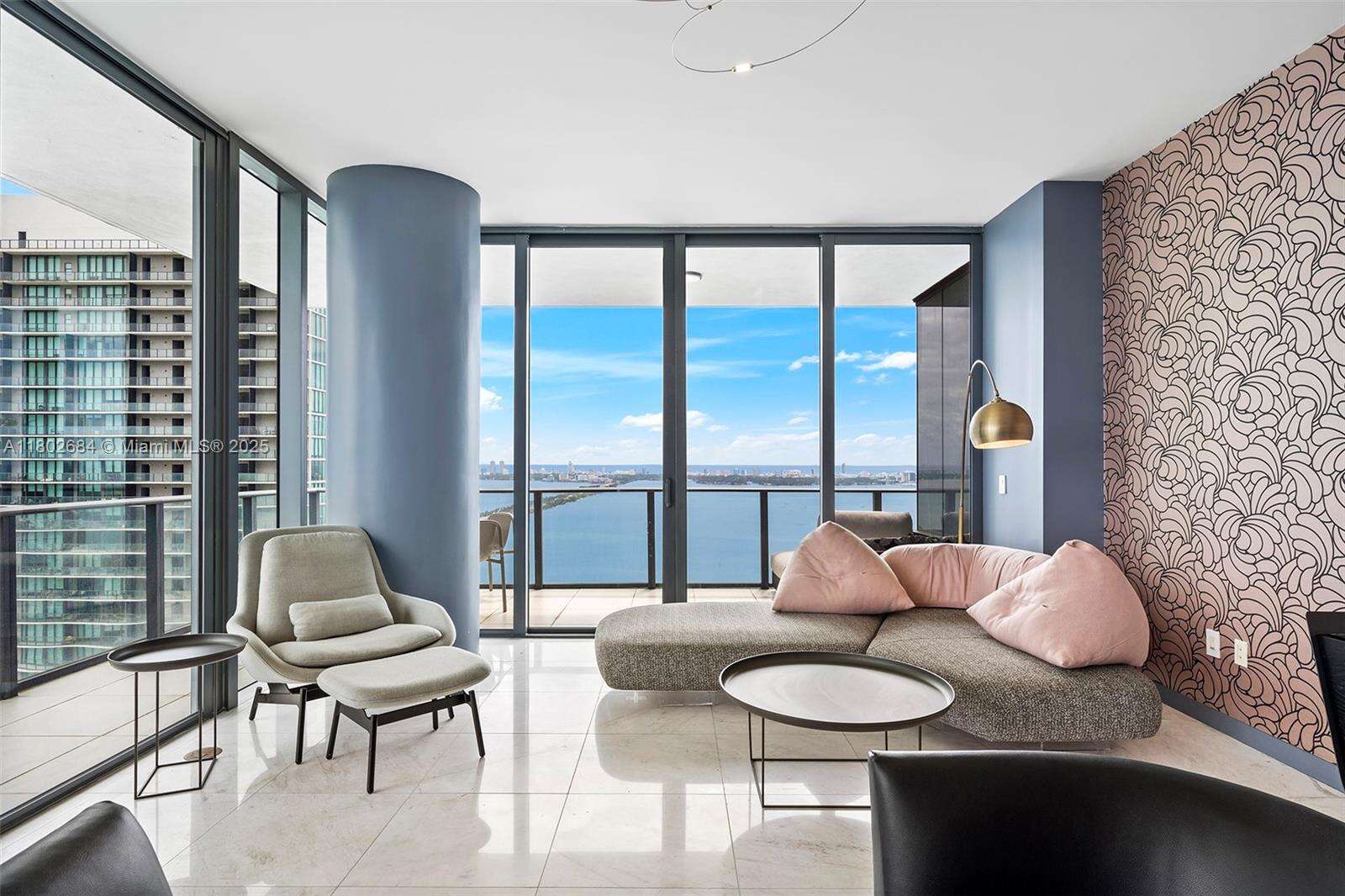 Experience elevated waterfront living in Unit 4207 at Gran Paraiso, a premier luxury residence in Miami's vibrant Edgewater neighborhood. This 3-bed+ den, 3-bath condo spans 1,649 square feet and offers breathtaking, unobstructed views of Biscayne Bay from its expansive balcony. The open-concept layout features floor-to-ceiling glass, sleek porcelain flooring, and a modern kitchen equipped with top-tier appliances. The spacious den provides versatility as a home office or guest room. The building offers A lagoon-style pool with cabanas, State-of-the-art fitness center/spa/hammam, tennis courts, golf simulator,Bowling lanes, billiards room, private screening theater,Wine cellar, cigar lounge,Children’s playground and wading pool, and a Business center. Paraiso District offers a dog park.