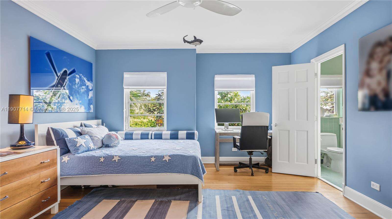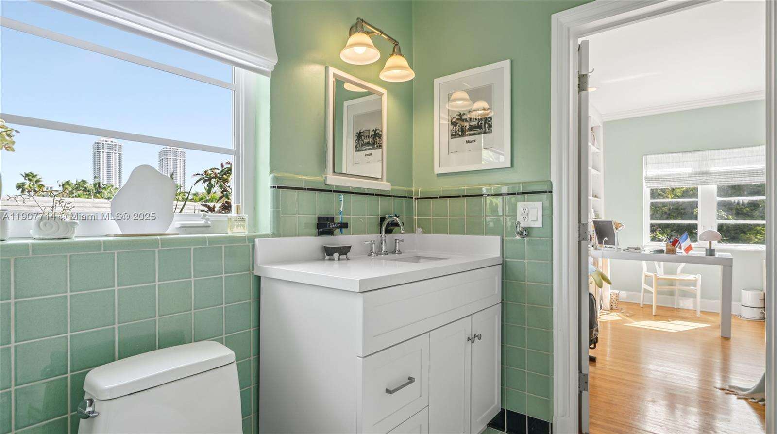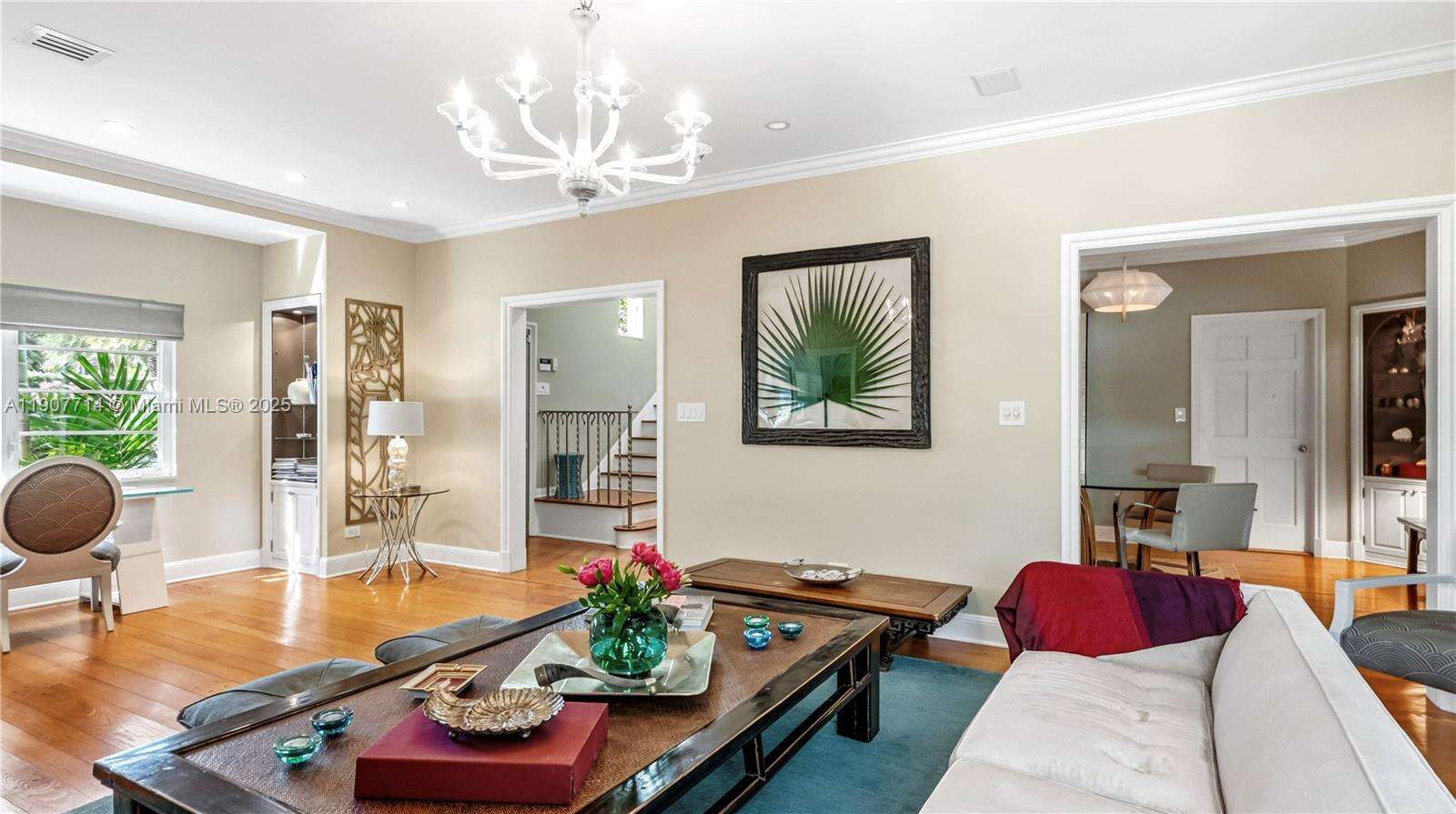 Located in the prestigious Lakeview neighborhood, this corner lot, 2 story home exudes classic charm, offering 4 bedrooms, 3.5 bathrooms, plus an oversized den/office. One full bed & bath are conveniently located on the first floor with a prvt. entrance. The gourmet gas kitchen opens to a large family room, perfect for entertaining. The living room boasts a working fireplace & floor to ceiling custom bookshelves, and the elegant dining room features curved glass shelving. The glamorous primary bedroom has soaring high ceilings,2 walk in closets & a prvt balcony. The backyard showcases a heated, salt water Pebble Tec pool surrounded by tranquil lush landscaping. The home has a 4 yr old roof, newer high impact doors/windows, new electrical panels, 3 ac units, & ample storage. This quiet, tree lined neighborhood is a few mins to Mt. Sinai hospital, major highways dog parks & the beach.