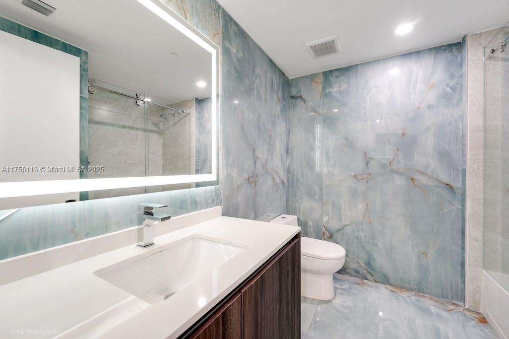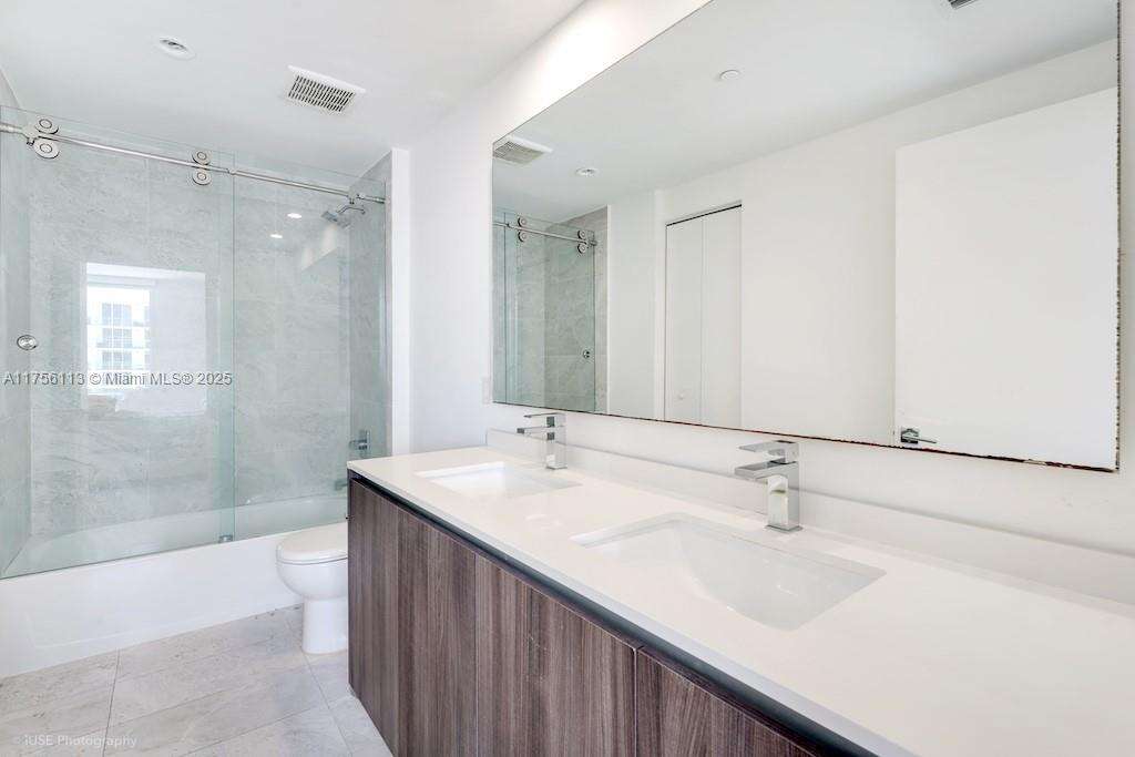 Enjoy jaw dropping open bay and city views from the 49th floor at Aria on the Bay. This spacious and upgraded 2 Bedroom + 3 Baths residence in central Edgewater location spans 1,229 SF Interior + Terrace. Boasting 9-foot ceilings with floor-to-ceiling windows, impeccably maintained porcelain flooring throughout, white quartz countertops, Italian wood cabinets, and stainless steel kitchen appliances by Bosch. Aria on the Bay offers an array of amenities, including pools, hot tub overlooking Biscayne Bay, movie theater, fitness center and yoga studio, spa and massage treatment area, BBQ area with summer kitchen, kids’ playroom, business center with conference room and offices, and much more. Live just 10 minutes from South Beach and 12 minutes from Brickell. Furniture included in the sale.