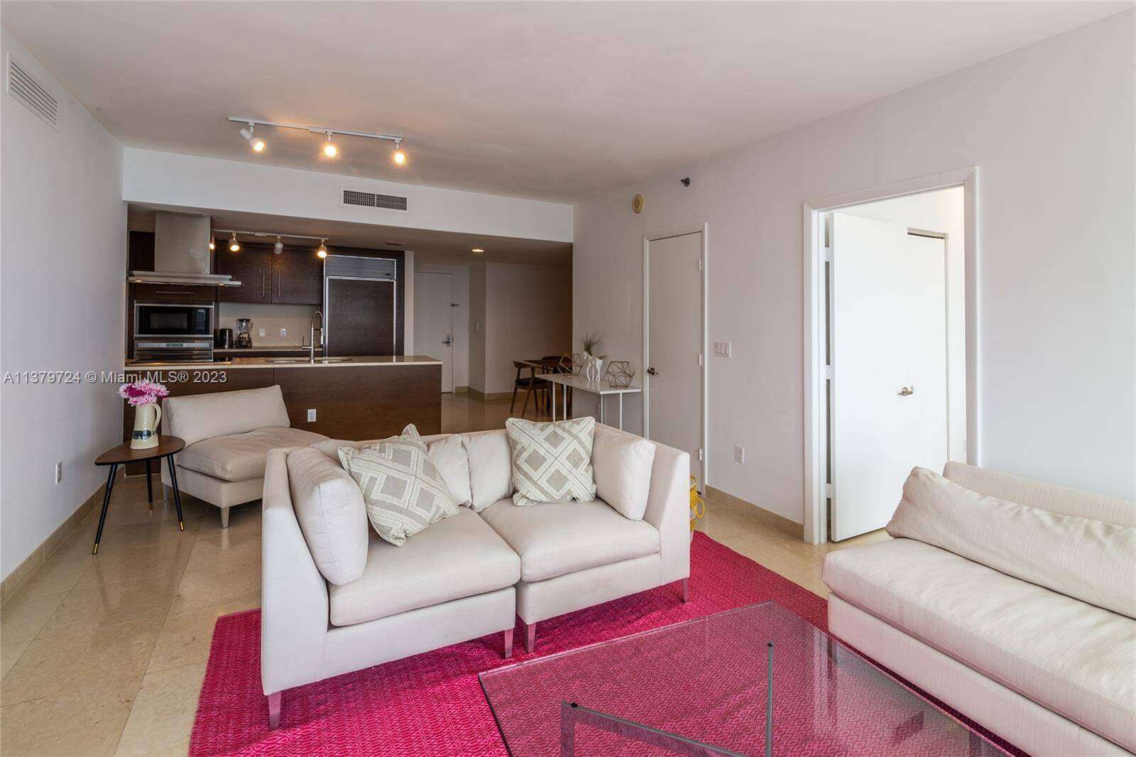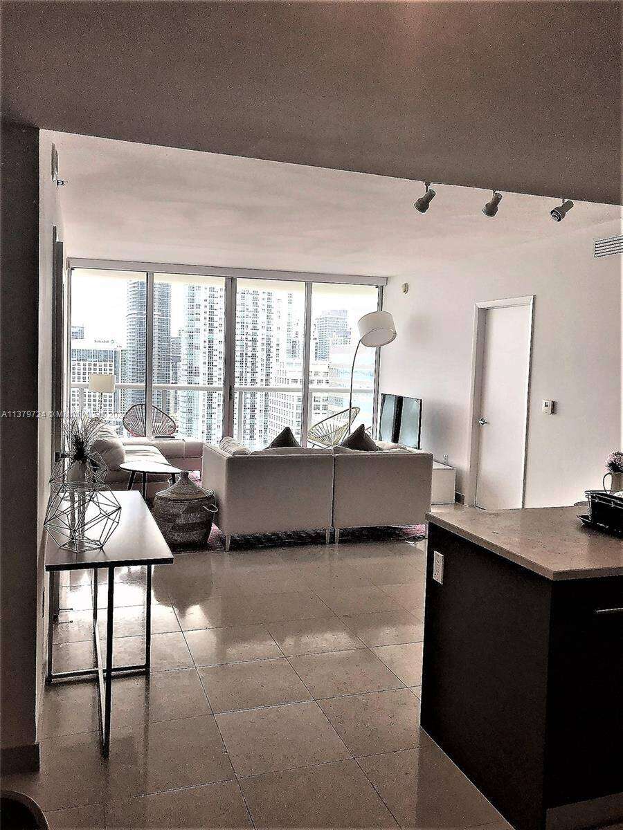 Furnished unit with 2/2/ split plan plus den with fantastic Bay views. beautiful marble floors. Modern kitchen with top of the line appliances. Blackout shades in Bedrooms. Washer & dryer in unit. One parking space. Tenant has a one year lease but agrees to negotiate with buyer if they want to terminate the lease giving 4 months notice. Tenant has three years living here. Building has great amenities like huge lap pool, spa, gym ,billiard and movie rooms. Italian top restaurant like Cipriani on ground floor of Icon 1. Also Cantina La Veinte. Walking distance to Brickell Citi Centre with more top of the line restaurants and high end stores like Saks Fifth Avenue. Easy access to free transportation in Brickell. You will love this apartment. Come and see it. 48hours notice to show