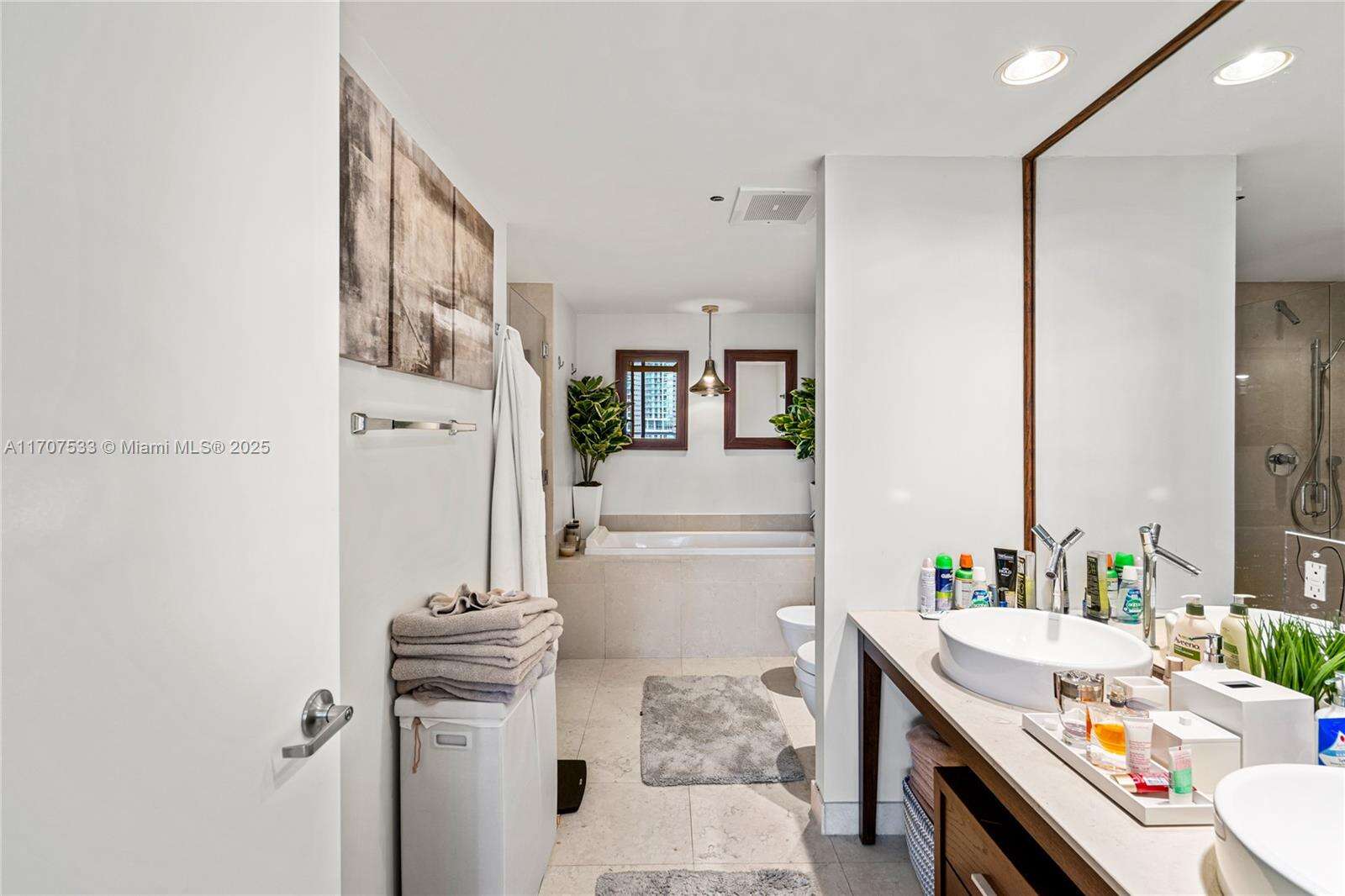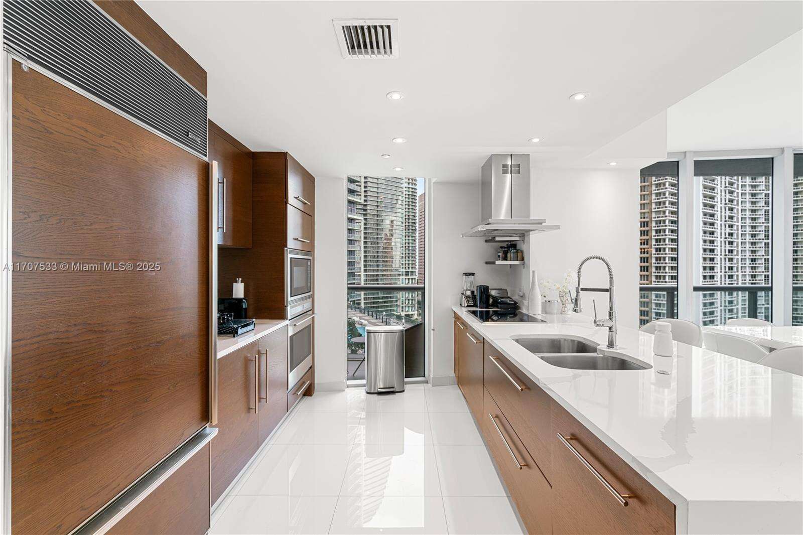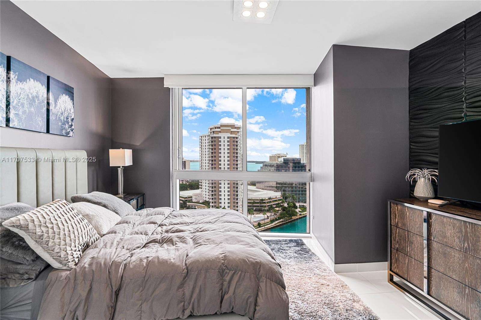 Unique Available.- Unparalleled 180° views of Biscayne Bay, the cityscape & resort-style pool from this exceptional corner 3 BR / 2BA Residence Tastefully Renovated. The largest layout 2-Br Condo w/Den (Converted to 3rd Br) Available for Sale in Tower II of Icon Brickell. 1,654 Sq Ft (153.66 m2) living area as per Developer floor plan. Open concept living and dining area. Well-equipped kitchen with modern appliances and ample storage. Convenient in-unit laundry — No subletting / No Airbnb. Monthly HOA fee (2025) $2,087.51, includes Assigned Parking space, water, basic cable, internet & more. Short-term must be No less than 6 months as per condo rules — Vacant & Move-in Ready!