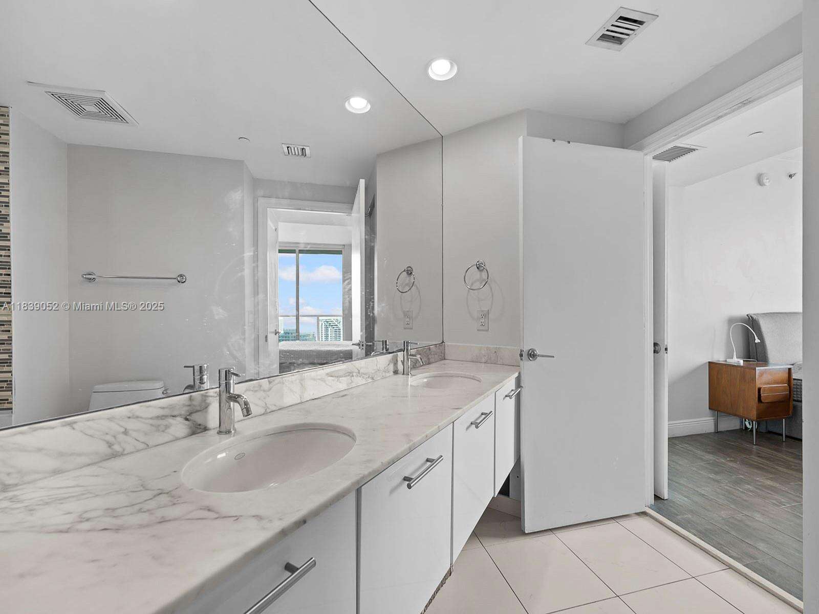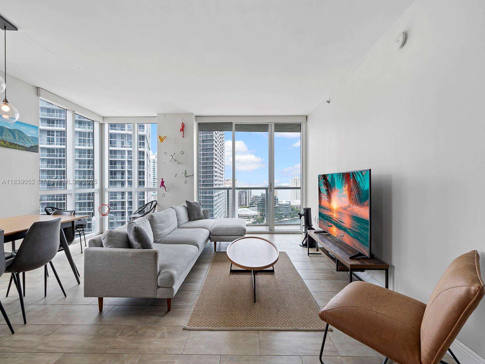 Rare and spacious, 01 line, 3 bedroom, 3 FULL bathroom, corner unit in 500 Brickell's East Tower. The 01 line is the only 3 bedroom line within both the East and West towers. NO ASSESSMENTS in place and it is a financially stable building. Floor to ceiling windows throughout, plenty of light, this unit has picturesque 90 degree views of the Miami River, the Downtown Miami Skyline, the bay, Brickell Key and South Brickell Ave. Tiling throughout the unit, including the large balcony, and Master and living room access from the balcony. Open kitchen plan with Italian cabinetry and high end appliances. Brand new LG, full size washer and dryer. 5