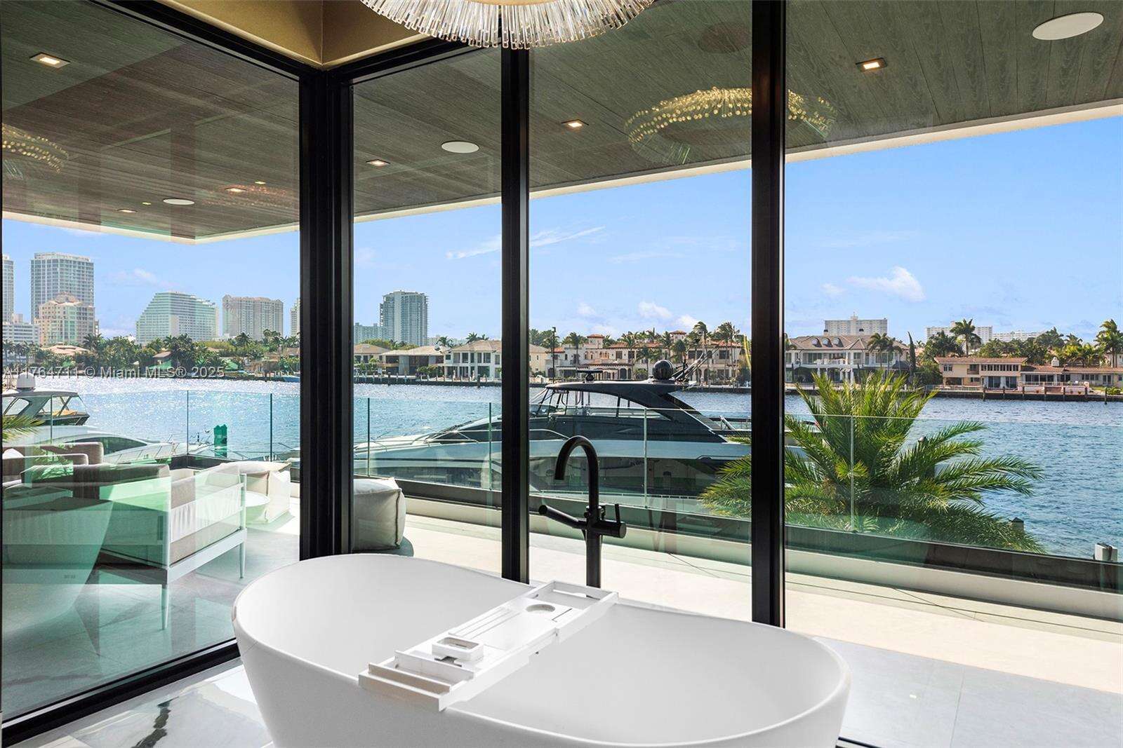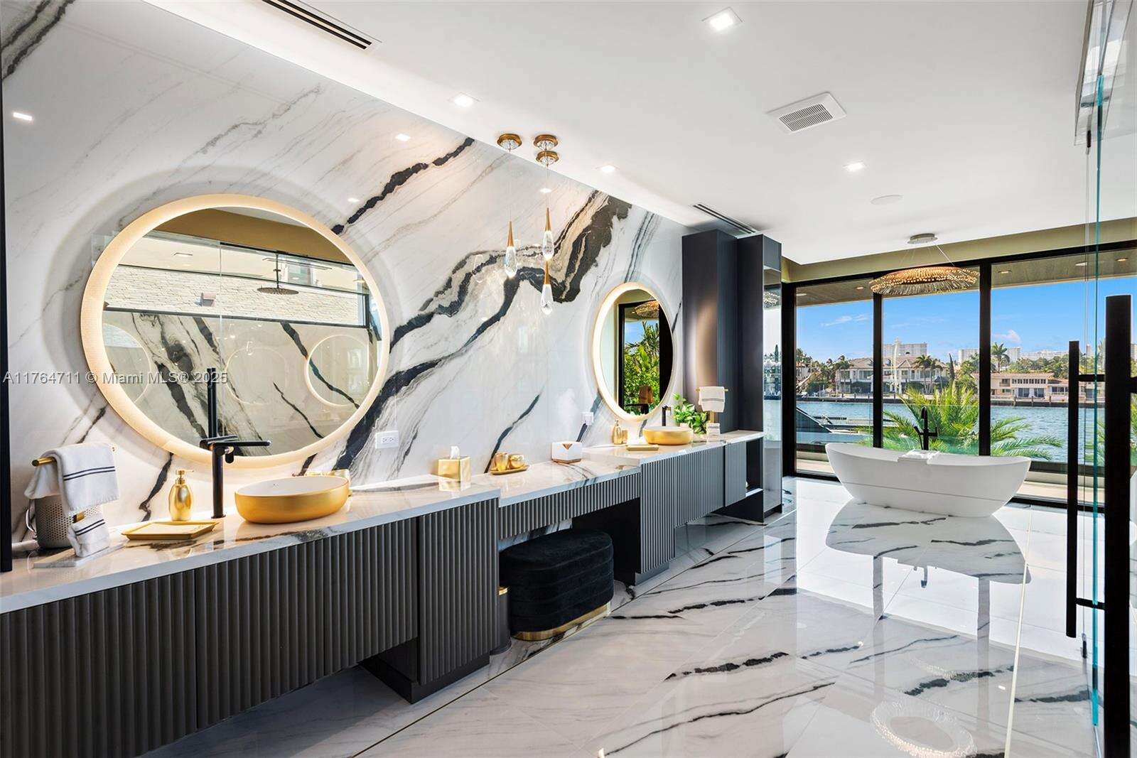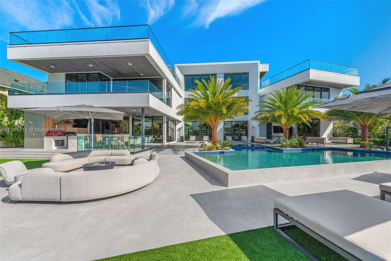 Discover unmatched luxury in this newly built estate by Crest Group & Bruce Celenski. Spanning 150 feet of prime Intracoastal frontage, every detail of this home exudes prestige. Unwind in the Turkish Bath spa, entertain in the media room, or elevate your fitness in the private gym. Culinary experiences shine with a chef’s kitchen, auxiliary prep space, and wine room. The primary suite is a retreat of its own offering an oversized suite and a spa like bathroom. Step outside to indulge in two summer kitchens, a rooftop deck with a hot tub, a pizza oven, fire pits, and a stunning pool oasis. Boaters will love the private dock and floating dock, while car collectors have room to expand with showcase garages. A home crafted for the connoisseur of fine living just minutes from the beach.