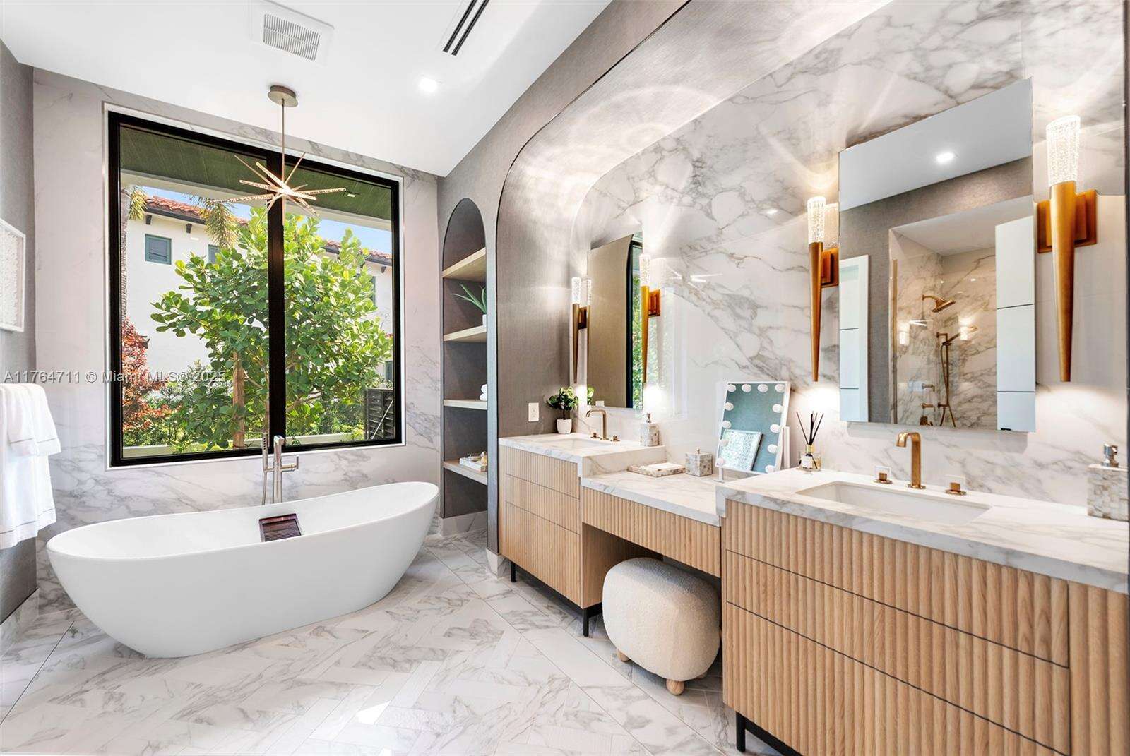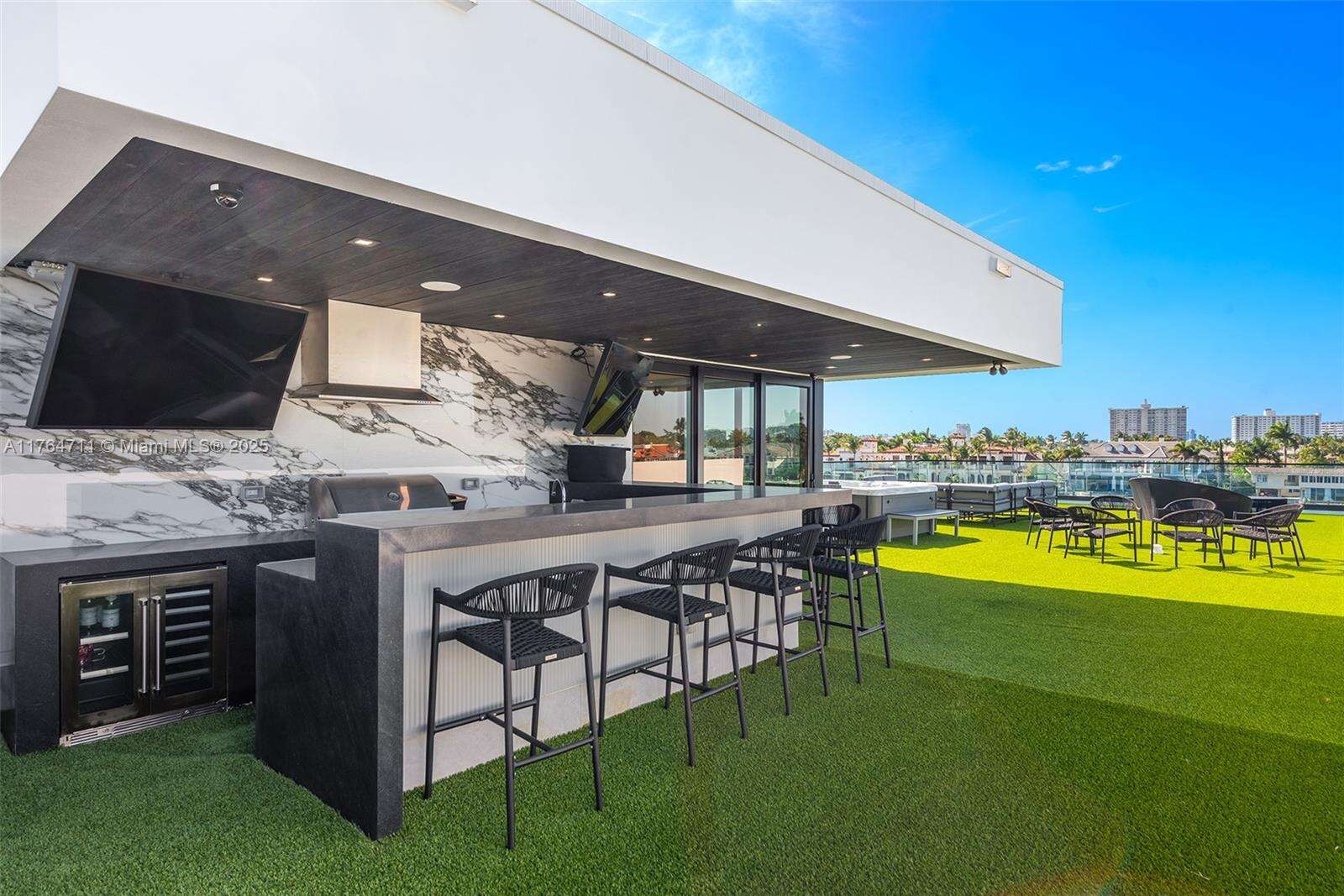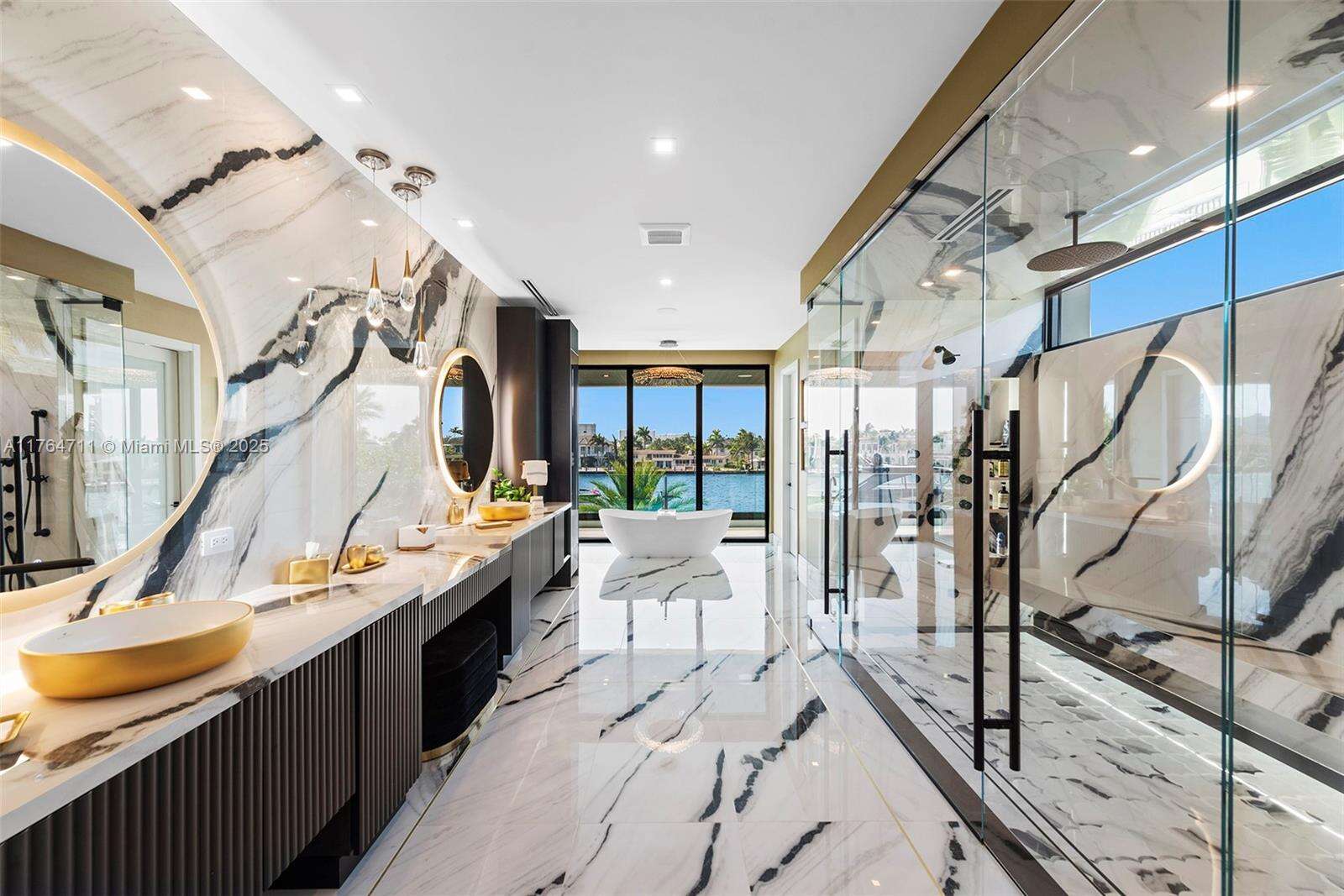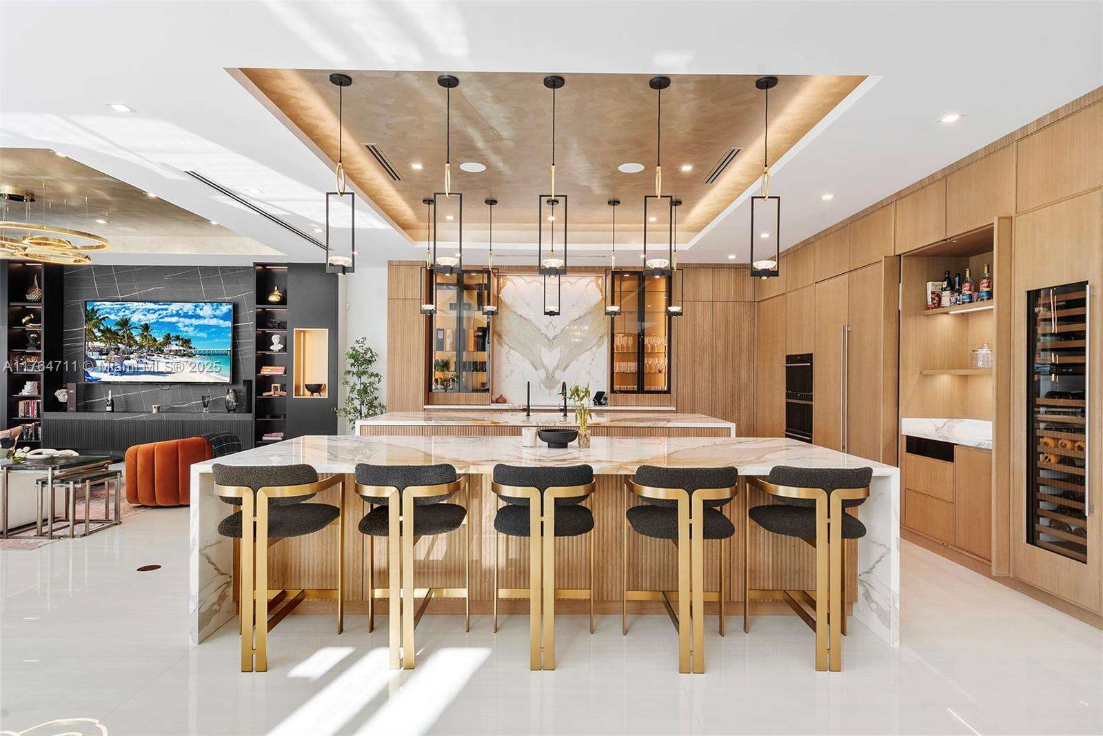 Discover unmatched luxury in this newly built estate by Crest Group & Bruce Celenski. Spanning 150 feet of prime Intracoastal frontage, every detail of this home exudes prestige. Unwind in the Turkish Bath spa, entertain in the media room, or elevate your fitness in the private gym. Culinary experiences shine with a chef’s kitchen, auxiliary prep space, and wine room. The primary suite is a retreat of its own offering an oversized suite and a spa like bathroom. Step outside to indulge in two summer kitchens, a rooftop deck with a hot tub, a pizza oven, fire pits, and a stunning pool oasis. Boaters will love the private dock and floating dock, while car collectors have room to expand with showcase garages. A home crafted for the connoisseur of fine living just minutes from the beach.