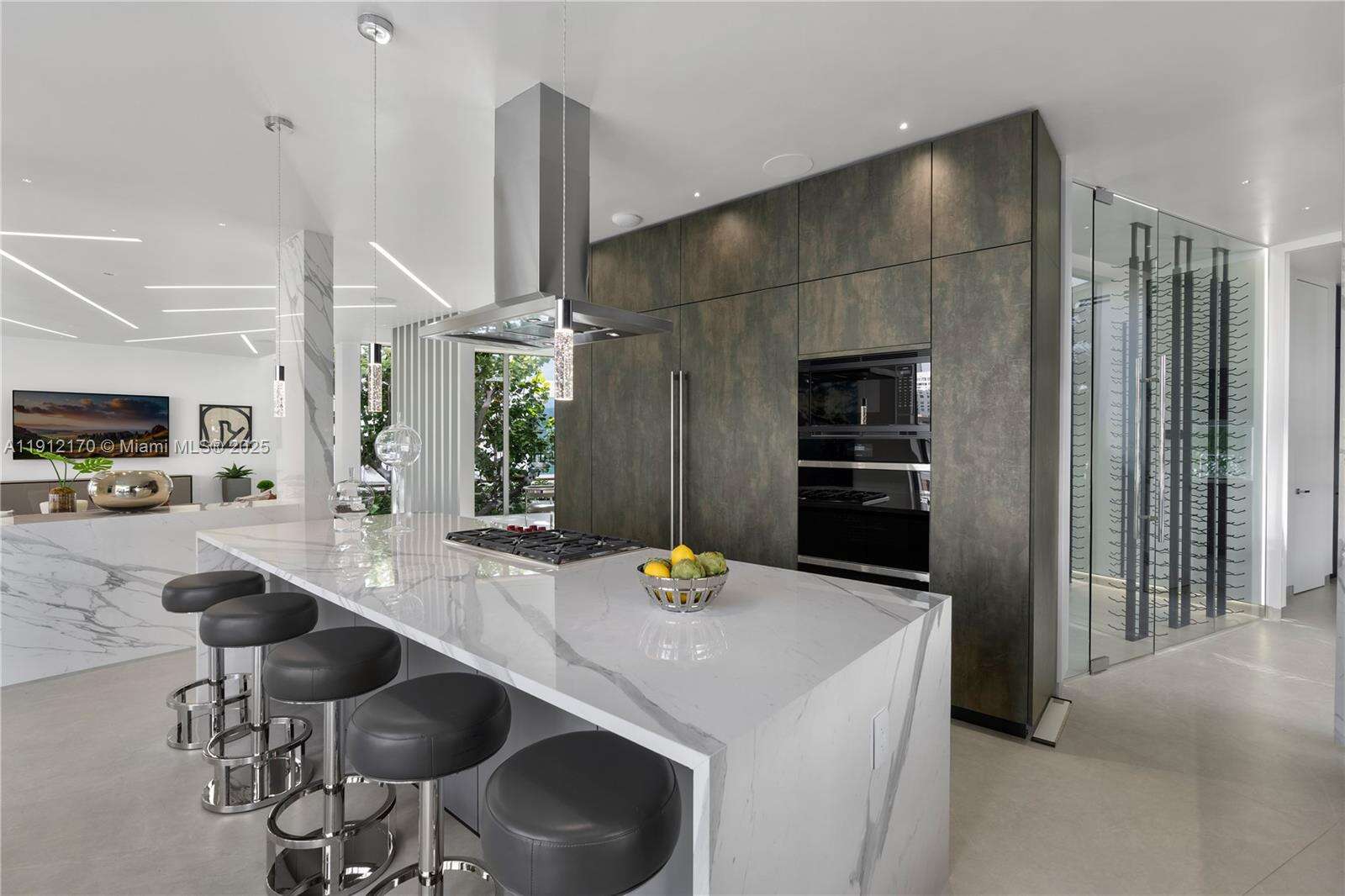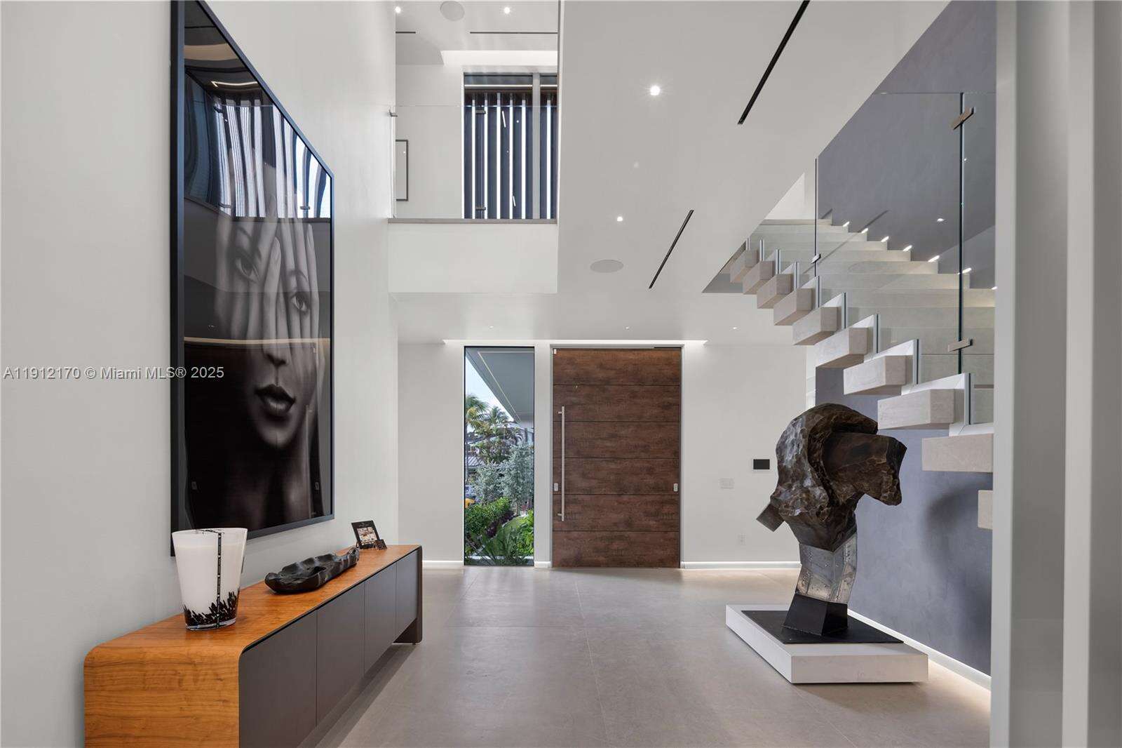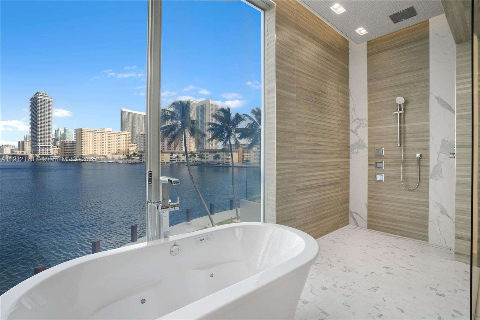 Welcome to this brand new architectural gem located in the exclusive guard gated waterfront community of Golden Isles in Hallandale Beach. Situated on a 16,000 SF point lot along the Intracoastal Waterway, this trophy home can accommodate a 200 FT Mega Yacht. Interiors include 8,000 SF of meticulously designed living space. Five bedrooms upstairs, two downstairs, plus a gym and office—all crafted with premium materials and custom millwork. The 1,400 SF master suite features separate his-and-hers bathrooms and closets for ultimate privacy. Additional interior highlights include a custom European kitchen, wet bar, wine cellar, elevator, and media room. Enjoy a resort-style pool, summer kitchen, 315 FT OF WATER, BRAND NEW concrete sea wall & No fixed bridges.