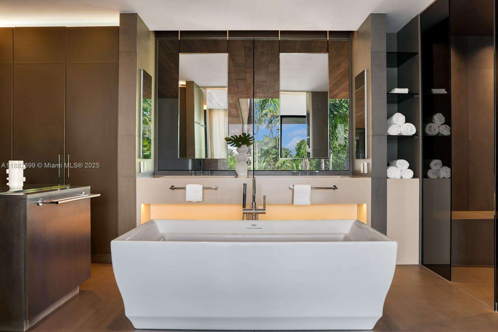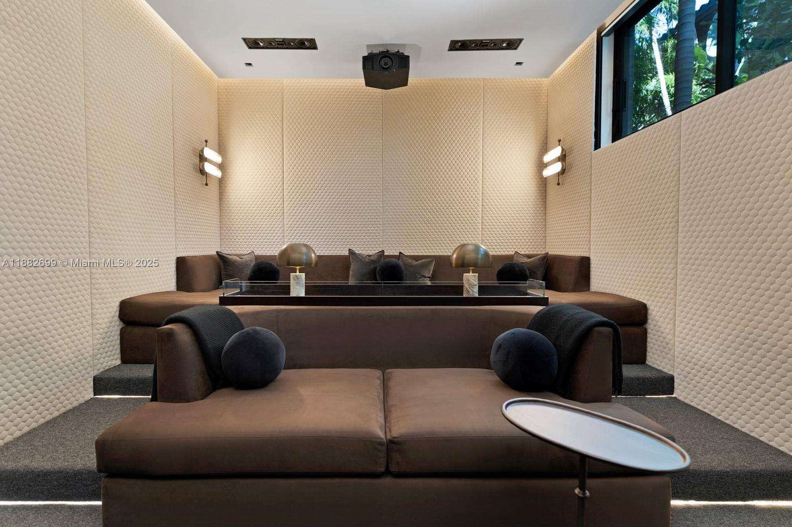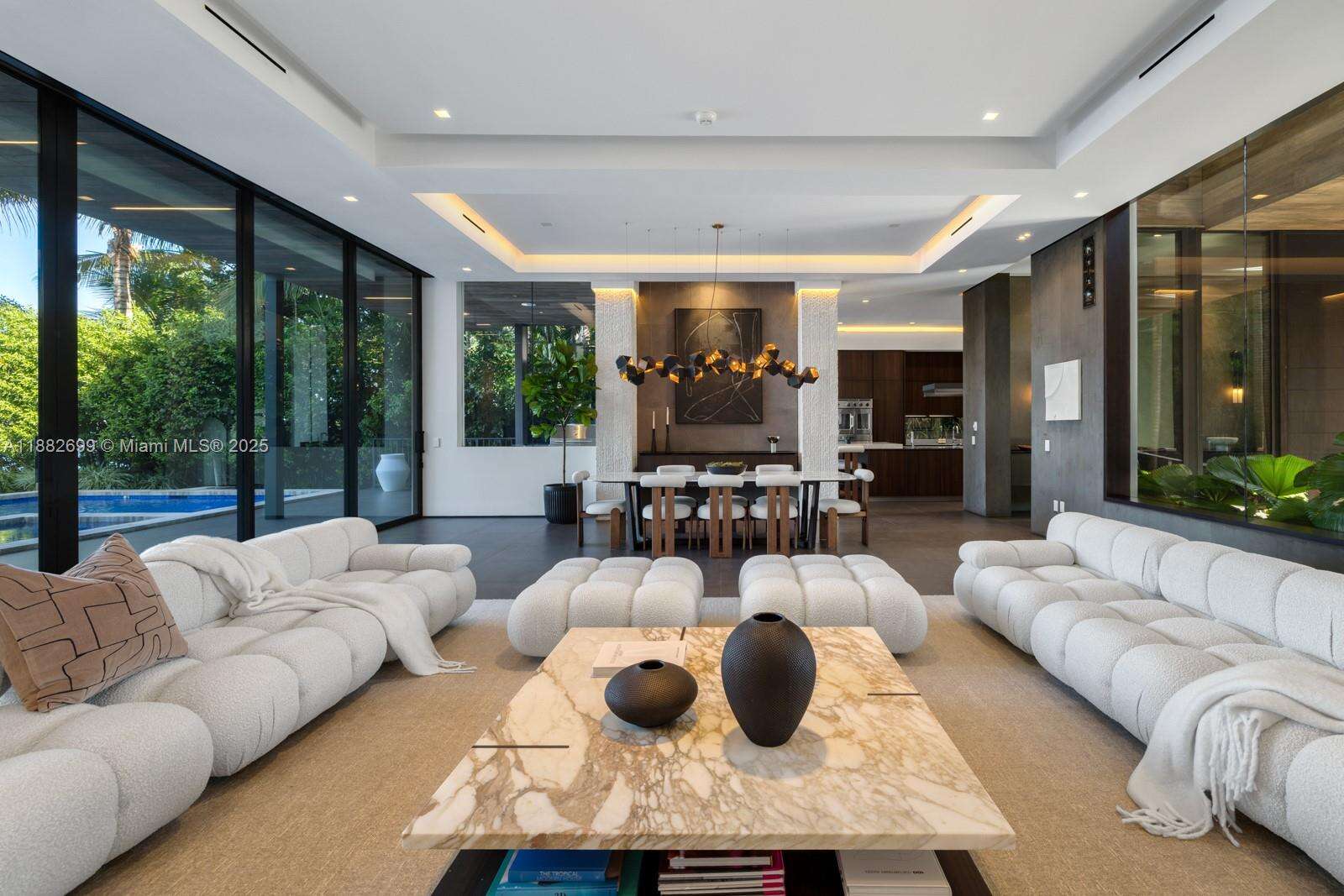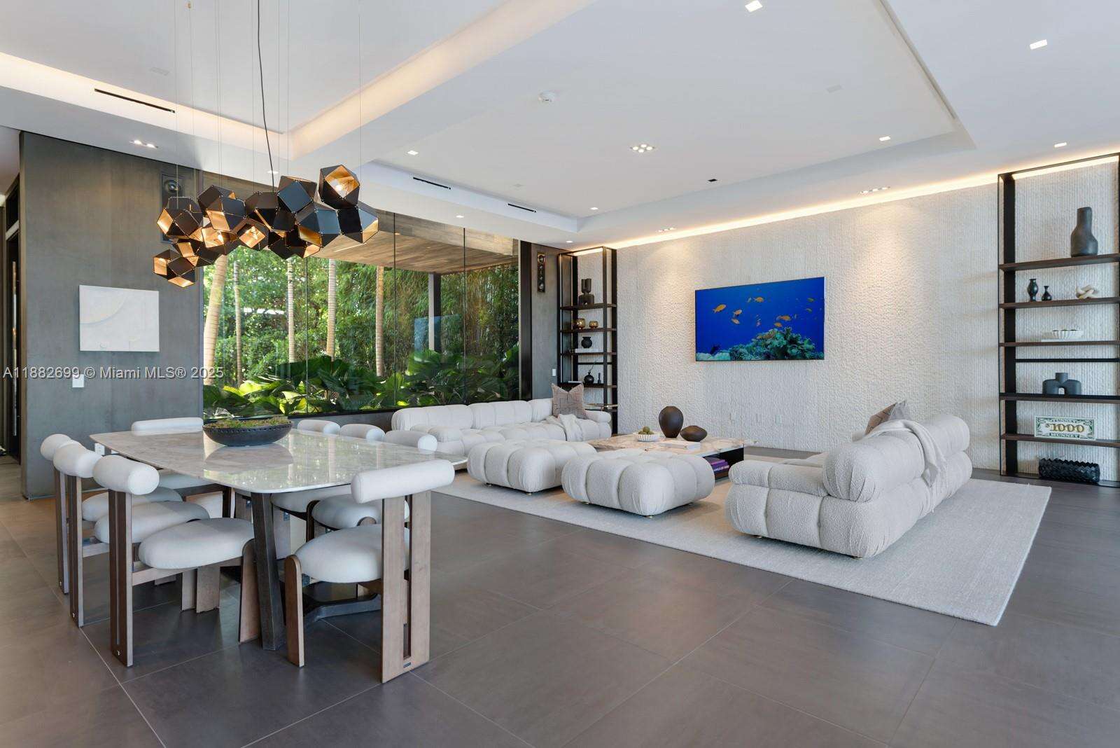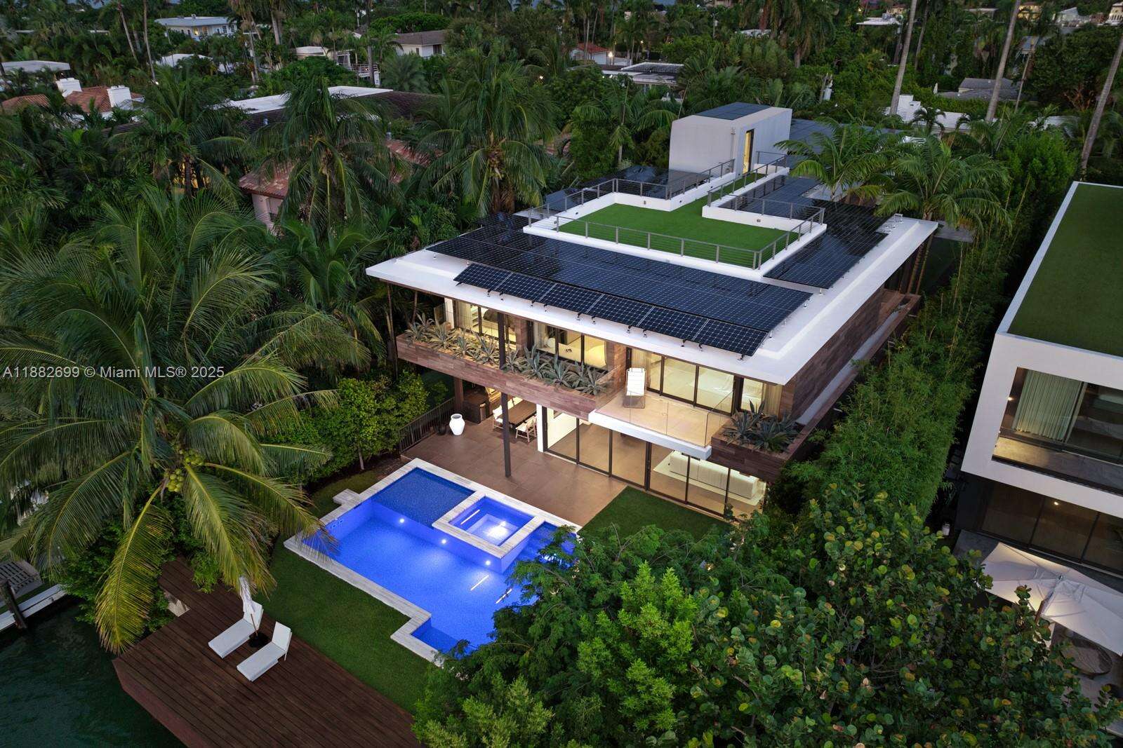 Waterfront luxury in this low impact Modern, meticulously designed by Max Strang, nestled in the prestigious Venetian Islands. This architectural combines sophisticated design with cutting-edge technology and unparalleled waterfront living. Featuring open-concept living areas, a sleek gourmet kitchen with custom Italian walnut cabinetry, and expansive floor-to-ceiling glass throughout. Offering 4 en-suite bedrooms, theater, elevator, Crestron smart system & Tesla solar integration. The primary suite includes private lounge, spa en-suite with Italian travertine and skyline terrace. Outdoors, enjoy a mosaic-tiled pool and spa, summer kitchen, rooftop terrace, private dock and 60’ of pristine Biscayne Bay access, presenting panoramic sunset views.