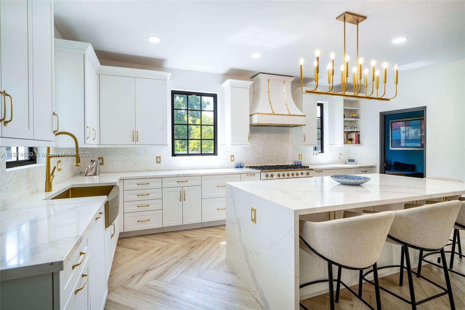 Exquisitely & completely renovated with no expense spared, this historically significant 1934 Mediterranean Revival by Carlos Schoppel offers gorgeous interior design & tasteful luxury on an oversized lot. The home’s elegant interiors feature soaring wood-beamed ceilings & grand entertaining spaces filled with natural light. Chef’s kitchen includes top-tier appliances, marble waterfall island, copper sink, and butler’s pantry with additional appliances. The first floor offers a sophisticated foyer entry, formal living & dining rooms, media room, & bedroom; upstairs holds 3 spacious bedrooms. Includes guest house, 2-car garage, impact windows & doors, & new roof. Expansion plans for a 1,000 SF primary suite and pool transfer to buyer. A rare blend of history and luxury in prime Miami Beach.