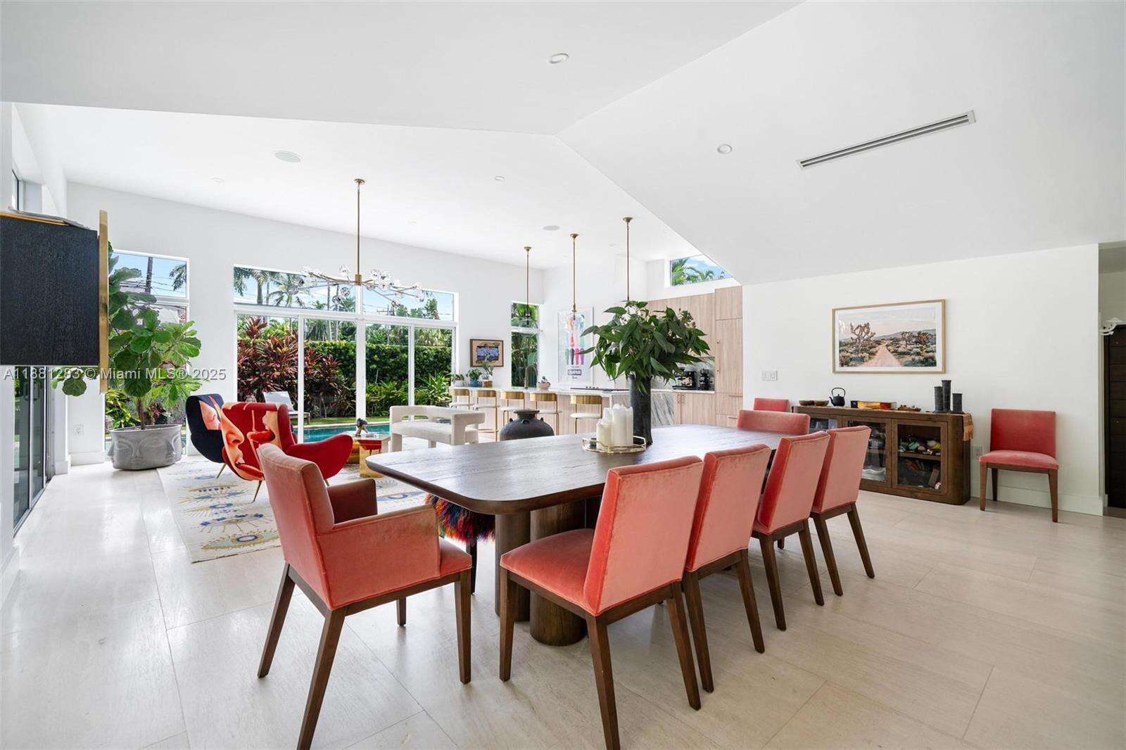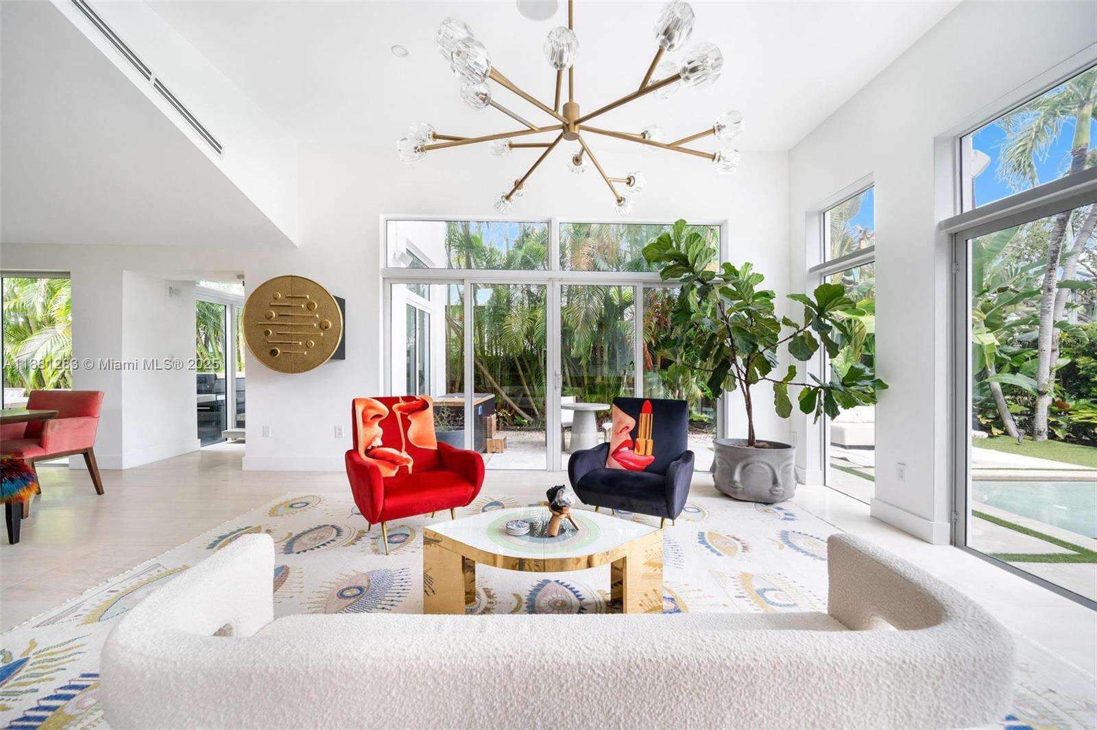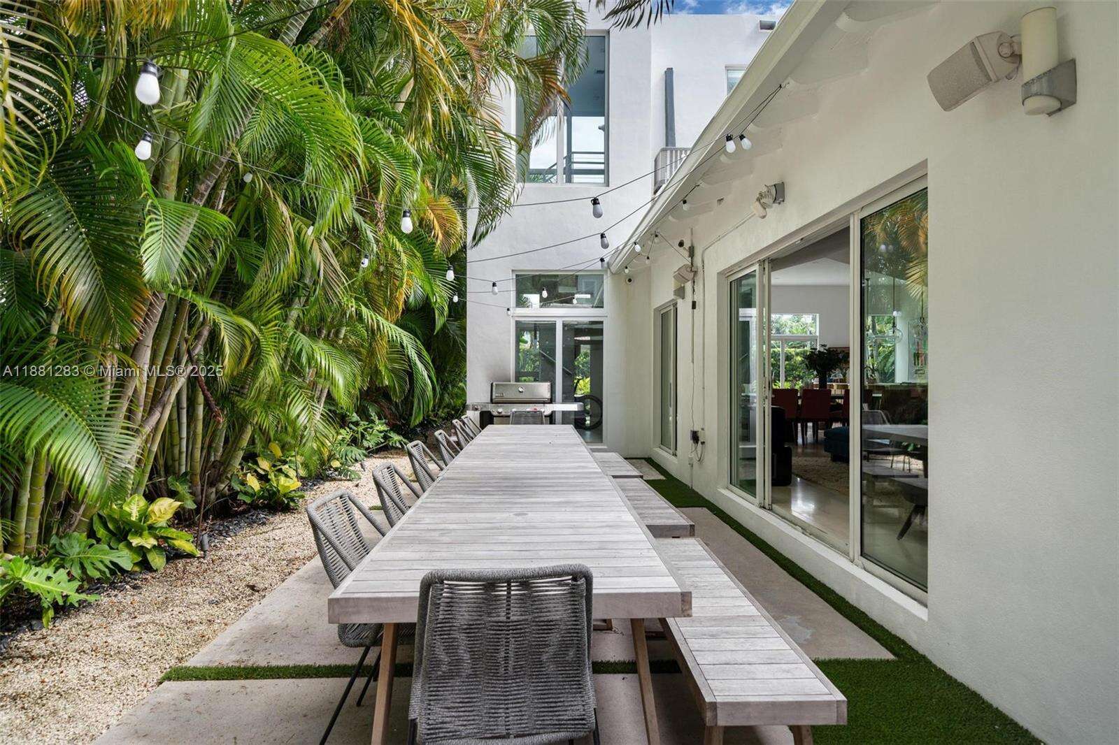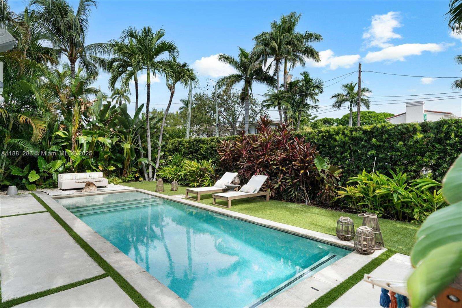 This 2-story mid-century modern home blends timeless design with contemporary upgrades on a private corner lot. A gated driveway offers secure parking for two, leading into expansive open living, dining, and kitchen spaces. All four bedrooms feature ensuite bathrooms, with master suites conveniently located upstairs and down. Modern comforts include electronic security, built-in surround sound, a whole-house generator, water filtration system, and three new A/C units. Outside, a saltwater pool and lush landscaping create a private retreat designed for today’s lifestyle.