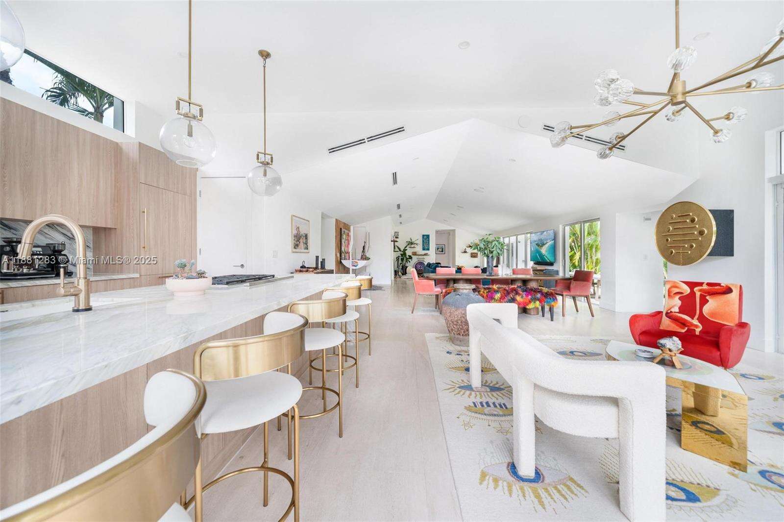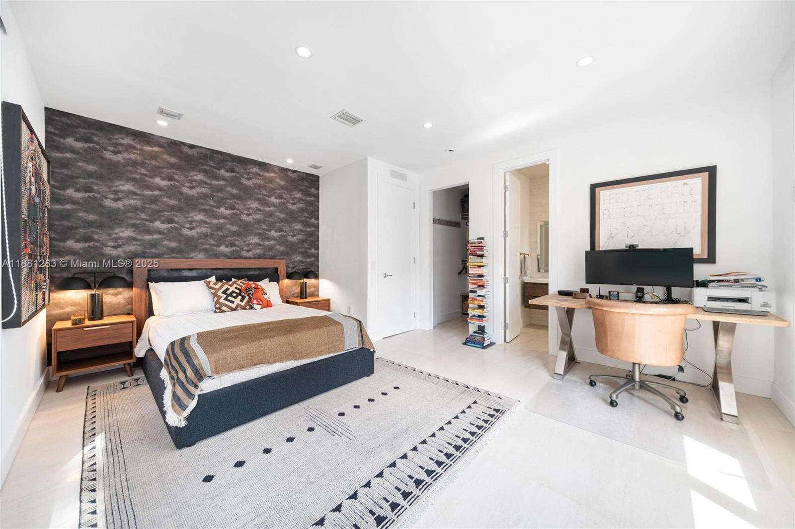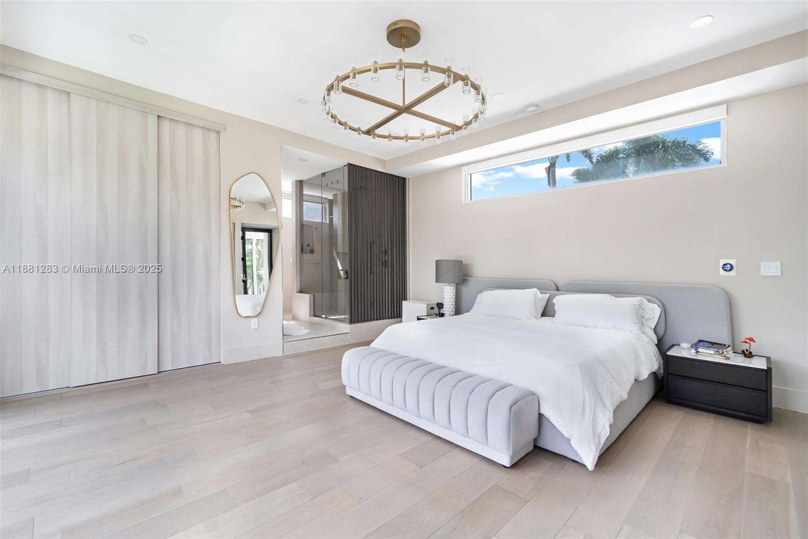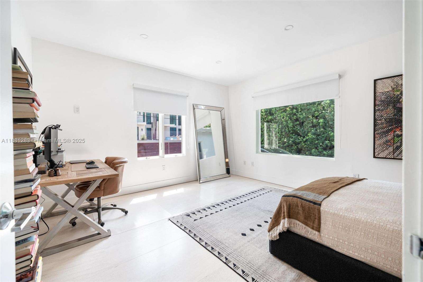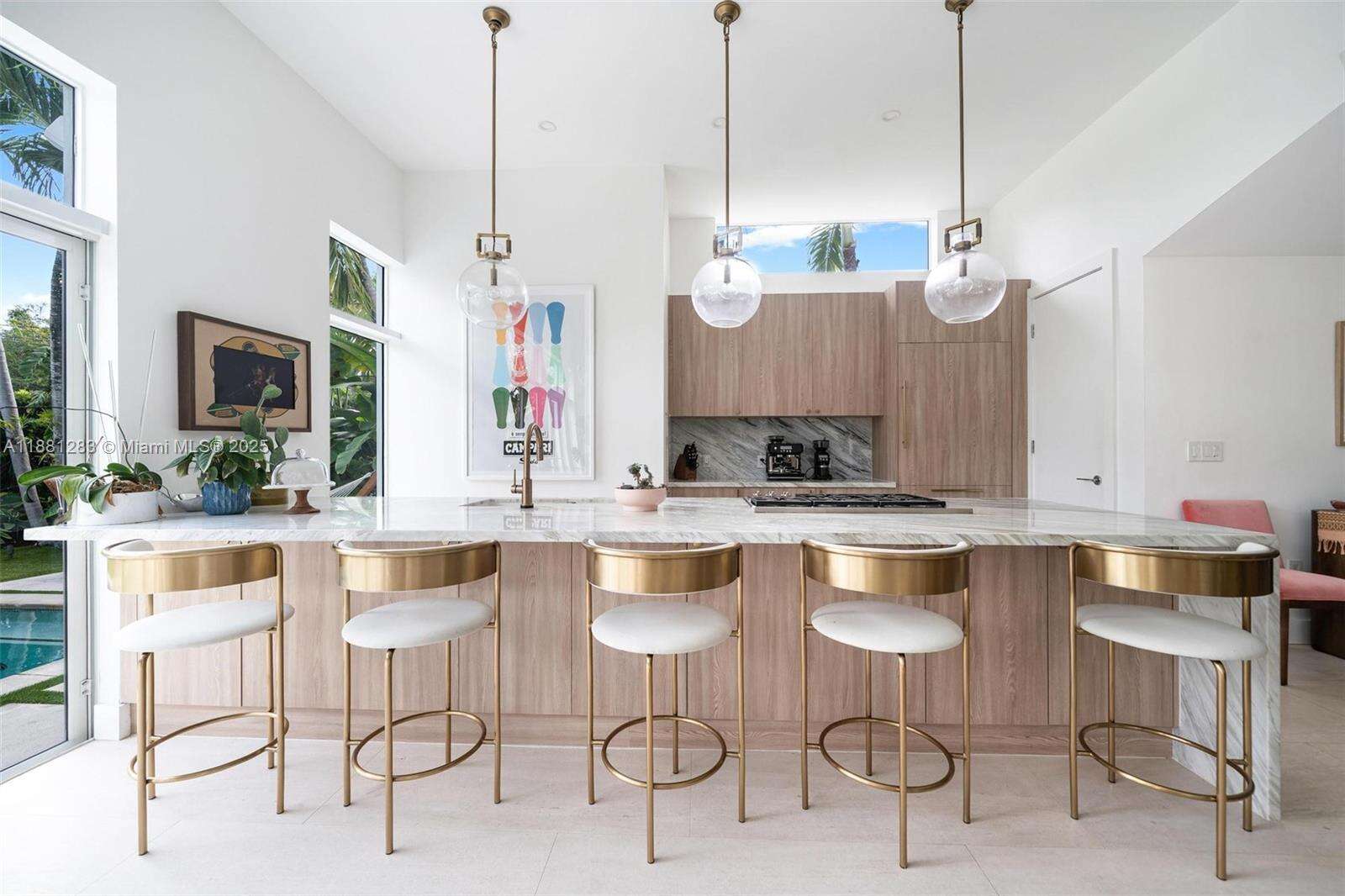 This 2-story mid-century modern home blends timeless design with contemporary upgrades on a private corner lot. A gated driveway offers secure parking for two, leading into expansive open living, dining, and kitchen spaces. All four bedrooms feature ensuite bathrooms, with master suites conveniently located upstairs and down. Modern comforts include electronic security, built-in surround sound, a whole-house generator, water filtration system, and three new A/C units. Outside, a saltwater pool and lush landscaping create a private retreat designed for today’s lifestyle.
