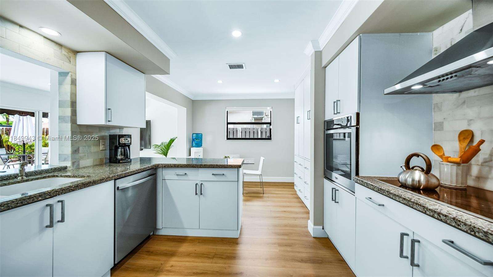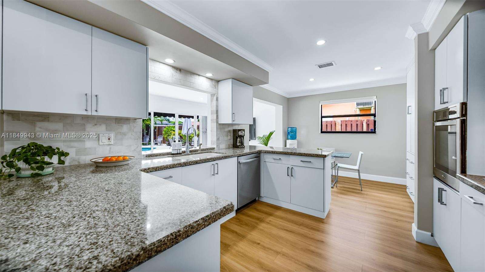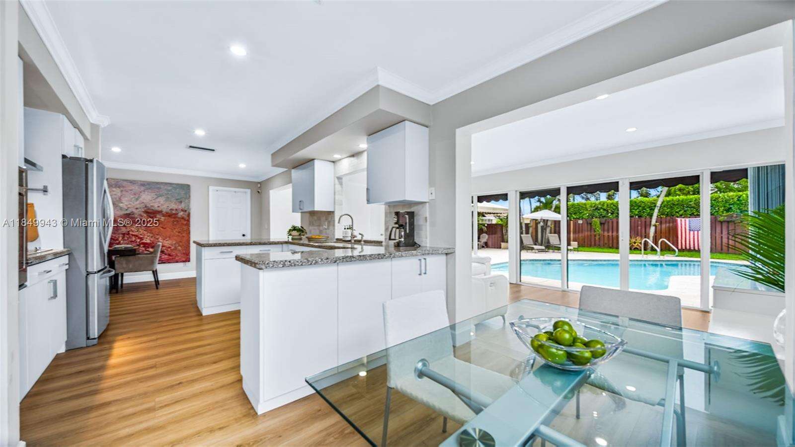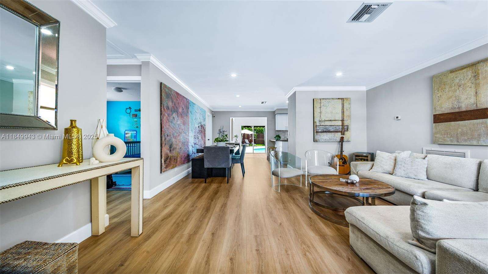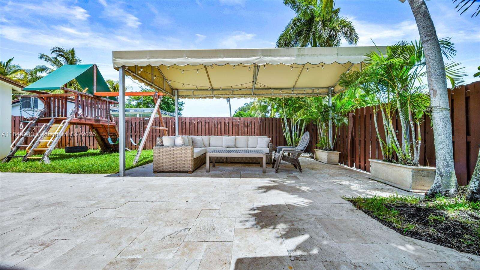 This 3-bed, 2-bath home in Hollywood Hills brings the Florida lifestyle to life. Step inside to an open, easy-flow layout with an updated kitchen and clean finishes—but the real magic is out back. Sliding doors open to a private tropical retreat with a sparkling pool and two shaded seating areas—one under a retractable awning, the other beneath a vinyl-topped frame—perfect for outdoor dining, relaxing, or weekend get-togethers. The enclosed garage adds flexibility—use it as an office, gym, or convert it back. Located near parks, top schools, shopping, major highways, and places of worship. Stylish, functional, and ready to welcome you home.