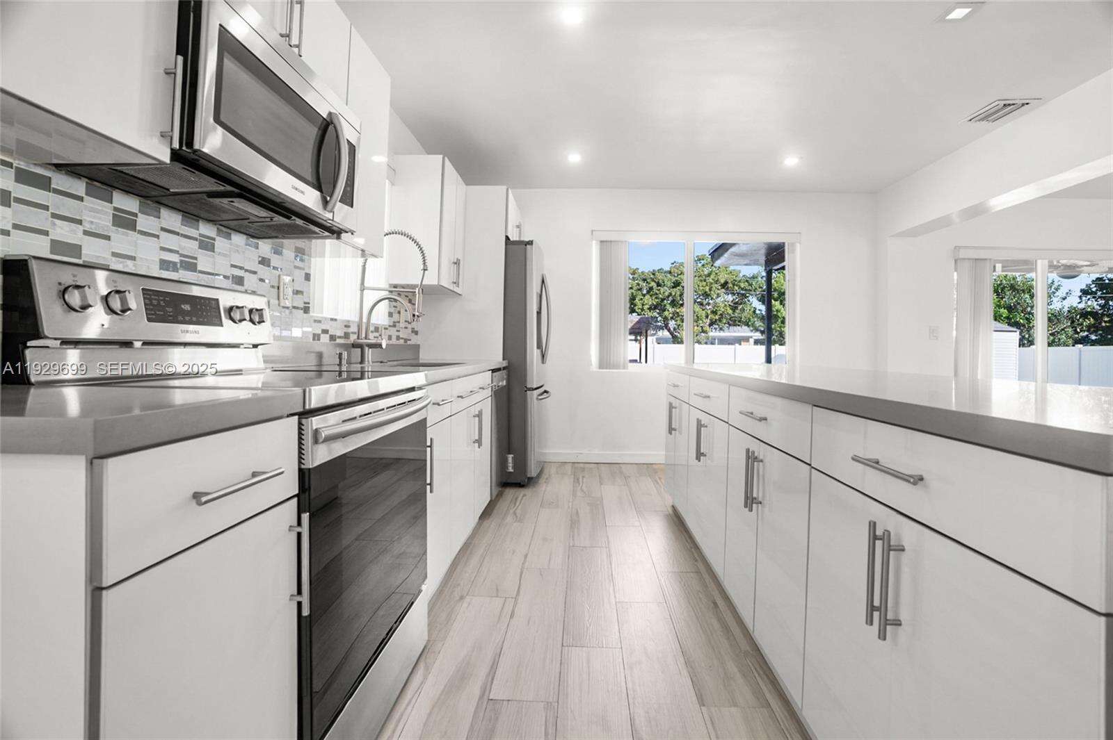 Amazing 3 Bed, 2 Bath Single Family Home in the heart of Hollywood Hills. This home has been updated top to bottom, from a brand-new roof, impact windows and doors, ceramic tile throughout, updated kitchen with large island, interior freshly painted and more! The Garage was converted to an office space with closet and a gym or playroom area with interior and exterior entry. AC is 2021 and it has a tankless water heater. The home also has large fenced in backyard with a pool, large shed for storage and rear gate access to park your boat or RV. Centrally located near major highways and less than 10 min drive from the Hard Rock Guitar Hotel. Don't miss out, request your appoint now!