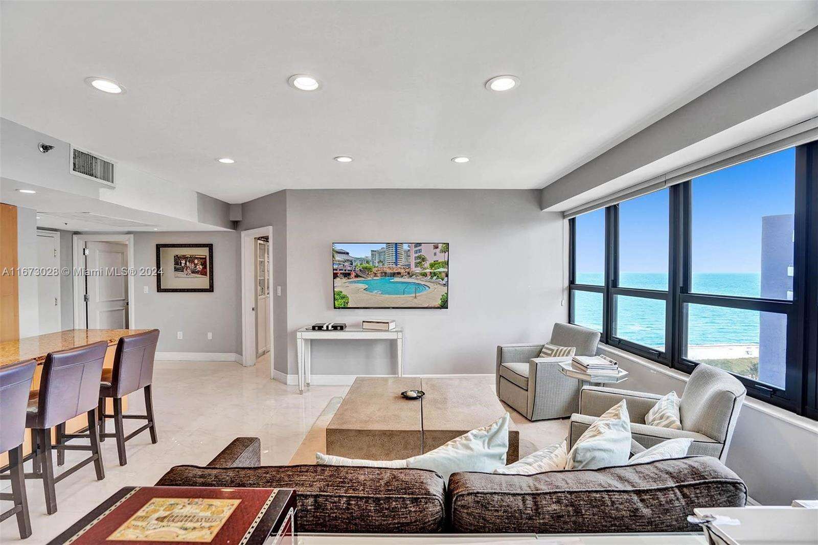 Step into this bright 3BD/3BA furnished penthouse with a large balcony offering stunning ocean, city, and bay views. At 1,860 SF (per owner), it boasts a spacious living/dining area and a granite kitchen. Natural light fills the unit through oversized impact windows/doors. Includes washer/dryer. Enjoy valet, concierge, maid service, gym, spa, restaurant, café, 2 pools, poolside bar, and beach service. Maintenance covers electricity, AC, Wi-Fi, hot water, and cable. Click the virtual tour link for a video.