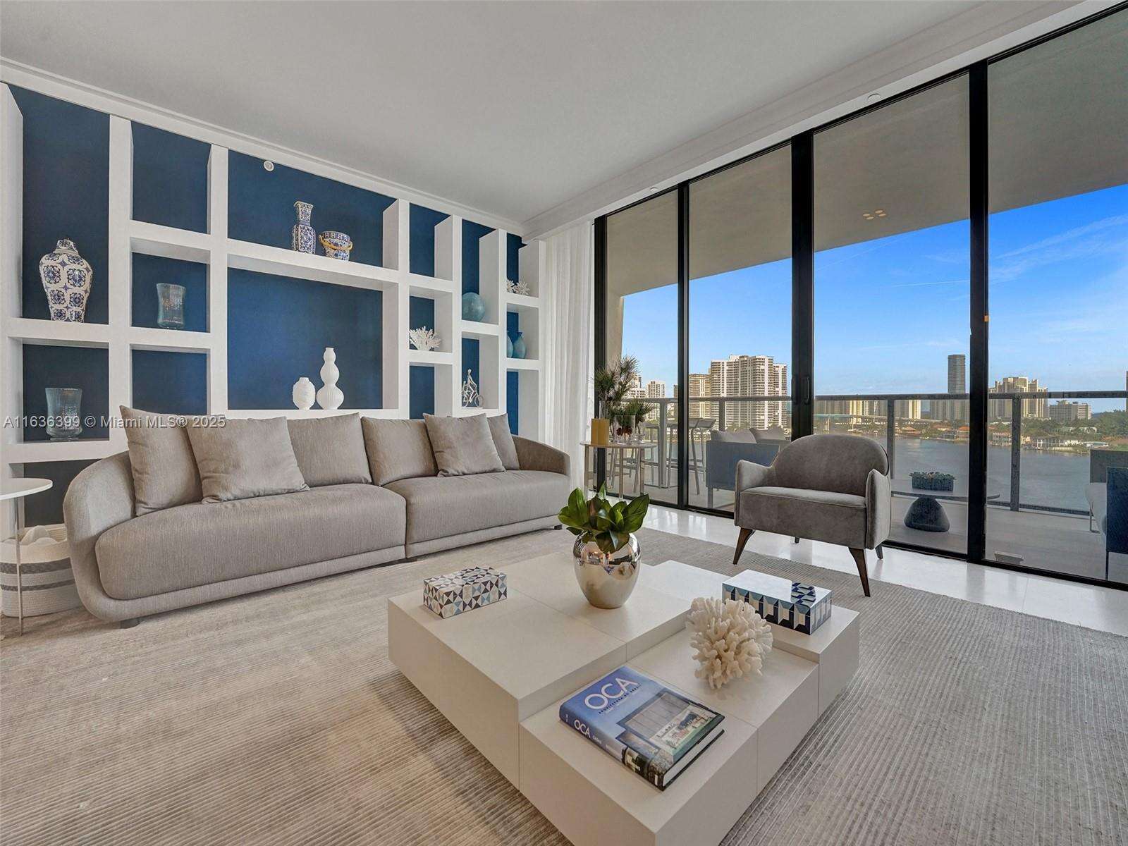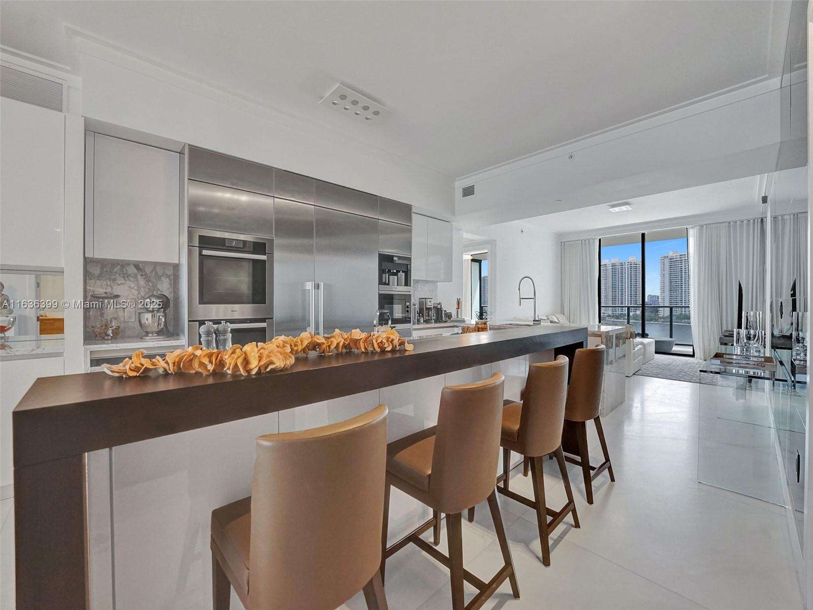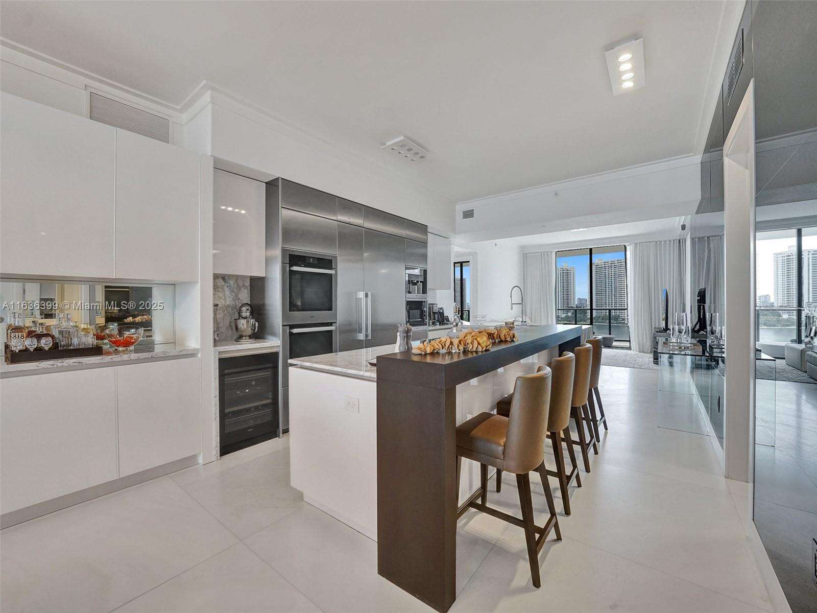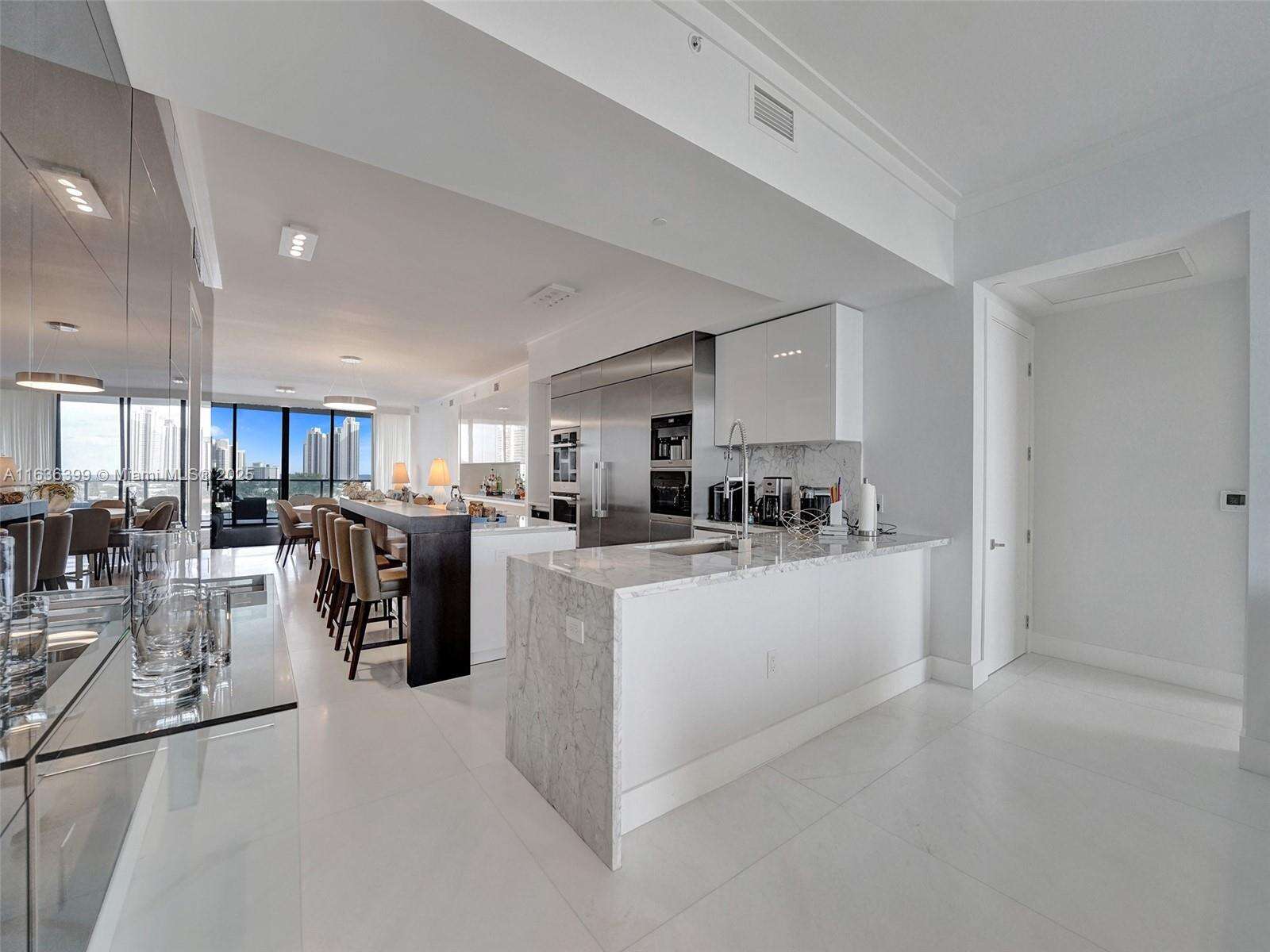 Beautiful, fully furnished, ready-to-move-in unit. Live on a private island and enjoy the breathtaking ocean views, Intracoastal, and city skyline on Prive's exclusive 8-acre Island. Prive offers world-class services, top-notch security, and excellent amenities, which include an impressive and modern fitness center, two swimming pools and pool bar service, wine and cigar lounge, 24-hour concierge, valet service, tennis court, full-service marina, and much more. This unit features a flow-through layout with three bedrooms/4.5 baths and gorgeous views of the Intracoastal and the ocean, floor-to-ceiling glass windows, and two spacious terraces with a summer kitchen in one of them. The unit also includes access to a Private elevator, marble floor, modern European kitchen, and walking closets.