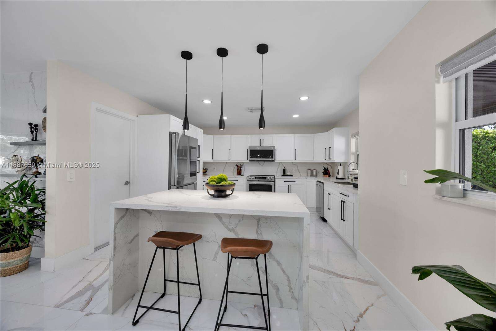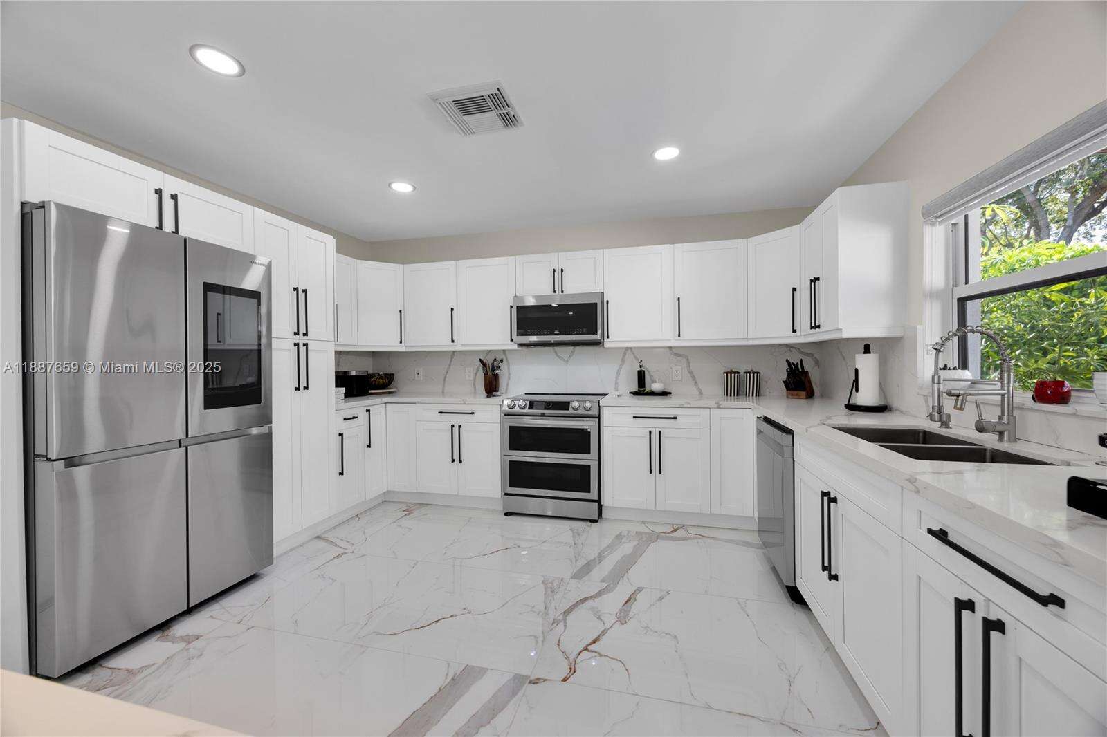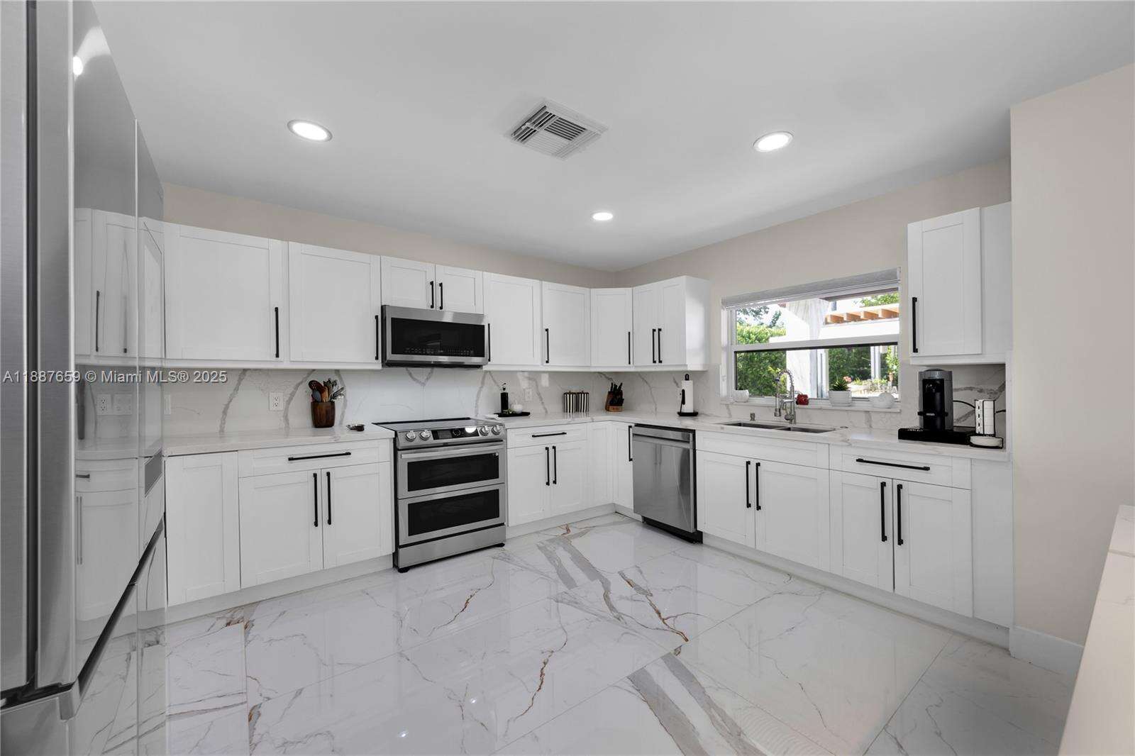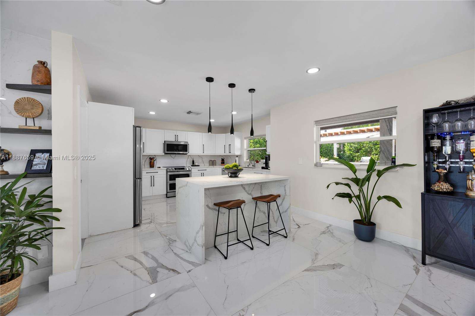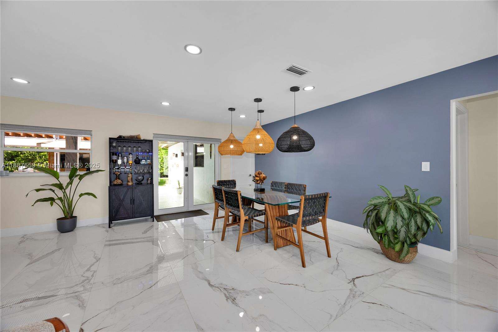 Upgraded 3-bed, 3.5-bath home in Hollywood Hills with a split open floor plan, ideal for daily living and entertaining. Features a bright living room, formal dining, and updated kitchen with new appliances. The private backyard boasts artificial turf, a 45-ft pergola, ambient lighting, full outdoor kitchen with dual grills, fridge, ice maker, sink, and beer keg. Enjoy a saltwater heated pool with jets, mosquito misting system, and surround sound. New roof and 3.5-ton AC (2020), expanded driveway. Quiet neighborhood near good schools, Memorial Regional Hospital, Downtown Hollywood, airport, and beaches.