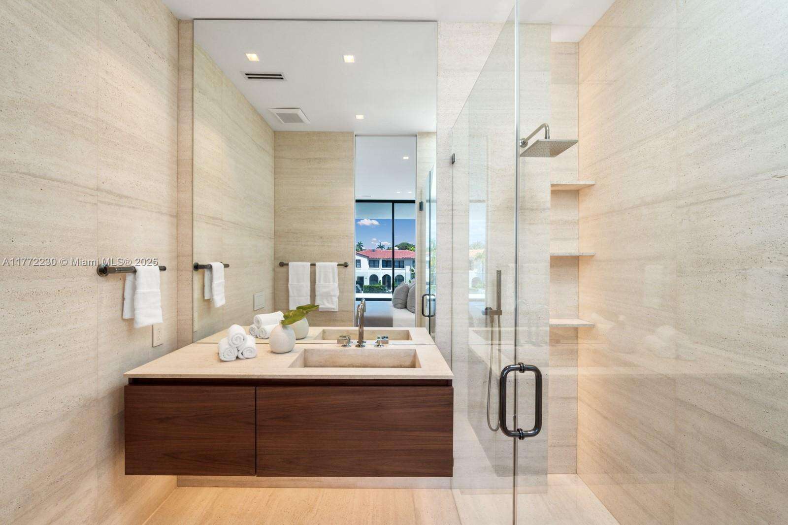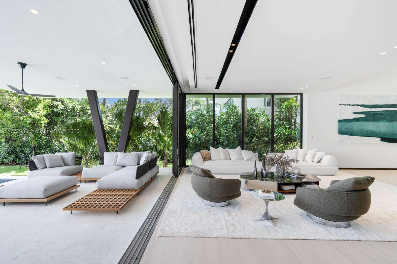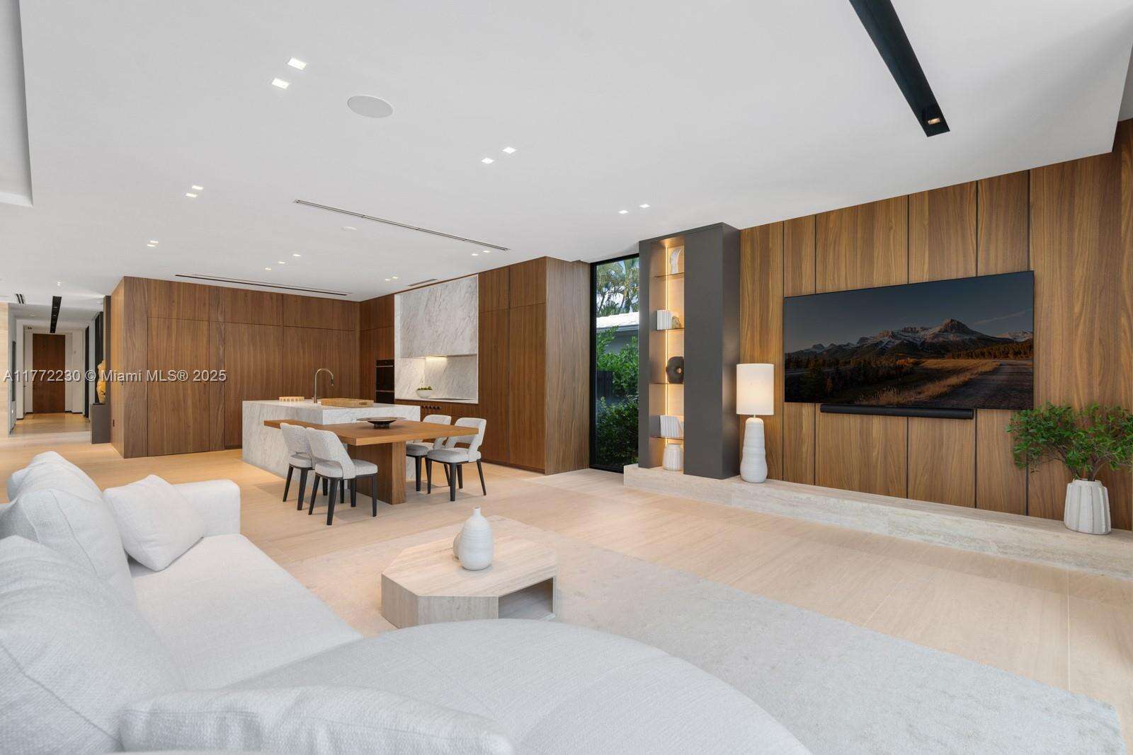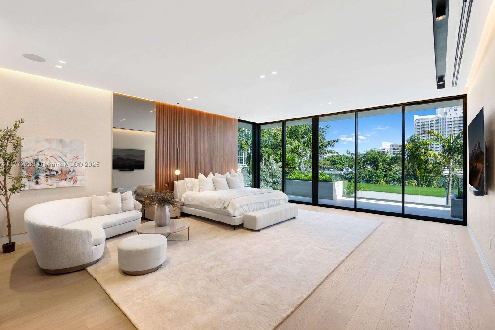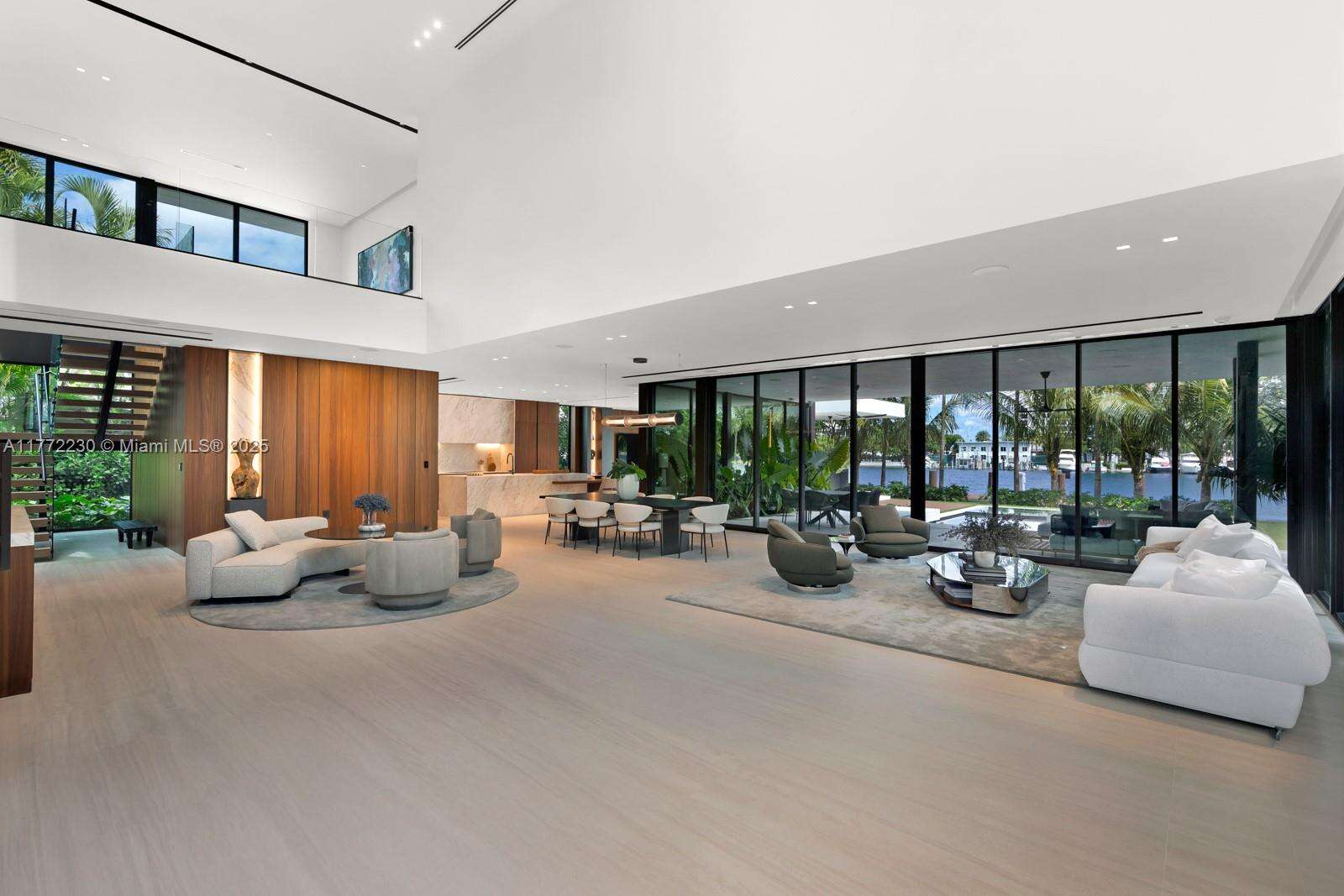 Masterfully designed by SDH_Studio, developed by Groupe Dayan & built by Treo Construction in 2025, this architectural masterpiece spans 7,000 sqft, with 7 beds and 7+ baths, of luxury. Minotti furnishings define its contemporary elegance, where sculpted architecture plays with light and shadow. Soaring ceilings, a striking floating staircase, and voluminous spaces create grandeur. A floor-to-ceiling wine cellar with integrated bar reinforces the home's scale. Stone accents elevate the interiors, notably in the kitchen, where a stunning island is paired with top-tier appliances. Custom millwork, walnut paneling, and bespoke lighting add warmth and refinement. Outside awaits a waterfront oasis with pool, outdoor kitchen, and 78 ft of waterfront with a new private dock.