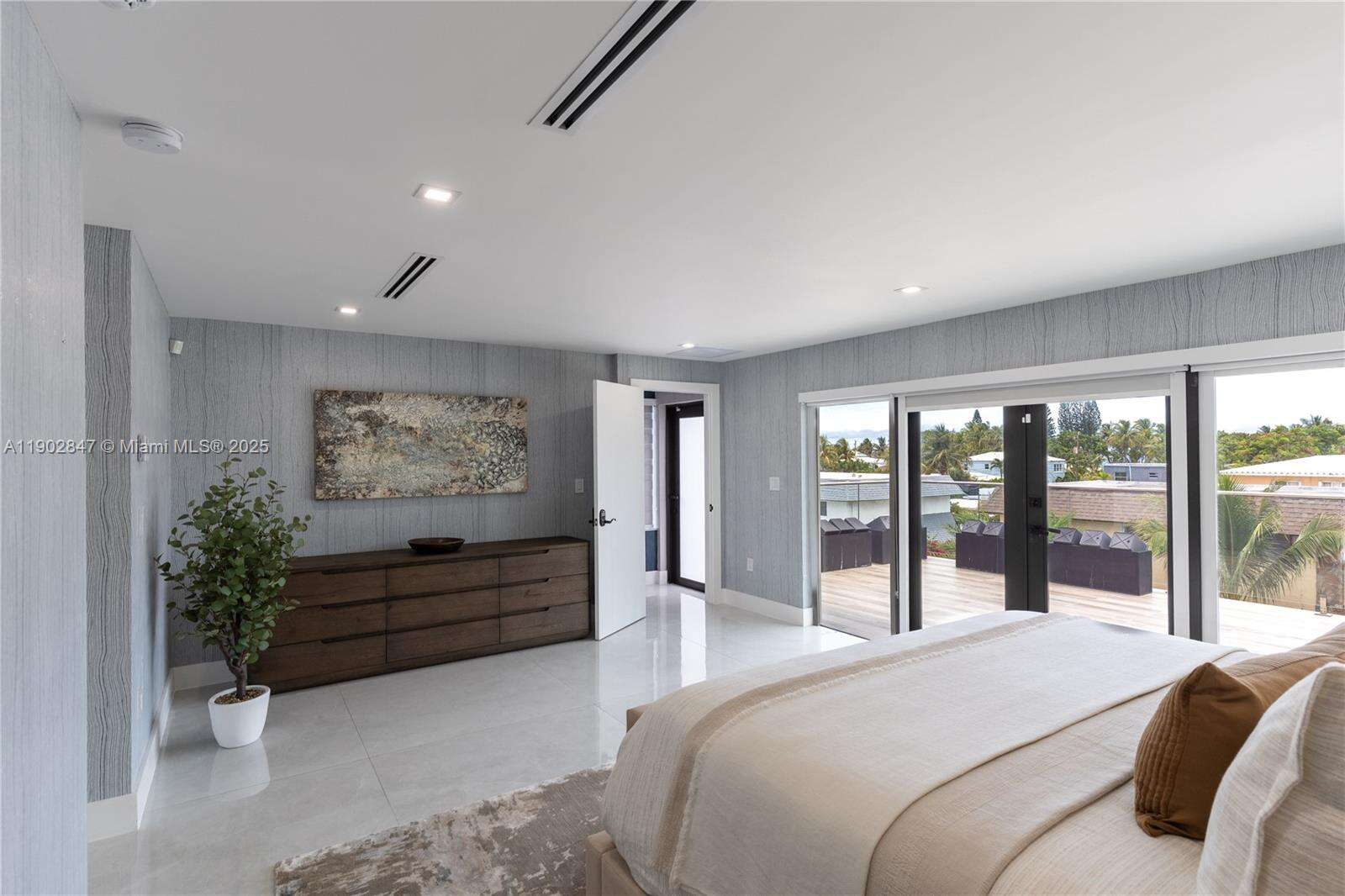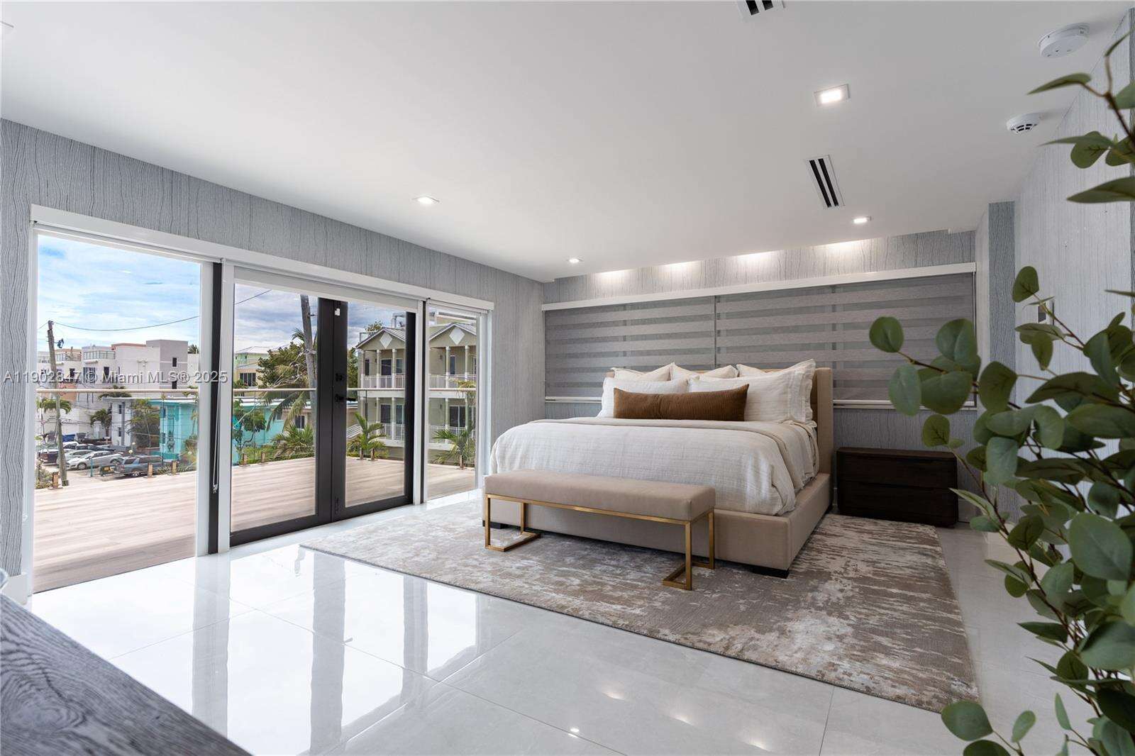 A unique opportunity to own a fully furnished luxury coastal residence just steps from the beach. This three-level contemporary home showcases Intracoastal and ocean views from the sky terrace and private balconies. Inside, four bedrooms, three-and-a-half baths, a versatile den/office, and an elevator offer sophisticated comfort. Curated interiors feature Restoration Hardware furnishings, rugs, art pieces, and an Edward Lentsch installation. A state-of-the-art Hoist gym and advanced tech—Samsung 8K, Sonos, high-speed mesh broadband, Ring, Arlo, and monitored security—enhance daily living. Outdoors, enjoy a summer kitchen, private pool, and serene lounge spaces. With no HOA and walkable beach access, this turn-key offering defines modern South Florida luxury.