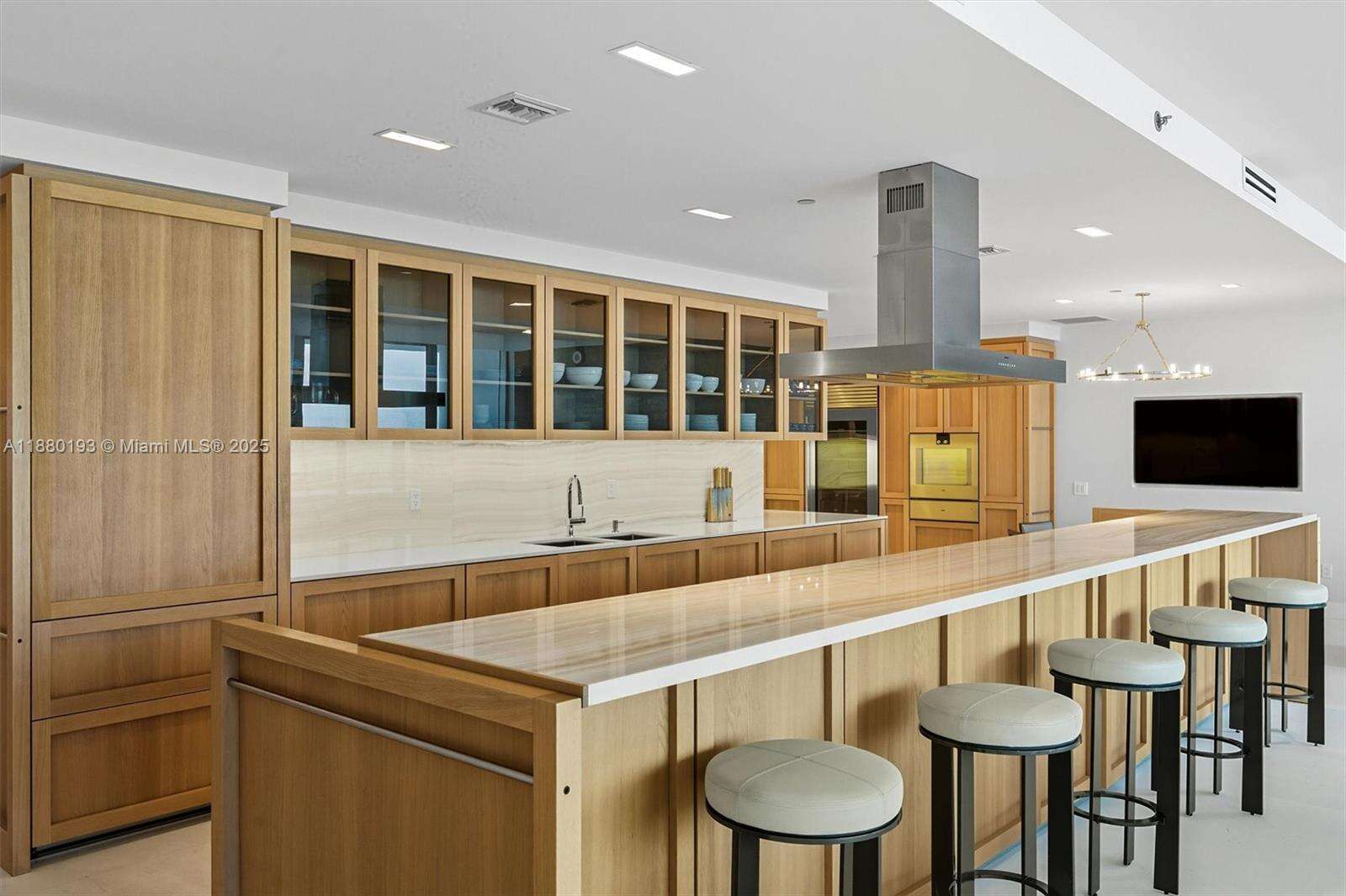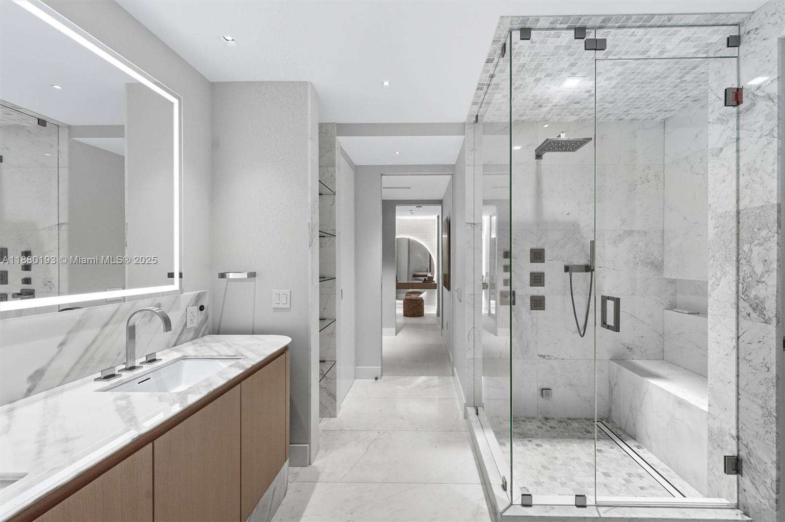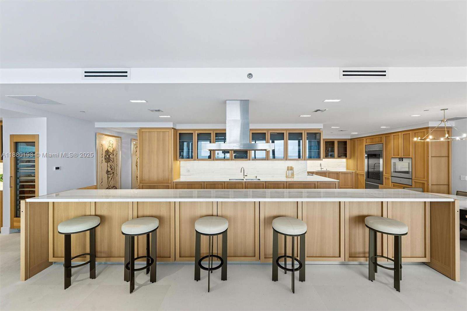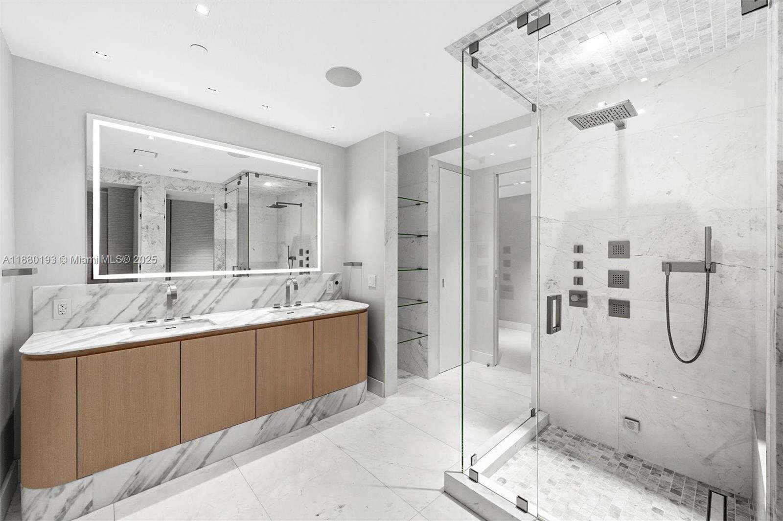 Another Collectible Property by the Jeff Miller Group! Located in the exclusive Bath Club - Miami Beach’s premier oceanfront enclave - Residence 1804/1805 has been seamlessly combined to offer 7,800 SF of thoughtfully curated living space. This 6-bed residence, each with ensuite baths, also features a private movie theater + home office, blending the privacy of a mansion in the sky with five-star resort amenities. Meticulously designed by Miriam Moore, the home boasts a Italian kitchen by GD Cucine, Gaggenau appliances, Onyx countertops, Crema Bianco limestone flooring. Spa-like bathrooms impress with hand-selected marbles, natural stones, oak cabinetry, and Dornbracht fixtures. Additional highlights include bespoke Italian doors, designer wall coverings, and custom built-ins throughout.