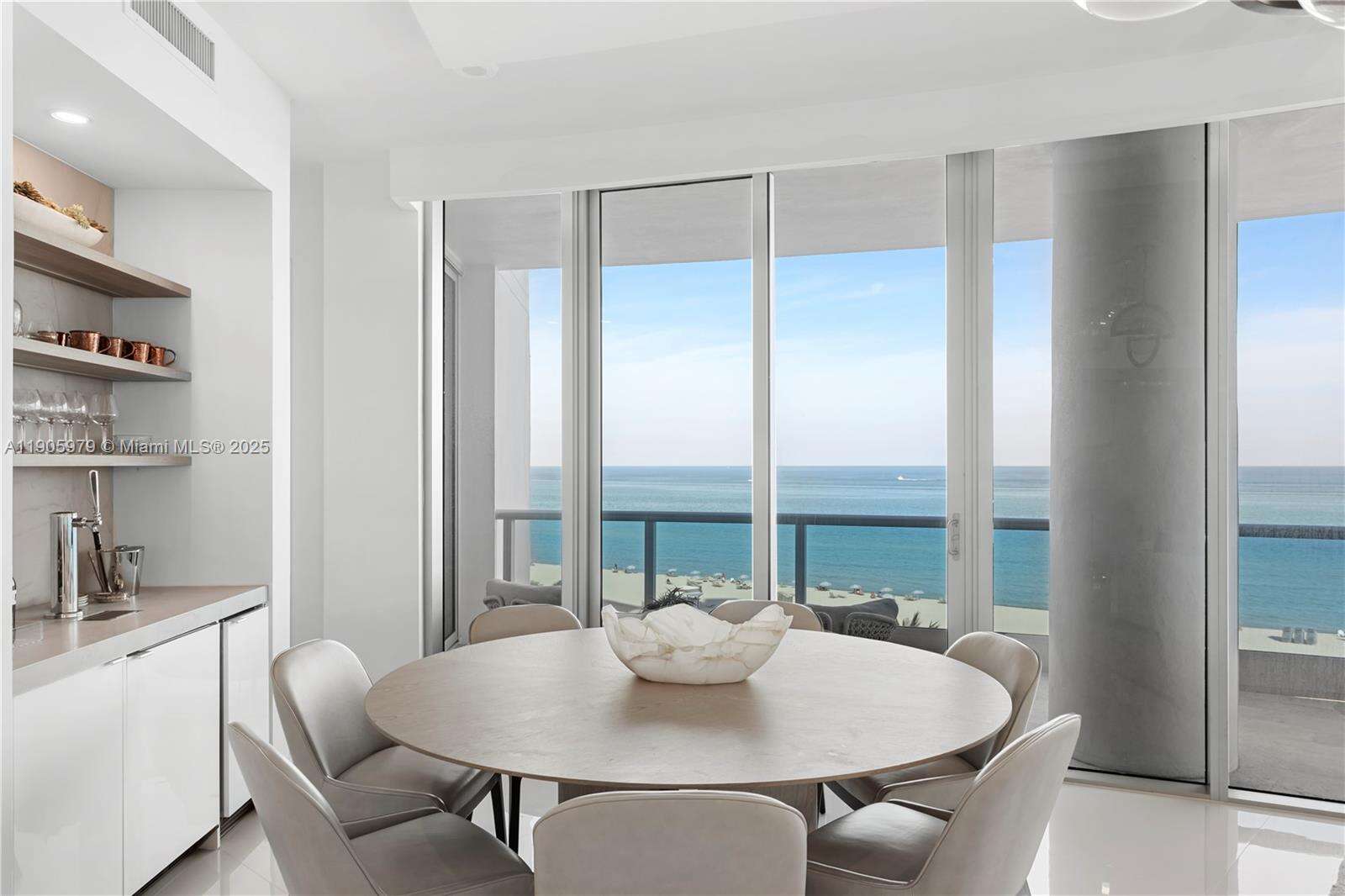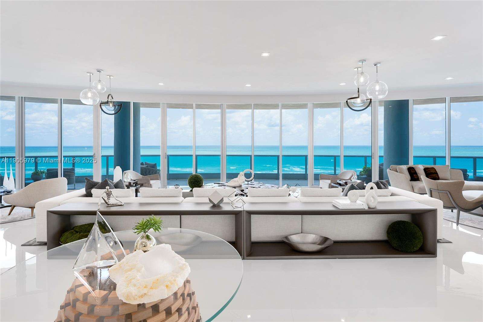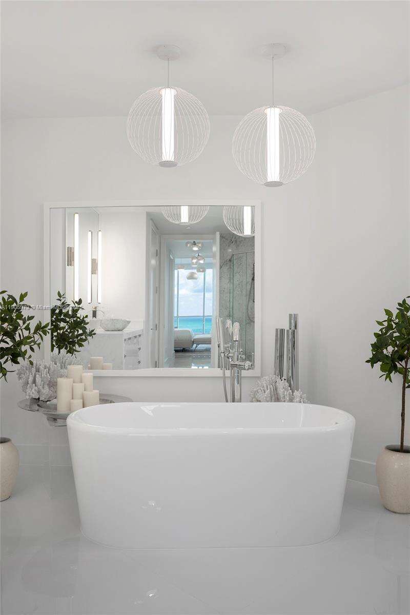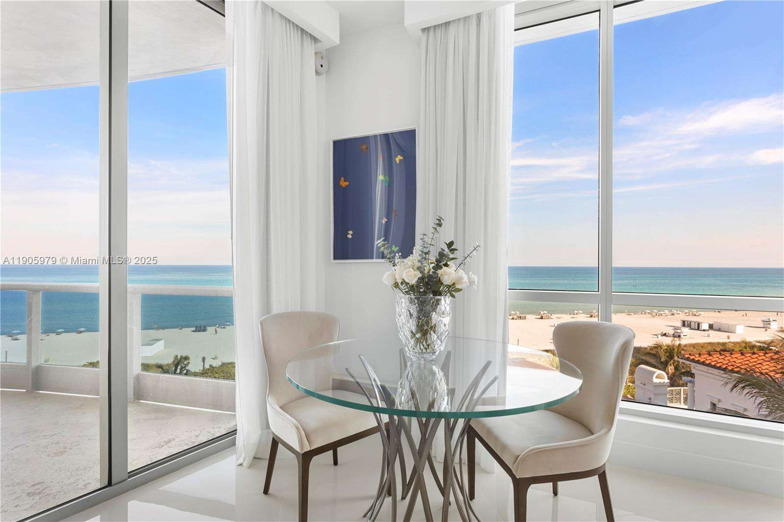 This contemporary oceanfront residence at the exclusive Bath Club defines modern coastal sophistication. Designed with clean lines and curated finishes, it’s offered fully furnished with top-tier electronics and designer pieces. Every detail exudes effortless style from marble surfaces throughout and porcelain flooring to custom ceramics and luxe textiles. Expansive ocean views fill every room, enhanced by integrated smart technology, surround sound, and ambient lighting. The showstopping marble kitchen features a sleek waterfall island, while the oceanfront primary suite offers a serene terrace, custom closets, and spa-like elegance. Residents enjoy five-star amenities including a private beach, full-service pool and cabanas, luxury spa, tennis courts, fitness center, and 24hr concierge.