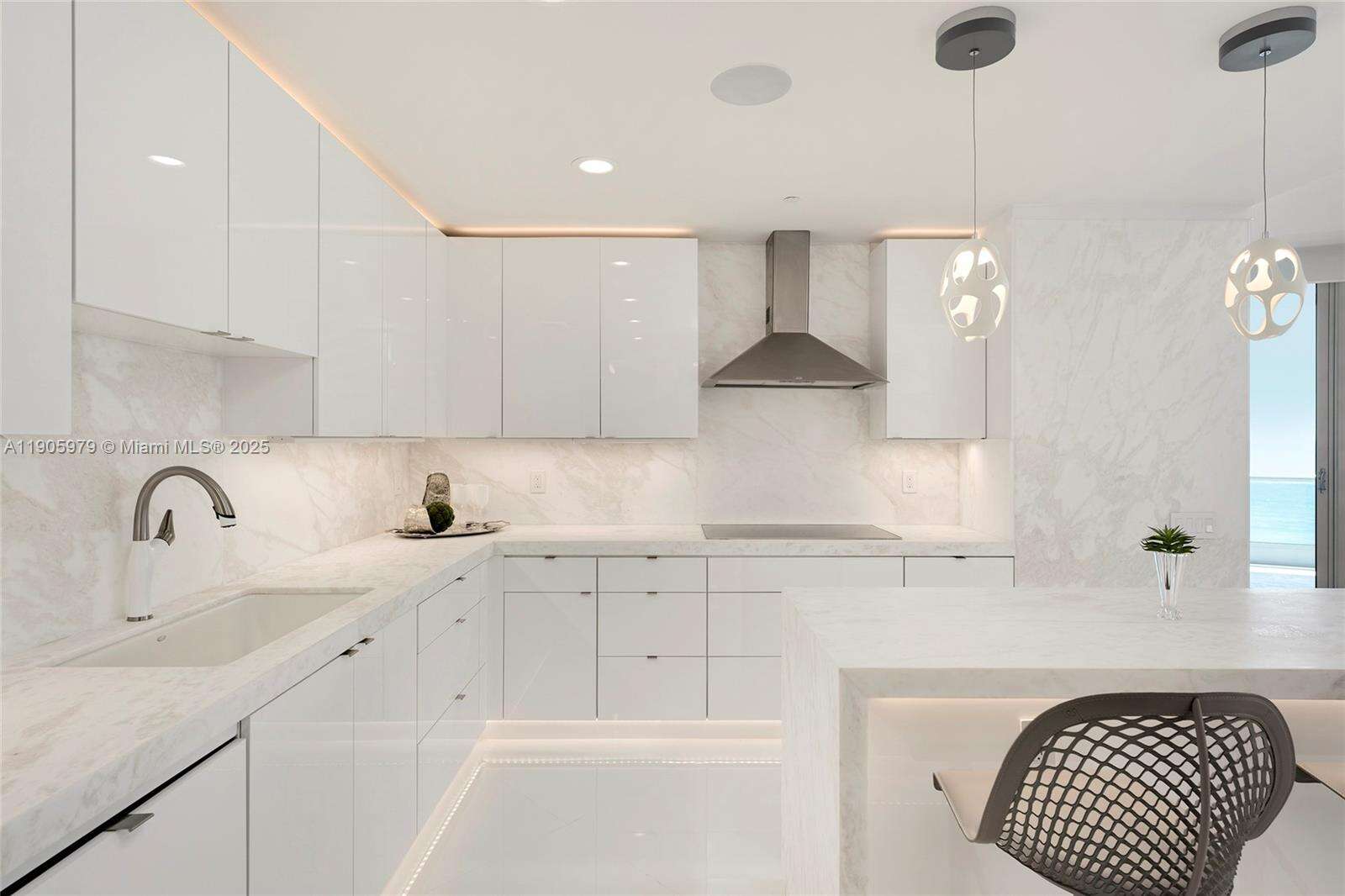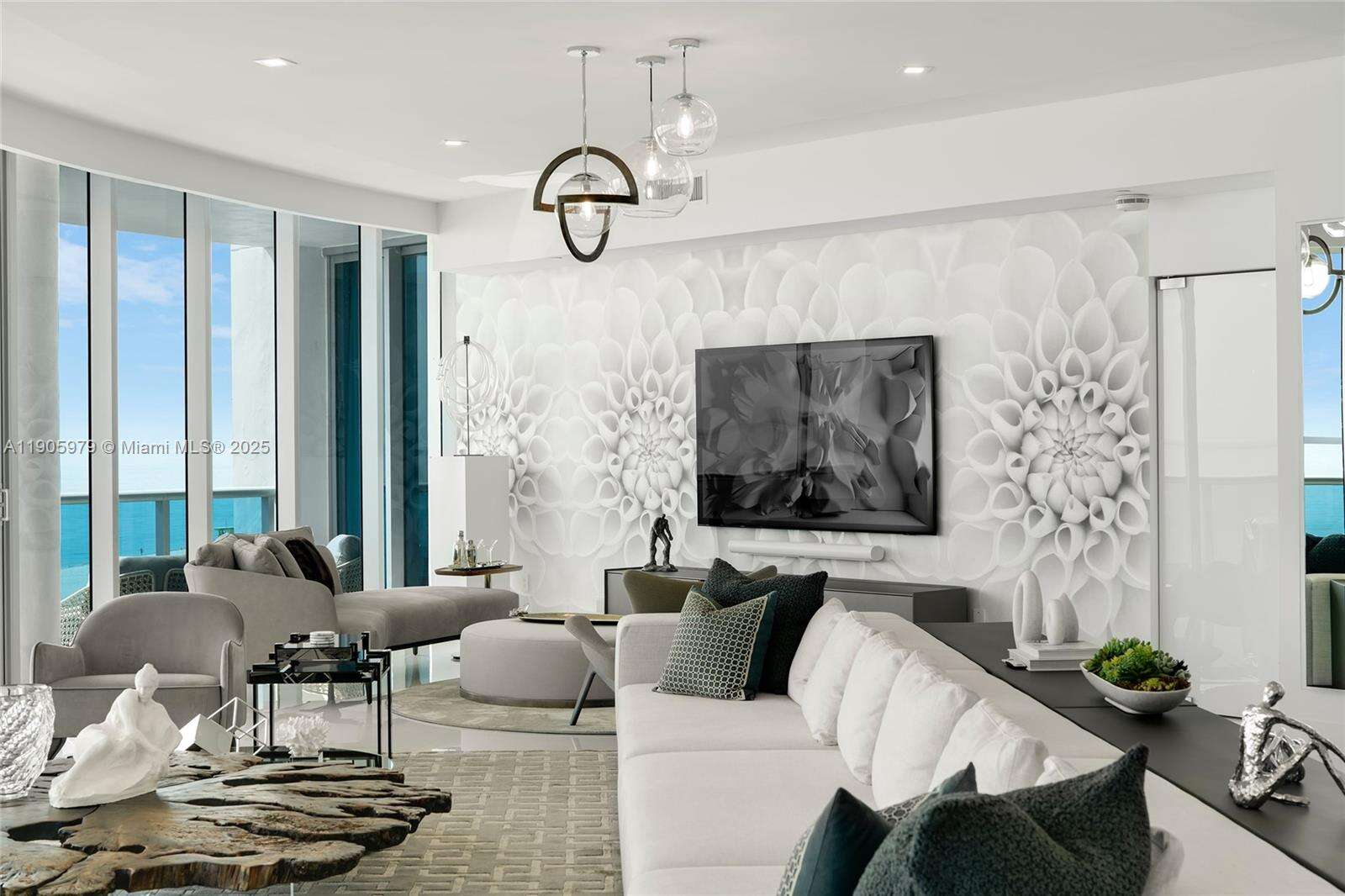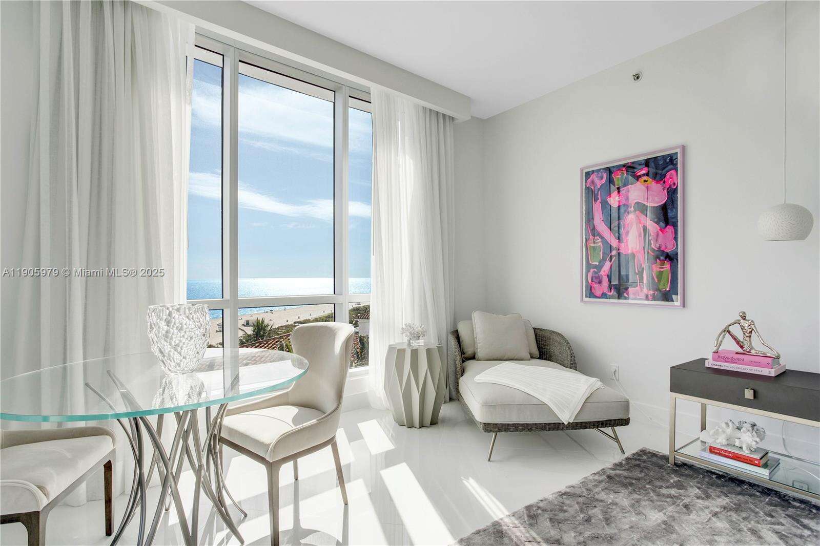 This contemporary oceanfront residence at the exclusive Bath Club defines modern coastal sophistication. Designed with clean lines and curated finishes, it’s offered fully furnished with top-tier electronics and designer pieces. Every detail exudes effortless style from marble surfaces throughout and porcelain flooring to custom ceramics and luxe textiles. Expansive ocean views fill every room, enhanced by integrated smart technology, surround sound, and ambient lighting. The showstopping marble kitchen features a sleek waterfall island, while the oceanfront primary suite offers a serene terrace, custom closets, and spa-like elegance. Residents enjoy five-star amenities including a private beach, full-service pool and cabanas, luxury spa, tennis courts, fitness center, and 24hr concierge.