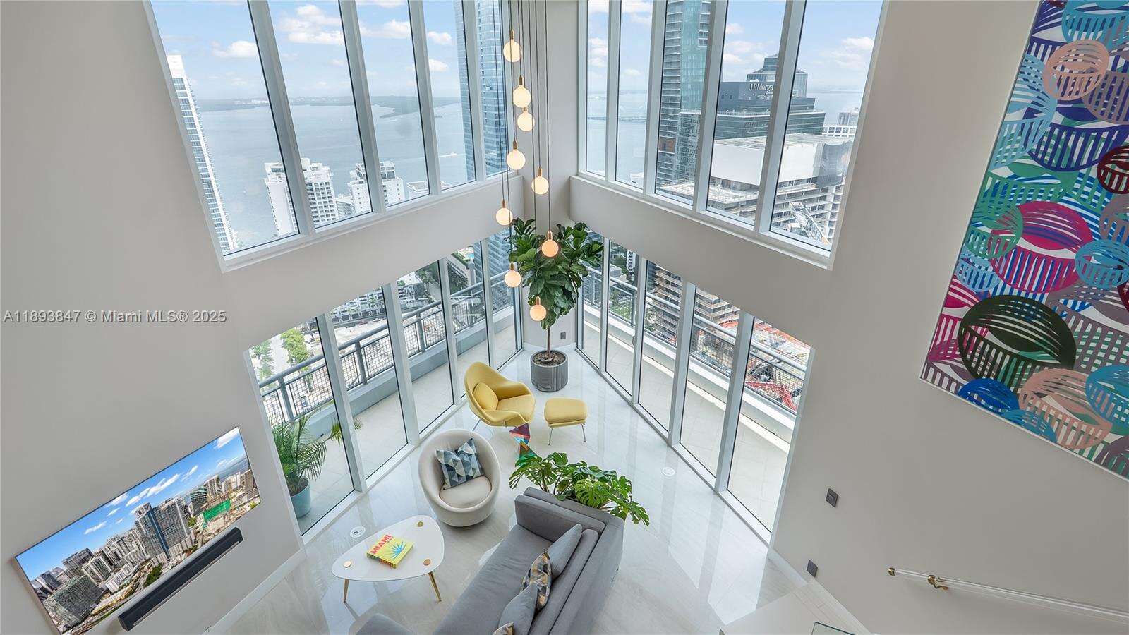 Experience sky-high living in this exquisitely remodeled 2-story duplex soaring above Brickell on the 42nd floor. Perched on the coveted SE corner, this sky villa delivers Bay, & South Brickell views through dramatic double-height glass walls that blur the boundary between indoors & sky. Reimagined with flawless modern design, it features a custom LED-lit floating staircase, designer textured walls & wallpaper, smart electronic shades, marble baths & marble-slab kitchen backsplash. Stunningly finished with upgraded automated lighting for a contemporary feel. Infinity Brickell offers resort-style living with pool, spa, fitness center, valet, 24/7 security, & exclusive rooftop access for floors 40+ — all steps from Brickell City Centre’s world-class dining, shopping, and entertainment.