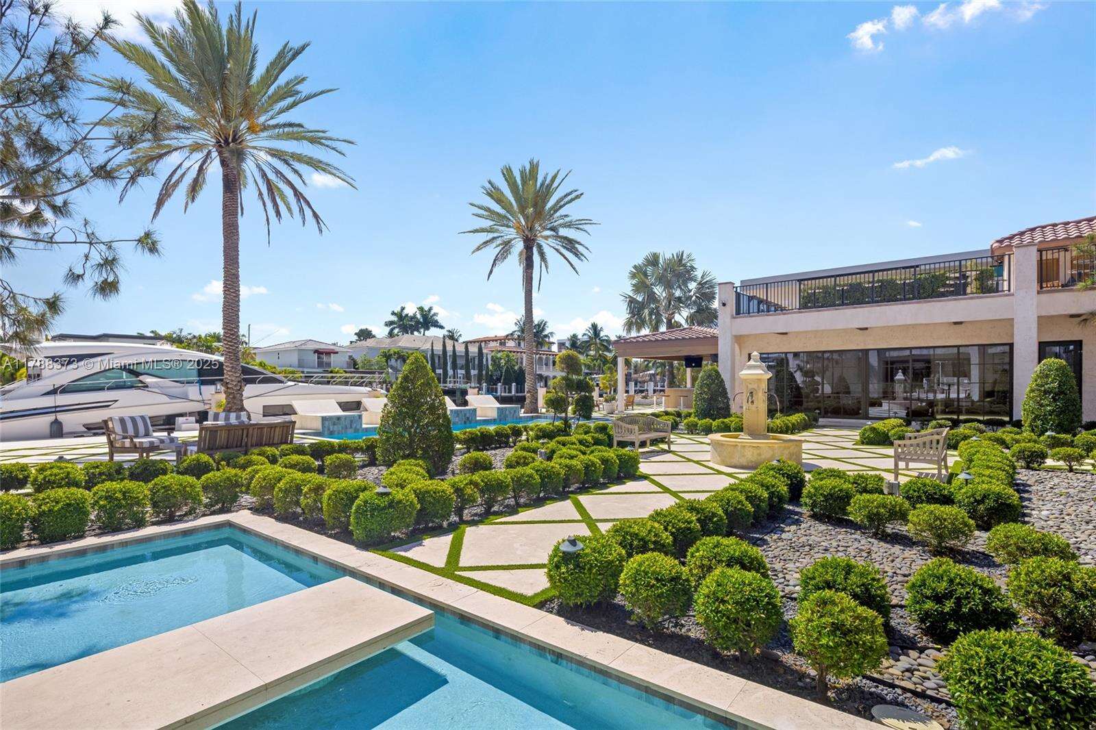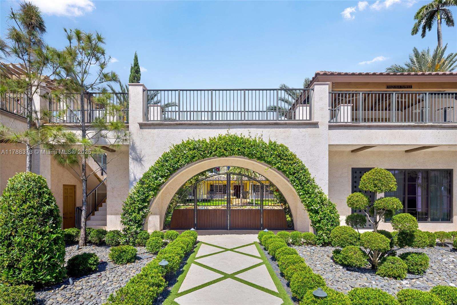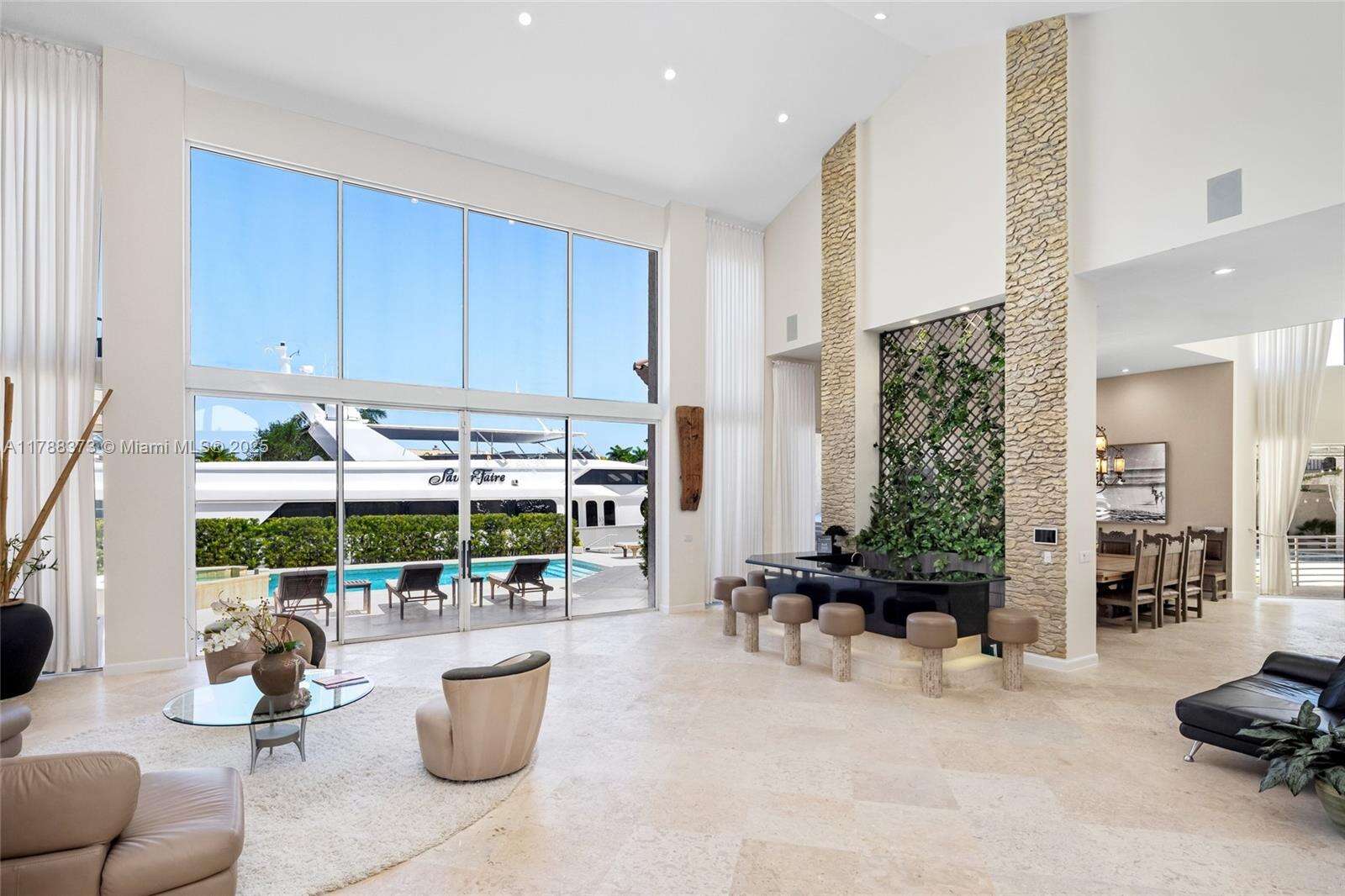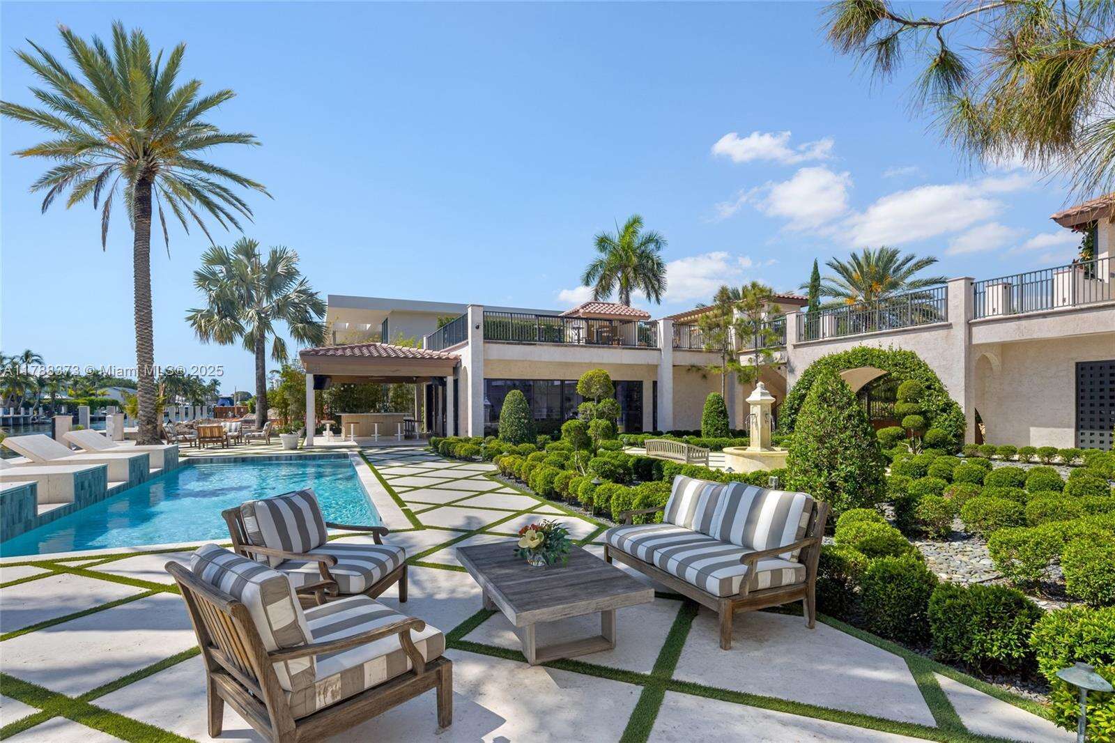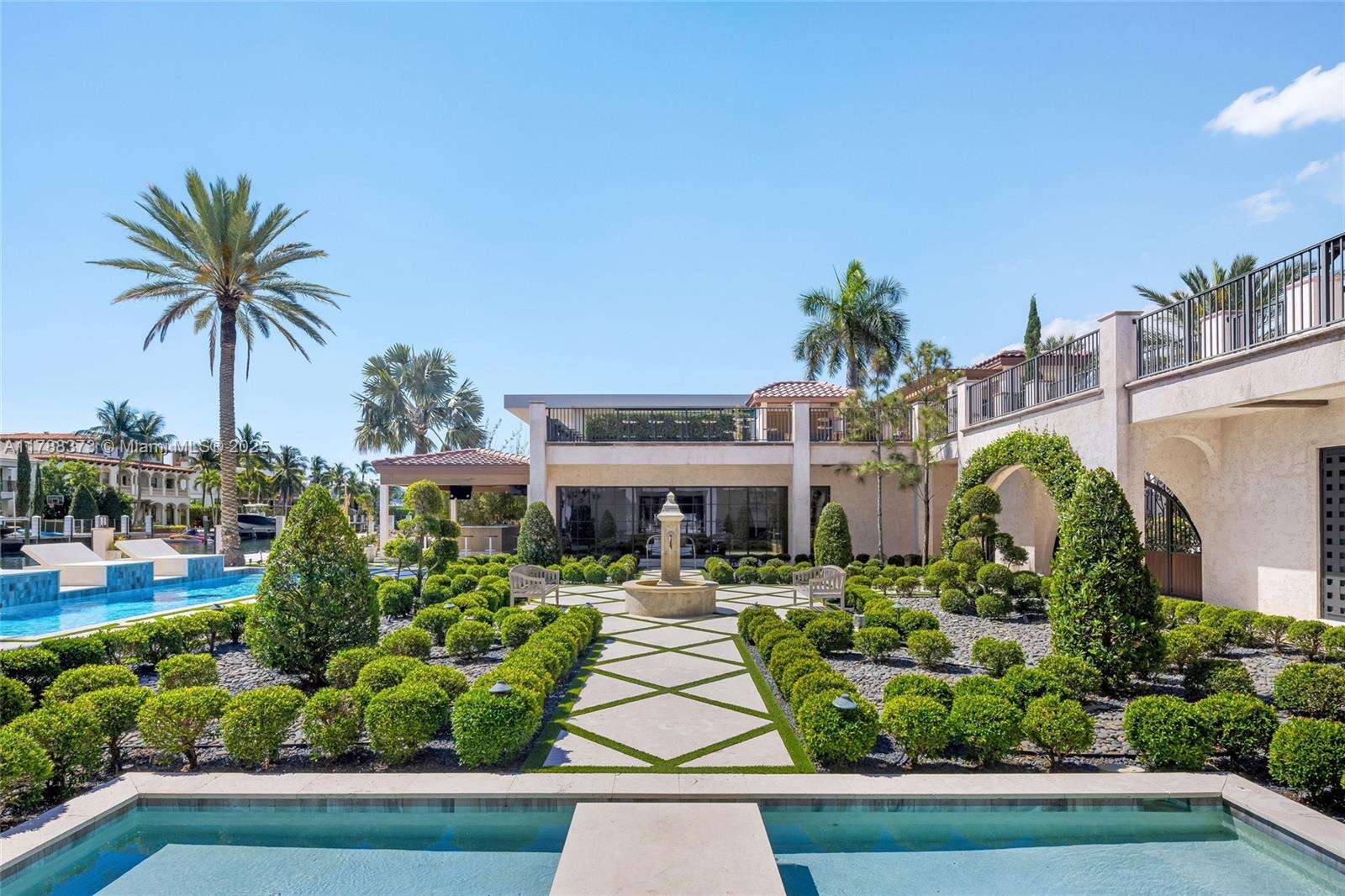 Welcome to Villa de Palma—an iconic waterfront masterpiece crafted for the elite. Spanning over 15,000 sq.ft. with 300 ft of pristine water frontage, this estate boasts 8 en suite bedrooms, 2 primary suites with spa-inspired baths—one adorned in rare Fijian stone— a garden suite, & 2 private cabana rooms with luxurious baths. Step into soaring double-height ceilings & floor-to-ceiling windows in the grand living spaces. Entertain across 8 elegant bars flowing through indoor & outdoor areas, a wine cellar, second-story terraces, & a rooftop sun deck, even Swarovski crystals shimmer under the stars. Indulge in 2 swimming pools, a lounge pool, 2 hot tubs, fire pit, Saharan-style relaxation room, private gym, library/study, outdoor amphitheater, & expansive al fresco entertaining areas.
