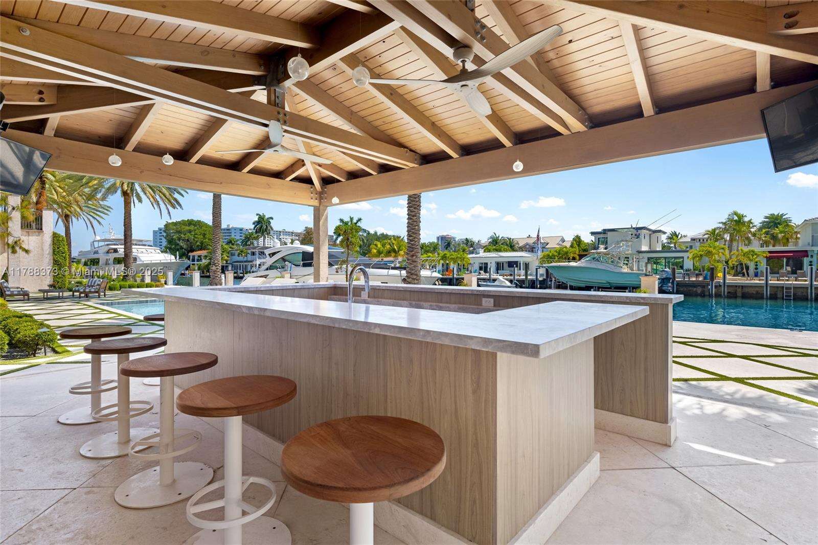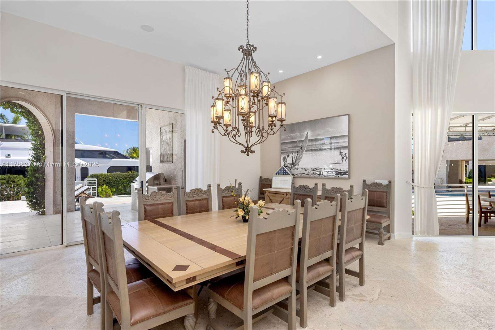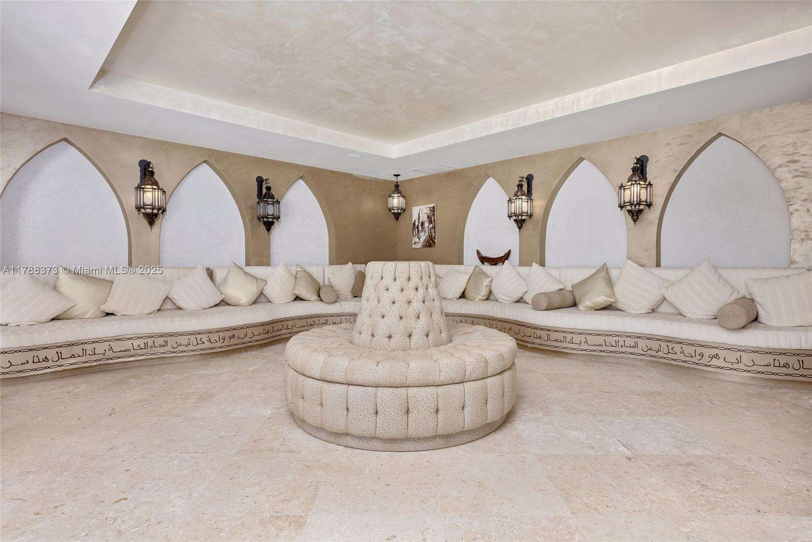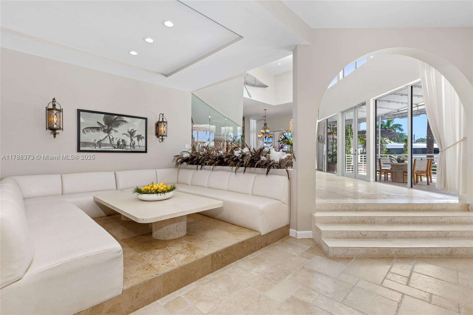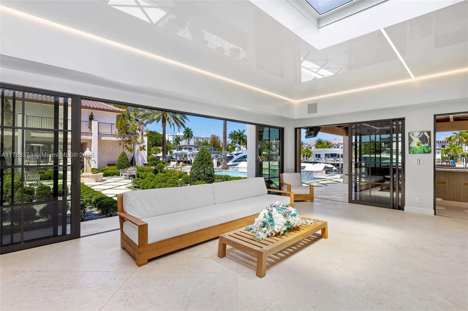 Welcome to Villa de Palma—an iconic waterfront masterpiece crafted for the elite. Spanning over 15,000 sq.ft. with 300 ft of pristine water frontage, this estate boasts 8 en suite bedrooms, 2 primary suites with spa-inspired baths—one adorned in rare Fijian stone— a garden suite, & 2 private cabana rooms with luxurious baths. Step into soaring double-height ceilings & floor-to-ceiling windows in the grand living spaces. Entertain across 8 elegant bars flowing through indoor & outdoor areas, a wine cellar, second-story terraces, & a rooftop sun deck, even Swarovski crystals shimmer under the stars. Indulge in 2 swimming pools, a lounge pool, 2 hot tubs, fire pit, Saharan-style relaxation room, private gym, library/study, outdoor amphitheater, & expansive al fresco entertaining areas.